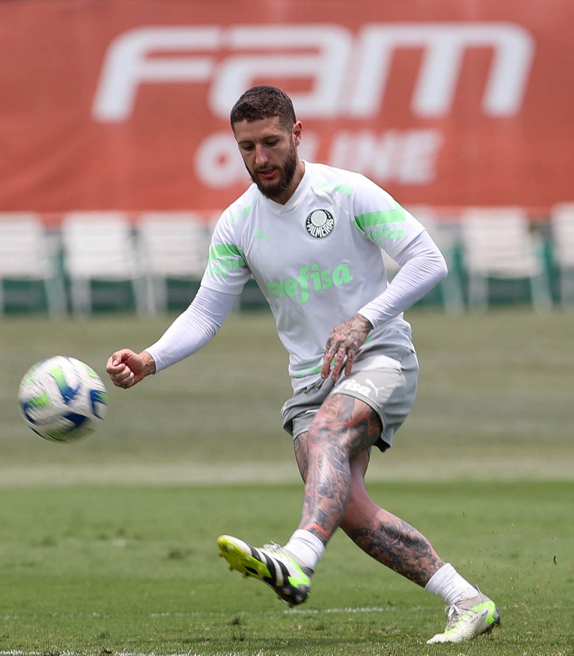 O jogador Flaco López, da SE Palmeiras, durante treinamento, na Academia de Futebol. (Foto: Cesar Greco/Palmeiras/by Canon)