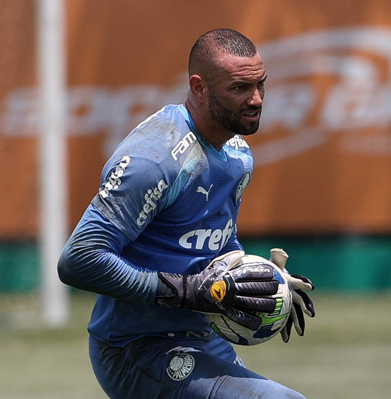 O goleiro Weverton, da SE Palmeiras, durante treinamento, na Academia de Futebol. (Foto: Cesar Greco/Palmeiras/by Canon)
