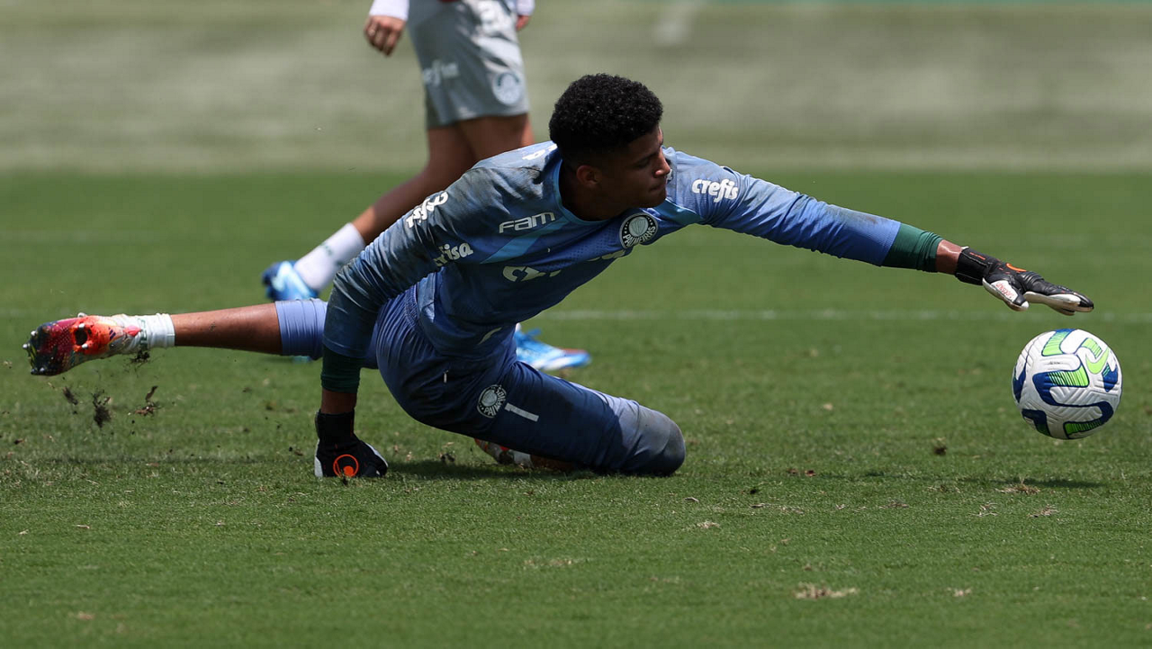 O goleiro Mateus, da SE Palmeiras, durante treinamento, na Academia de Futebol. (Foto: Cesar Greco/Palmeiras/by Canon)