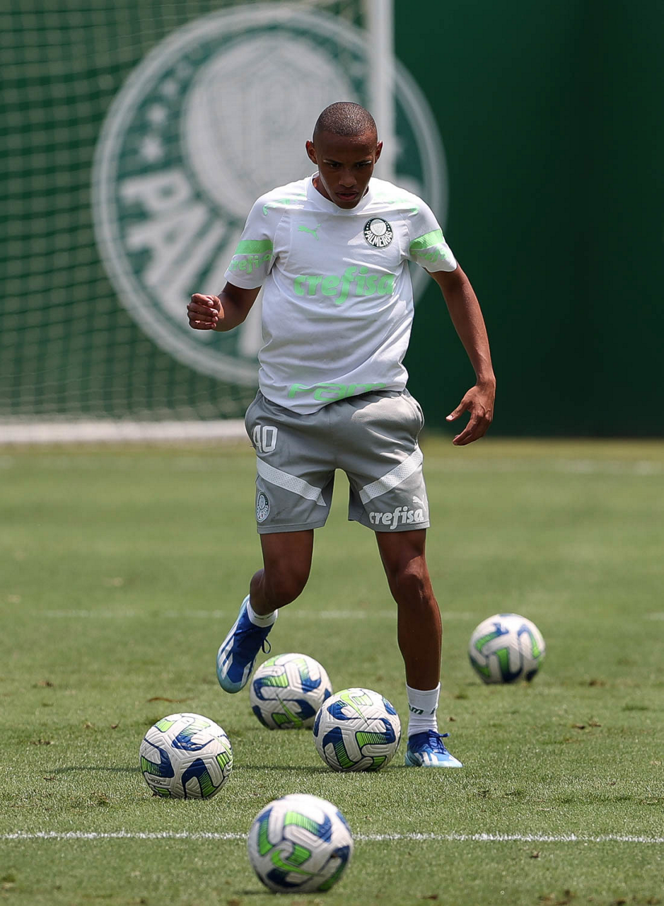 O jogador Fabinho, da SE Palmeiras, durante treinamento, na Academia de Futebol. (Foto: Cesar Greco/Palmeiras/by Canon)