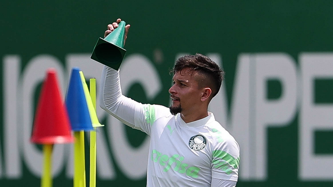 O jogador Artur, da SE Palmeiras, durante treinamento, na Academia de Futebol. (Foto: Cesar Greco/Palmeiras/by Canon)