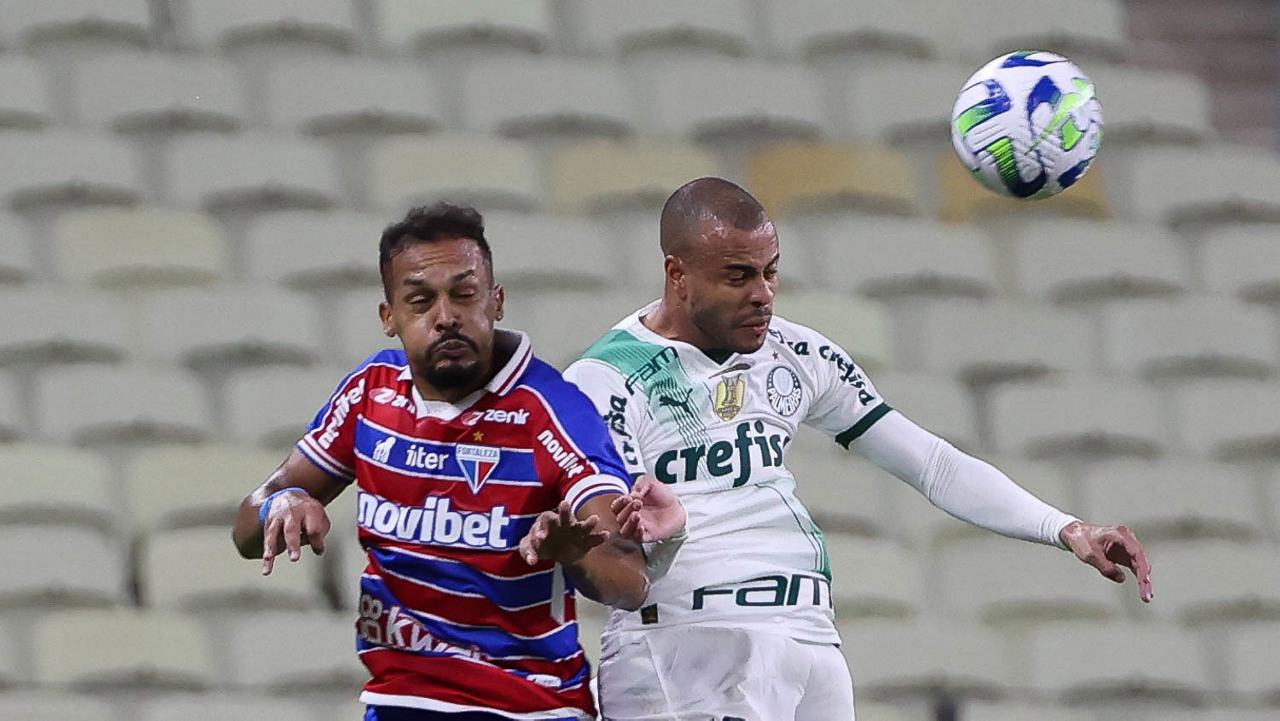 O goleiro Weverton, da SE Palmeiras, entra em campo com o torcedor mirim Wesley em jogo contra a equipe do Fortaleza EC, durante partida válida pela trigésima quinta rodada, do Campeonato Brasileiro, Série A, na Arena Castelão. (Foto: Cesar Greco/Palmeiras/by Canon)
