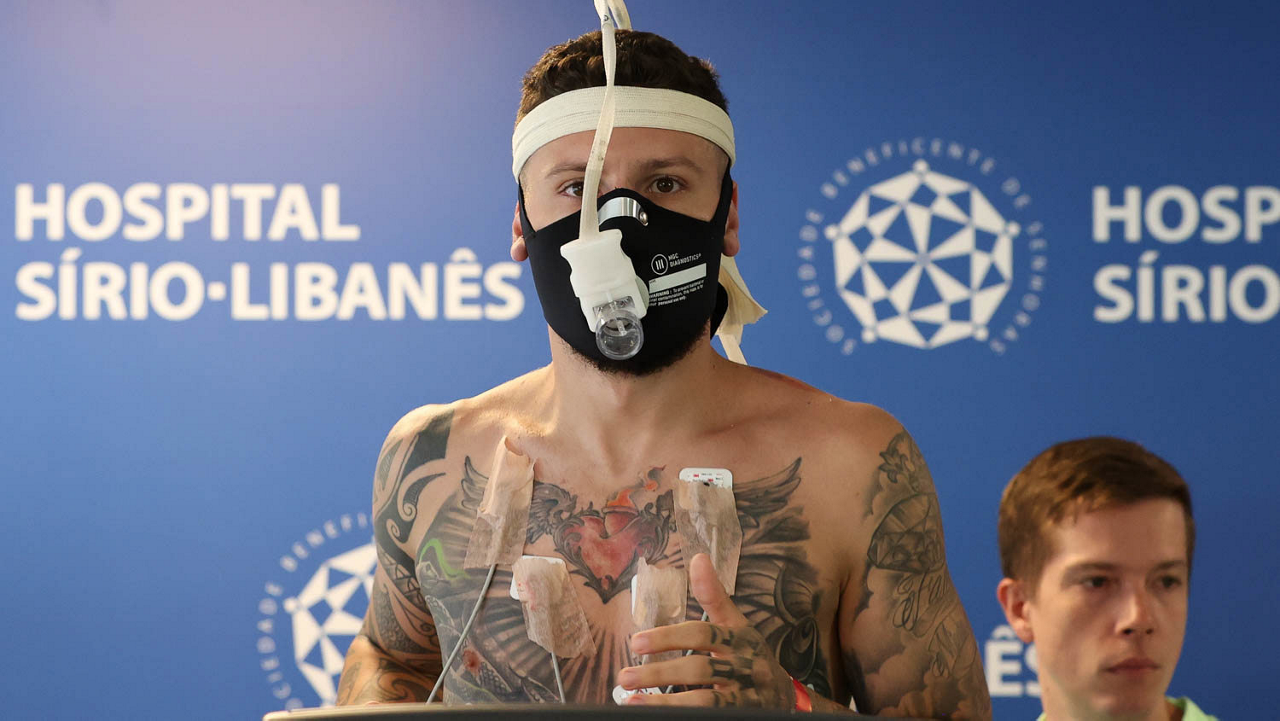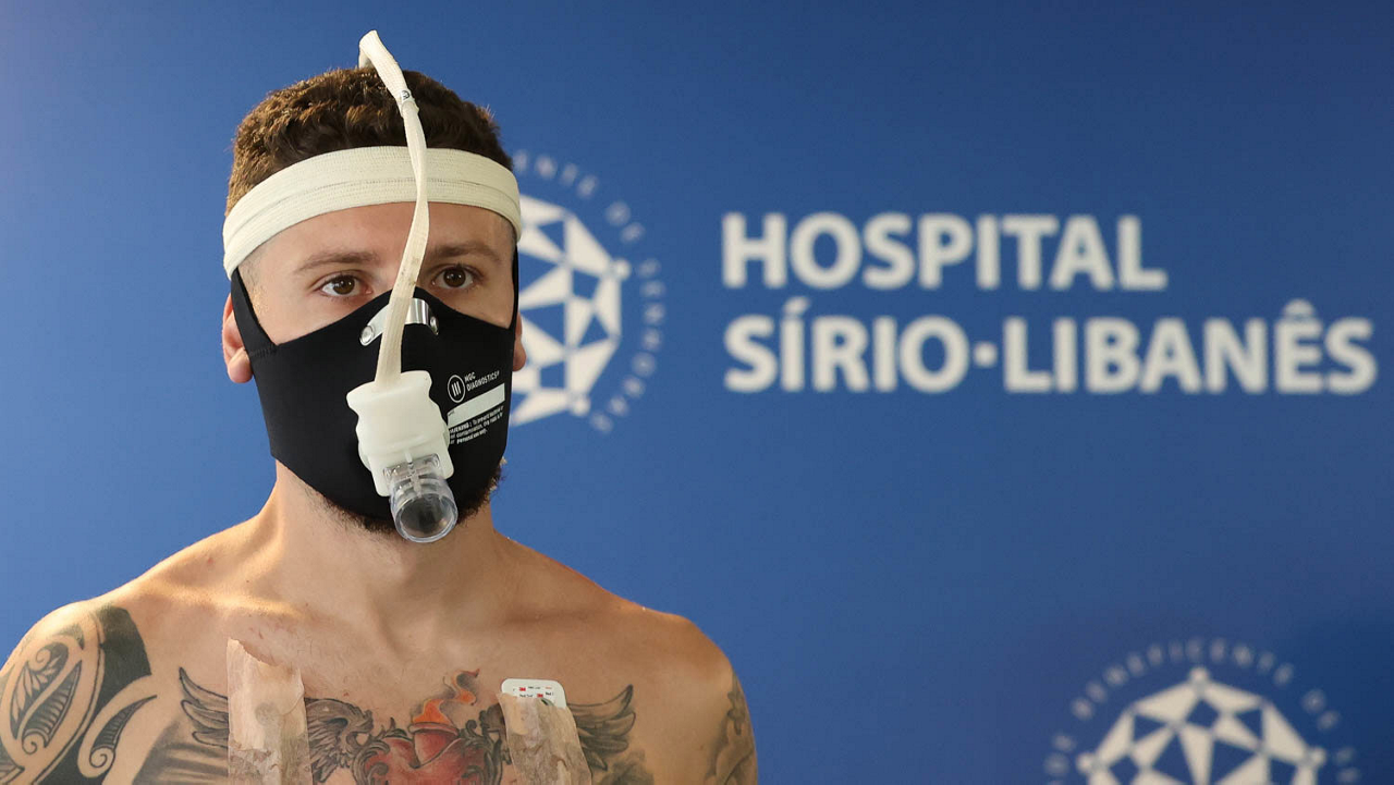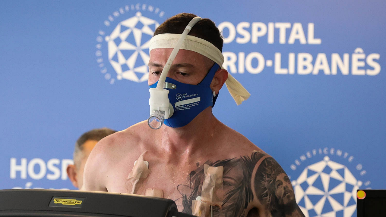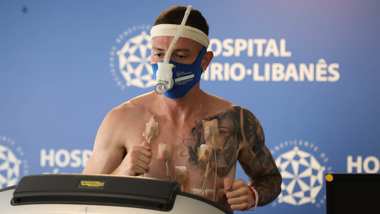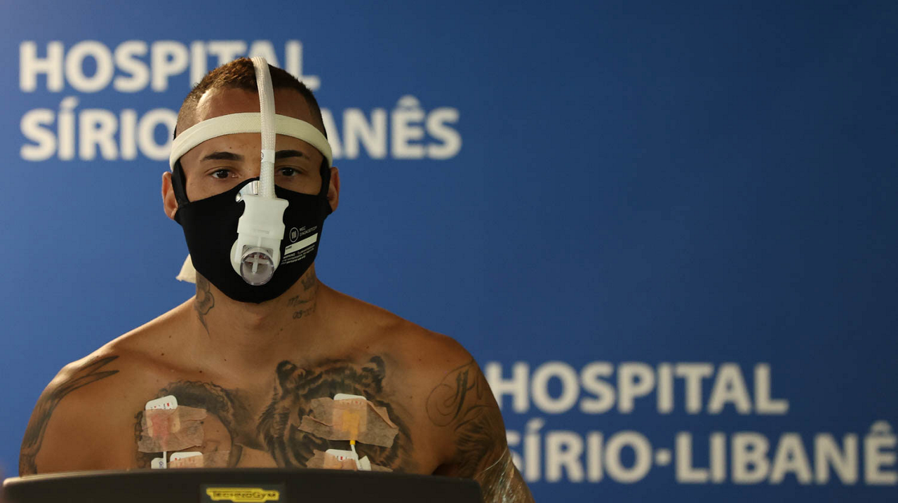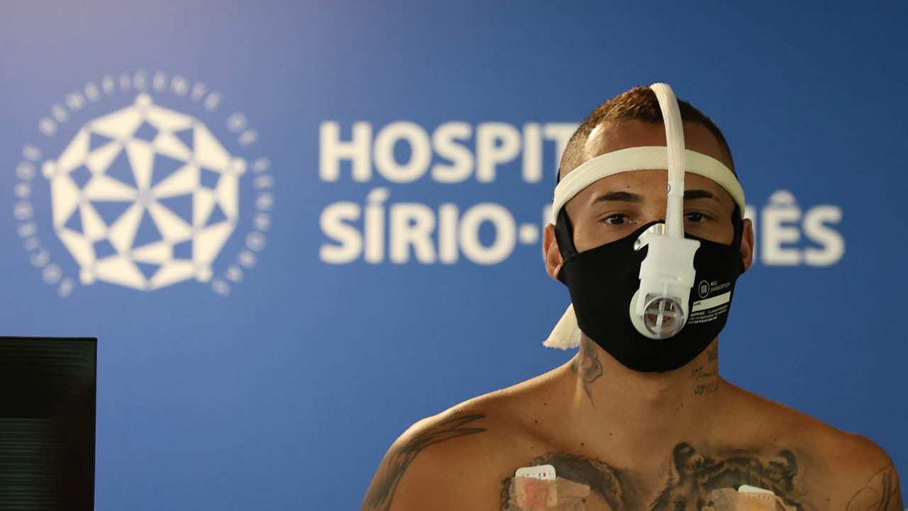 O jogador Gustavo Gómez e o médico Pedro Pontin (D), da SE Palmeiras, durante reapresentação, na Academia de Futebol. (Foto: Cesar Greco/Palmeiras/by Canon)