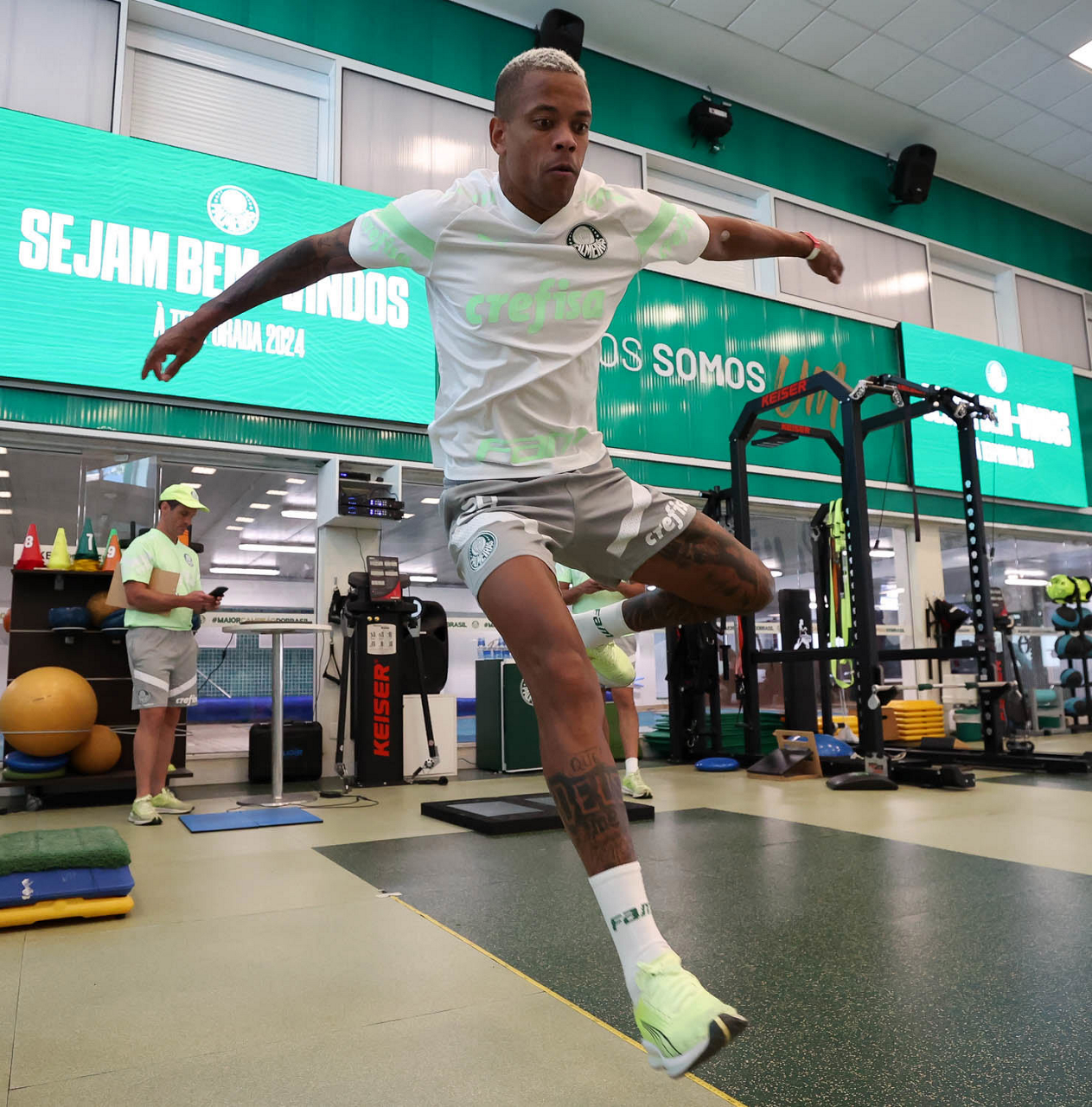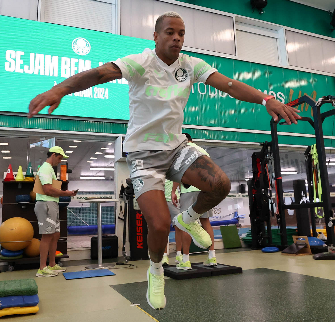 O jogador Eduard Atuesta, da SE Palmeiras, durante reapresentação, na Academia de Futebol. (Foto: Cesar Greco/Palmeiras/by Canon)