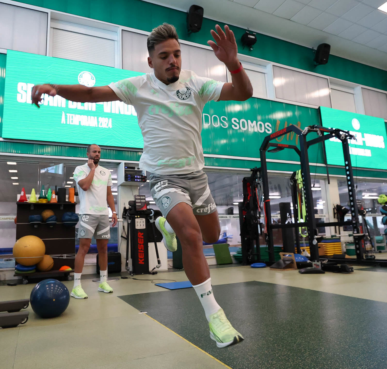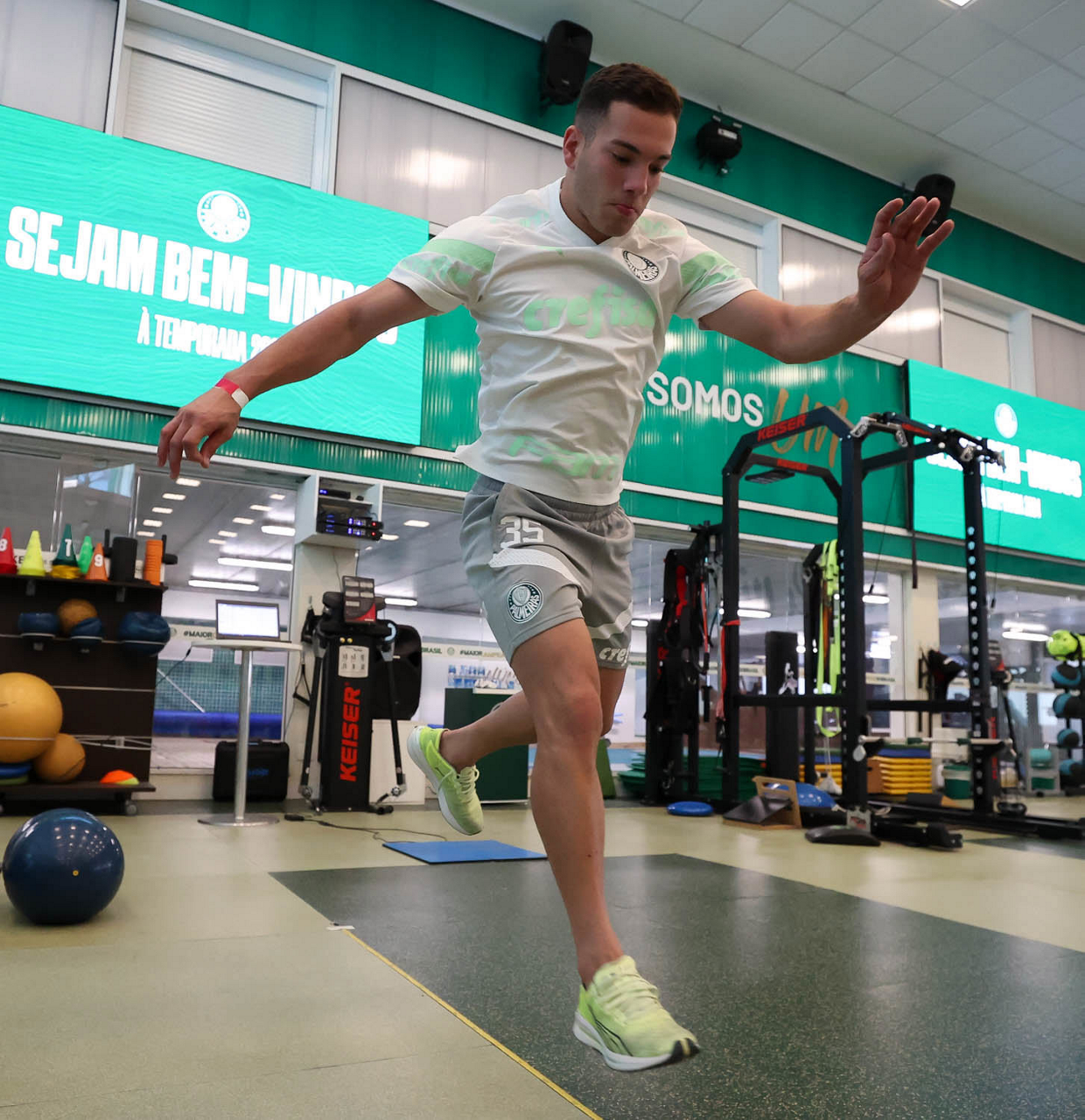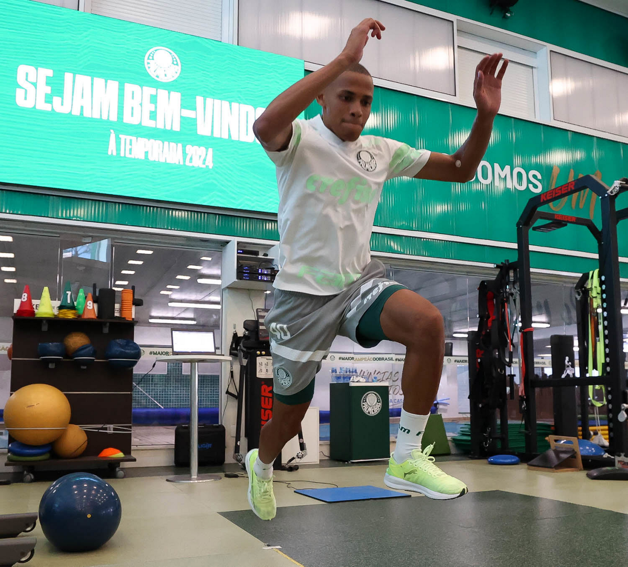 O jogador Gabriel Menino, da SE Palmeiras, durante reapresentação, na Academia de Futebol. (Foto: Cesar Greco/Palmeiras/by Canon)