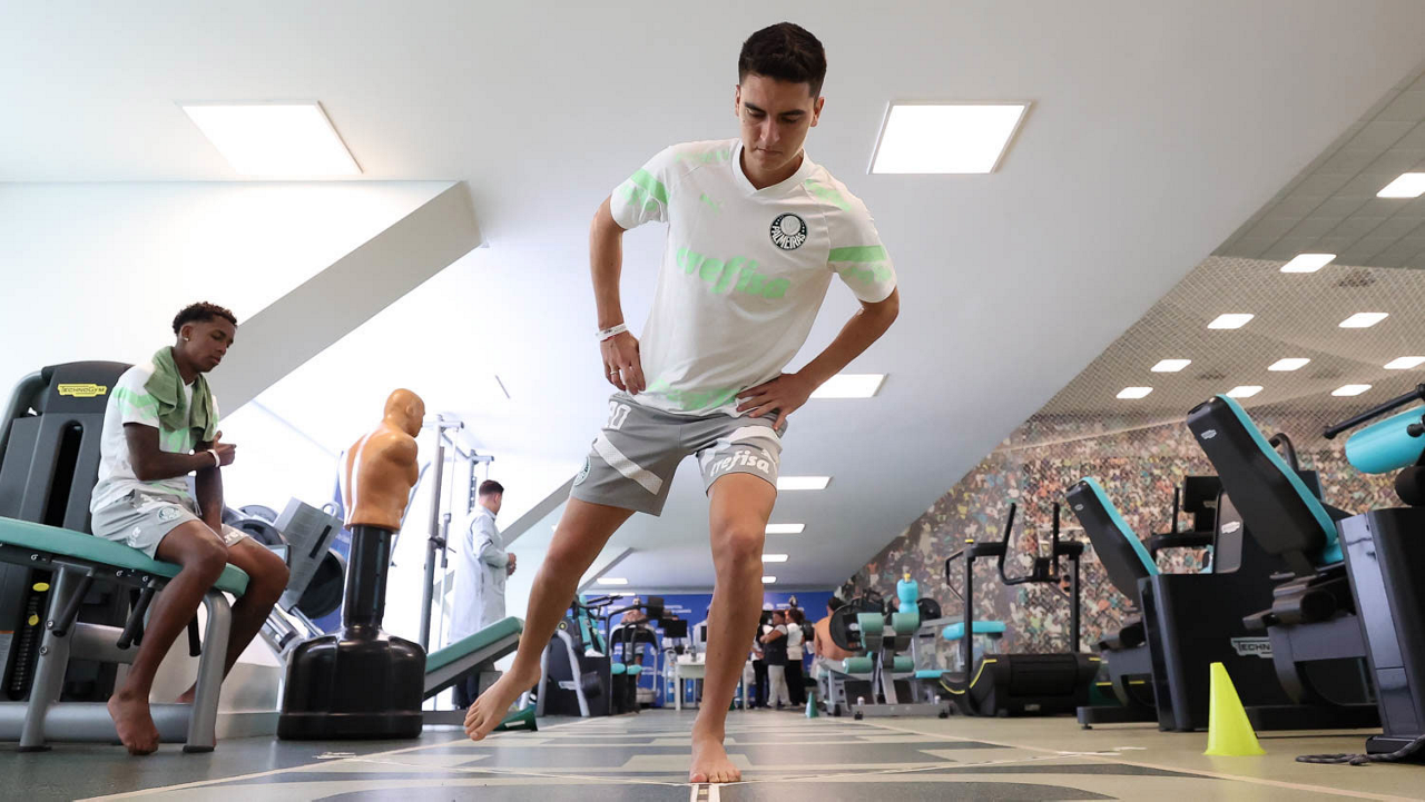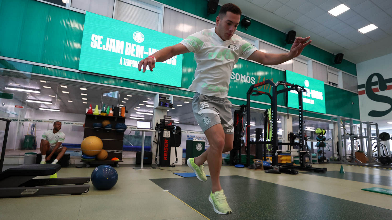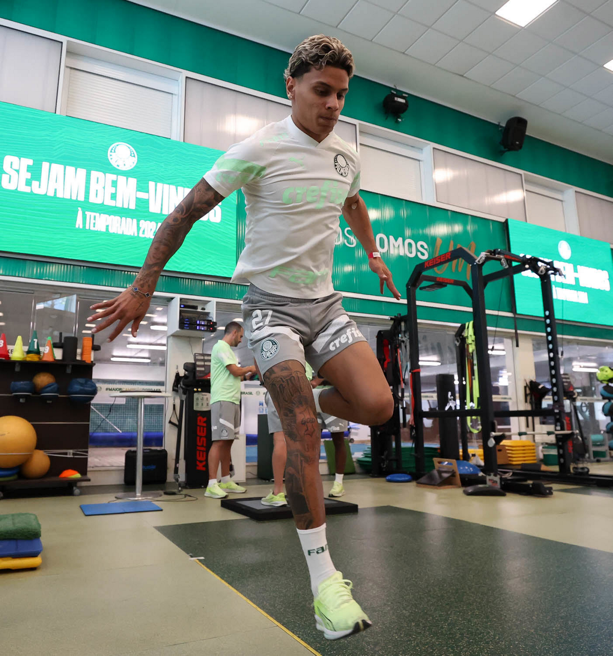 O jogador Richard Ríos, da SE Palmeiras, durante reapresentação, na Academia de Futebol. (Foto: Cesar Greco/Palmeiras/by Canon)