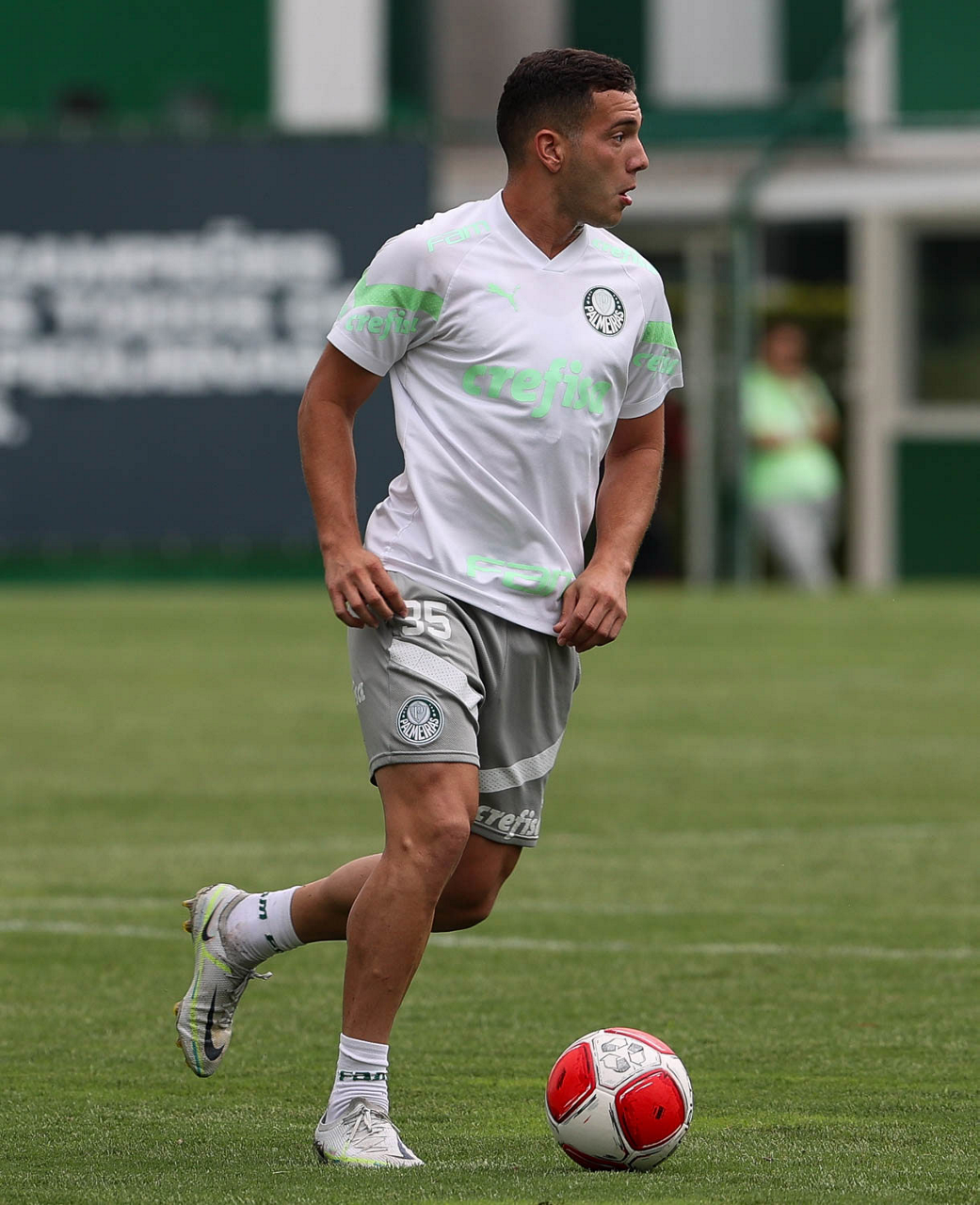 O jogador Richard Ríos, da SE Palmeiras, durante jogo-treino contra a equipe do Suzano, na Academia de Futebol. (Foto: Cesar Greco/Palmeiras/by Canon)