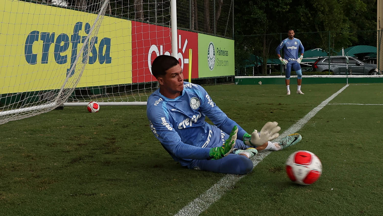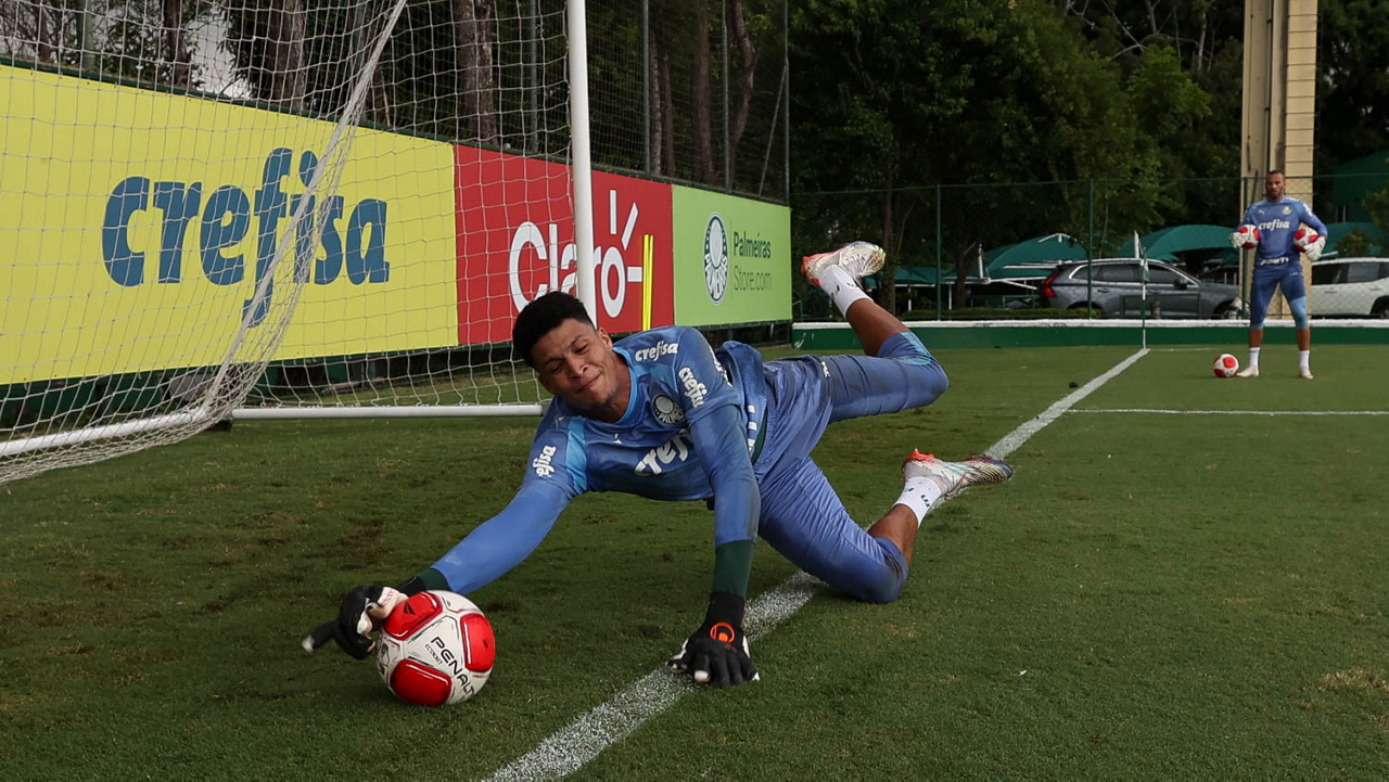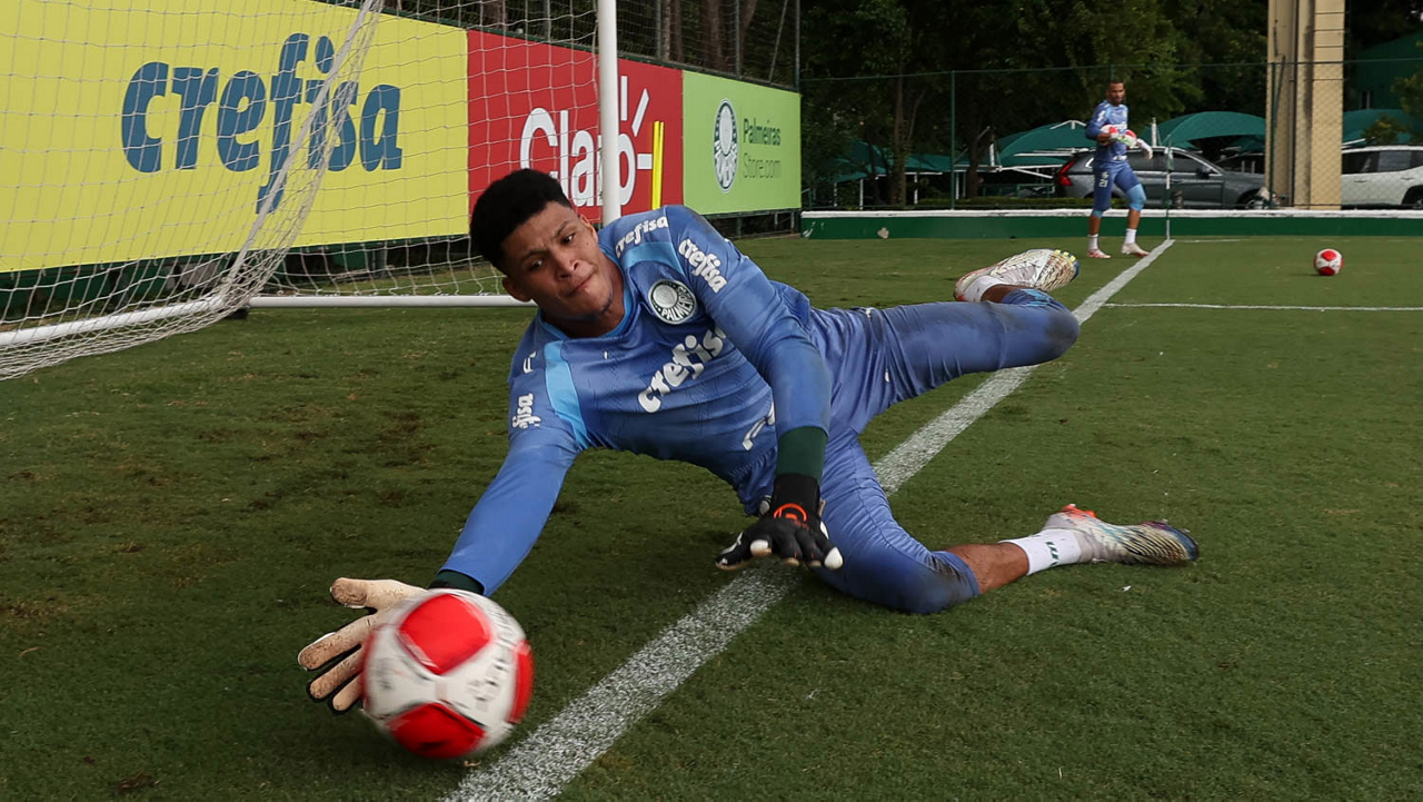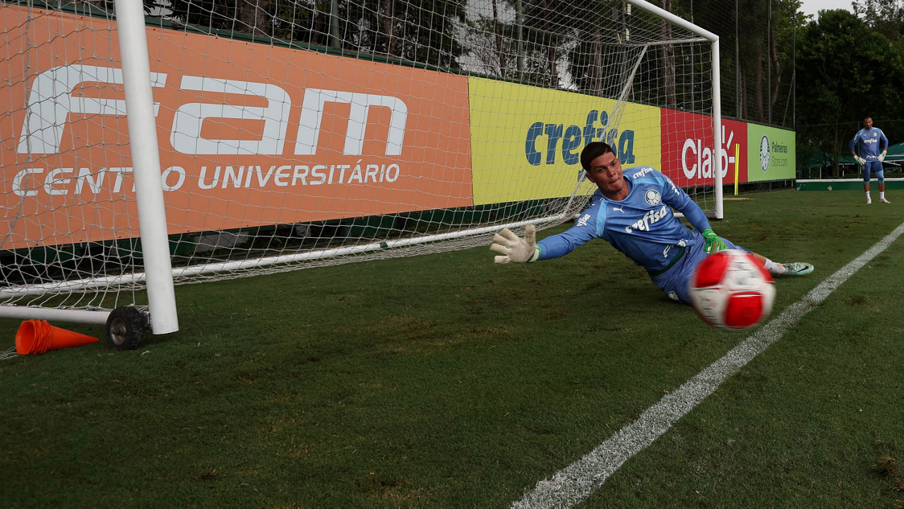 O goleiro Kauan, da SE Palmeiras, durante treinamento, na Academia de Futebol. (Foto: Cesar Greco/Palmeiras/by Canon)