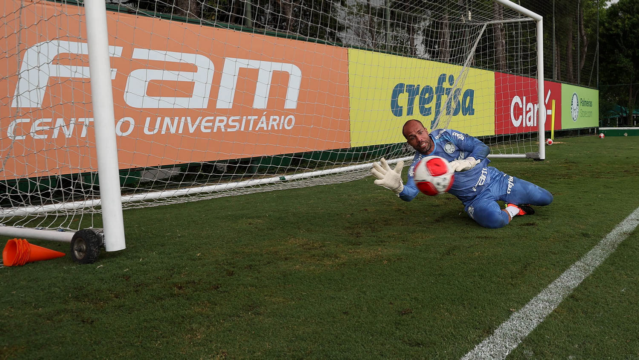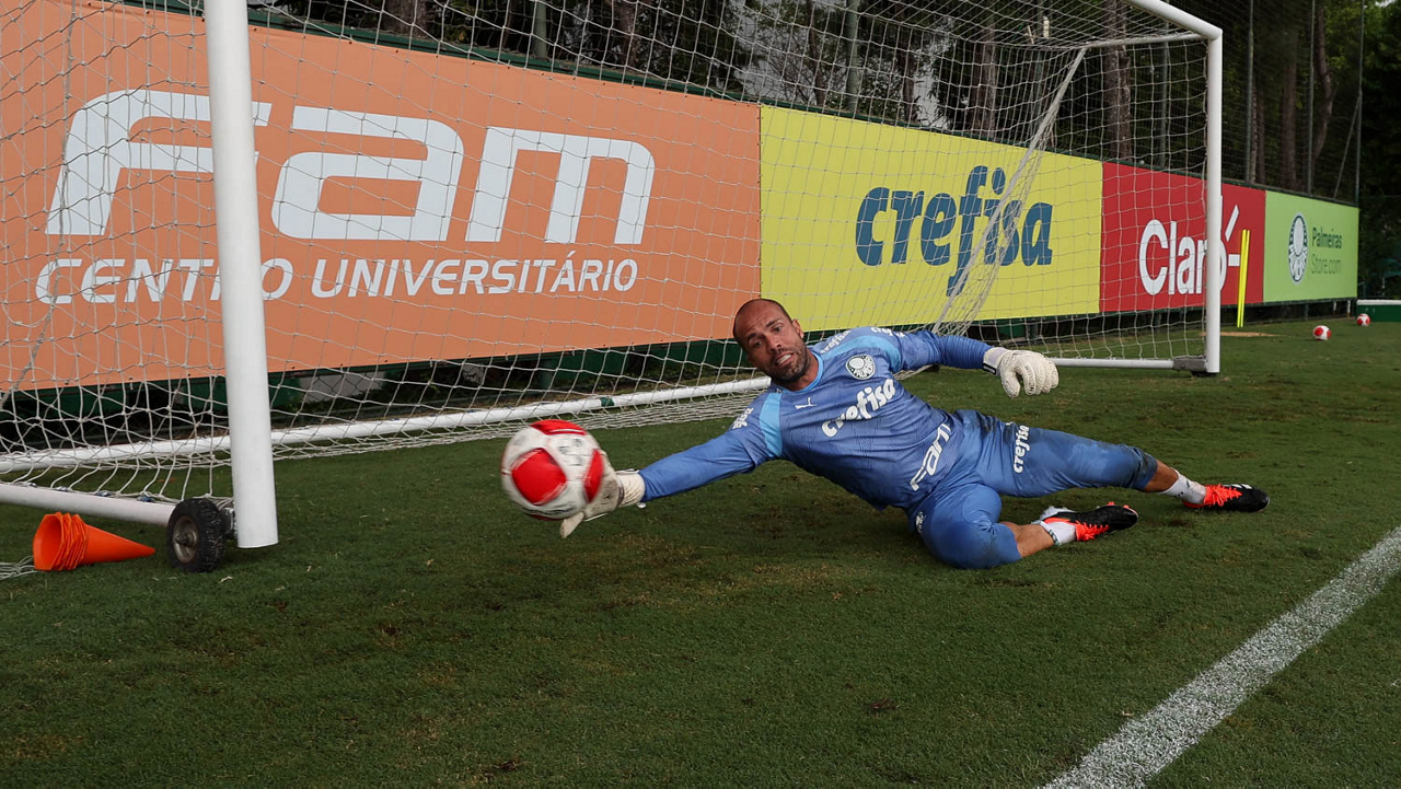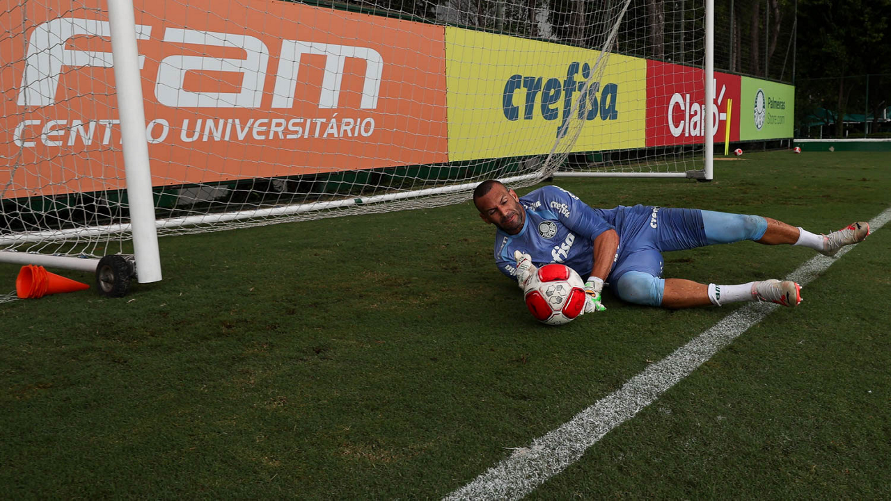 O goleiro Weverton, da SE Palmeiras, durante treinamento, na Academia de Futebol. (Foto: Cesar Greco/Palmeiras/by Canon)