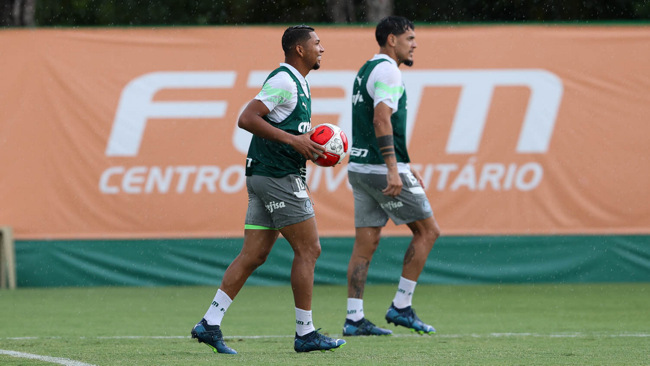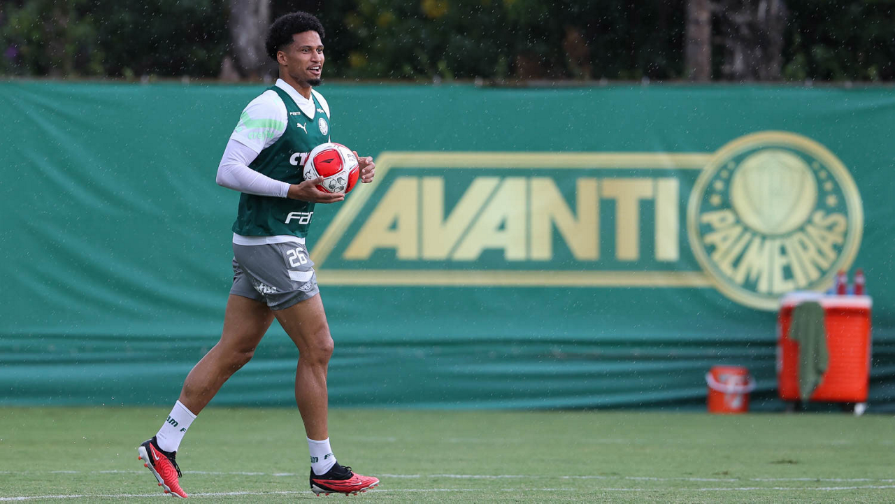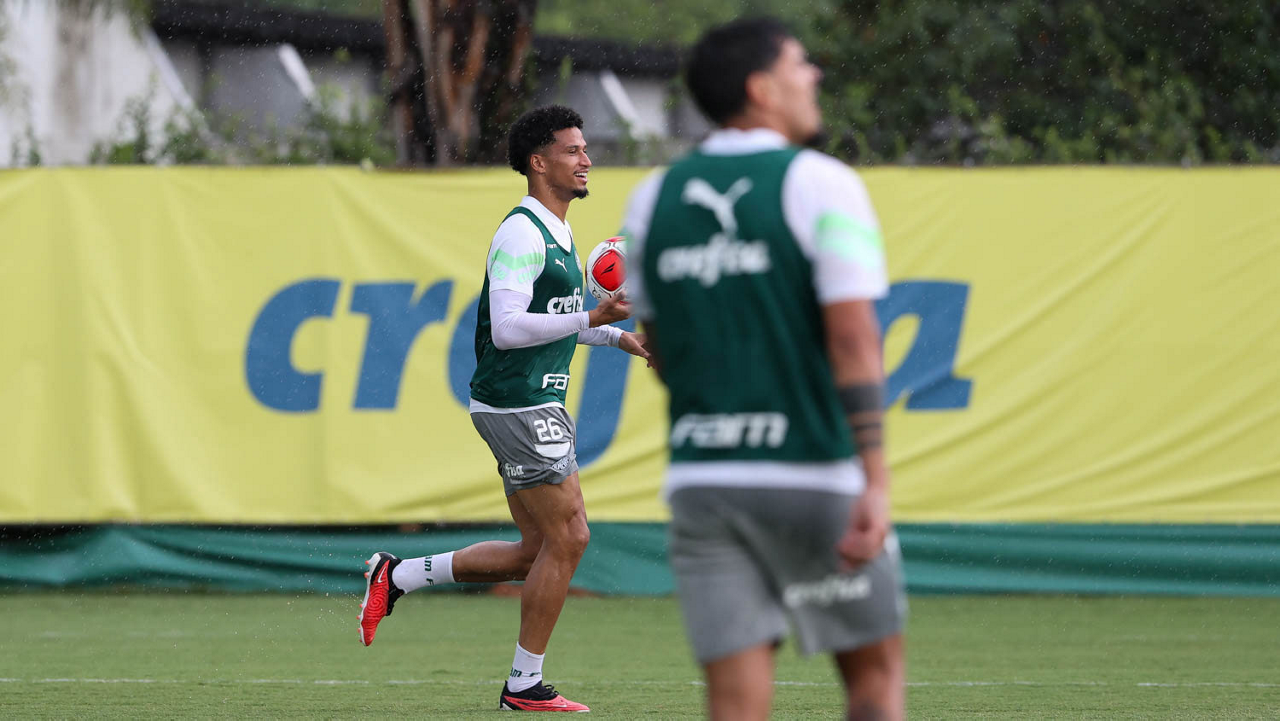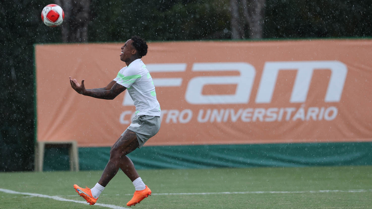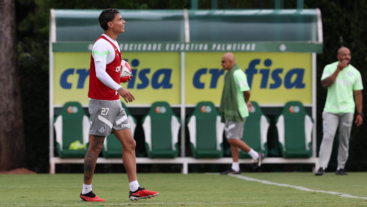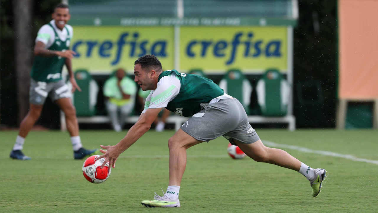 O jogador Richard Ríos, da SE Palmeiras, durante treinamento, na Academia de Futebol. (Foto: Cesar Greco/Palmeiras/by Canon)
