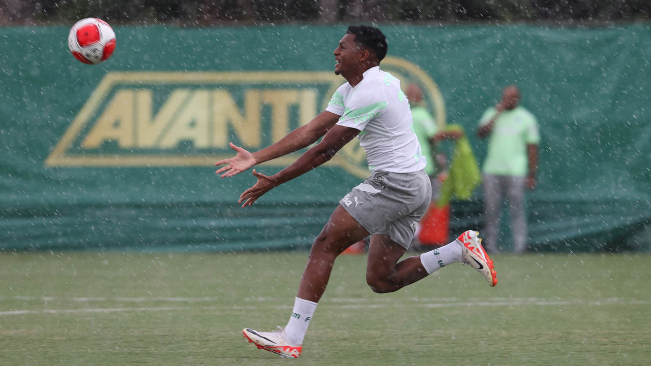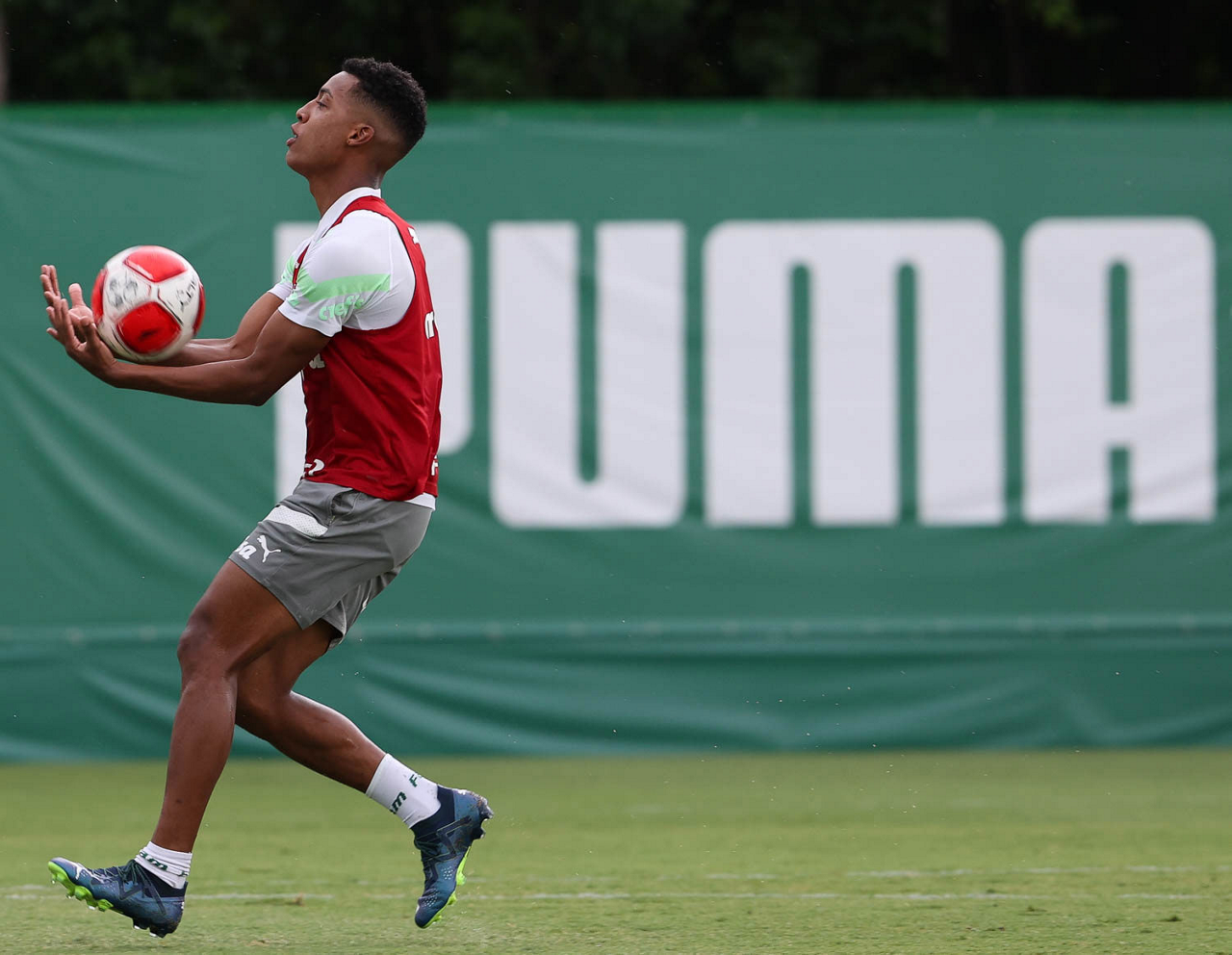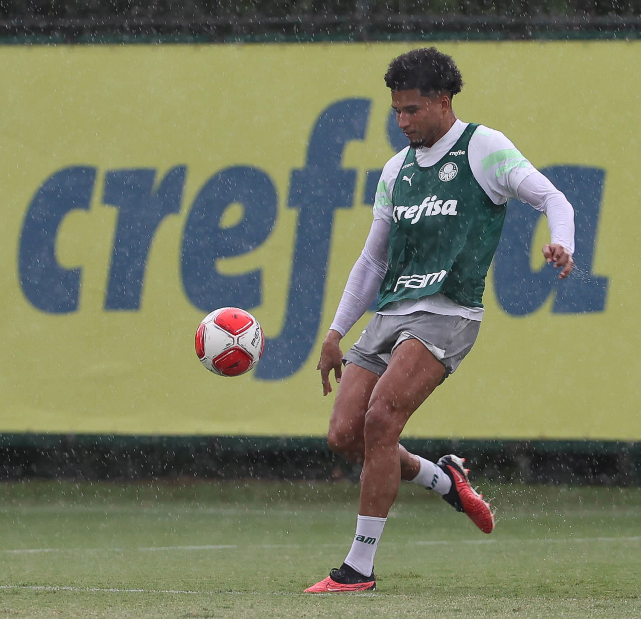 O jogador Luis Guilherme, da SE Palmeiras, durante treinamento, na Academia de Futebol. (Foto: Cesar Greco/Palmeiras/by Canon)