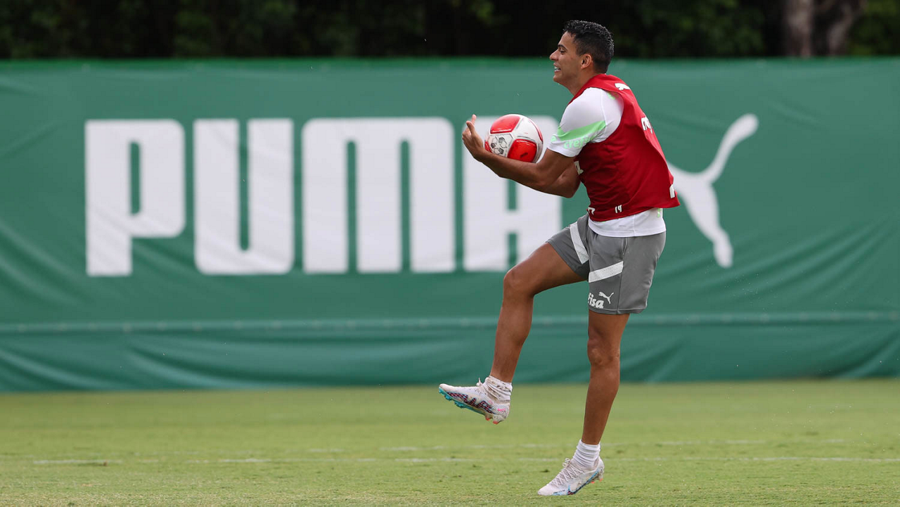 O jogador Raphael Veiga, da SE Palmeiras, durante treinamento, na Academia de Futebol. (Foto: Cesar Greco/Palmeiras/by Canon)
