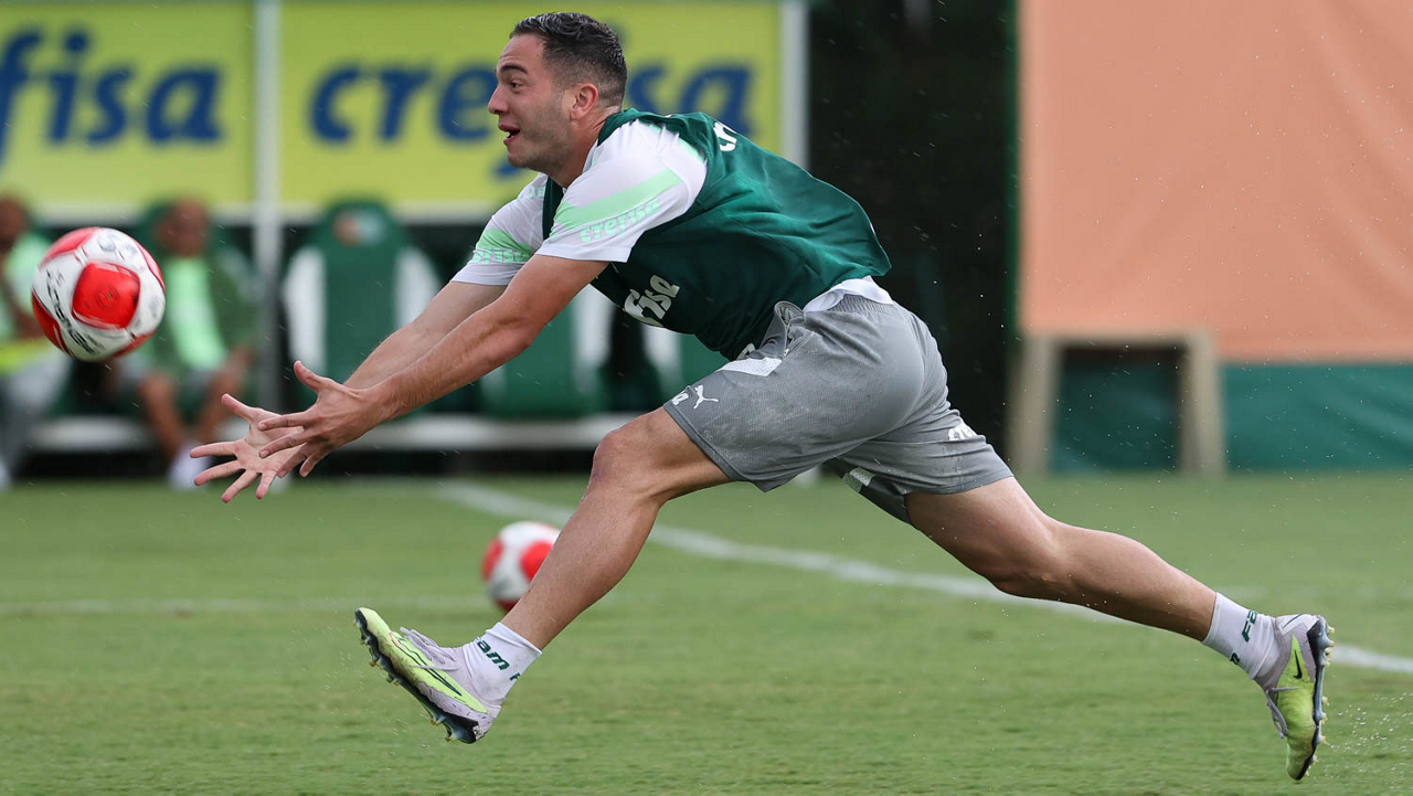 O jogador Bruno Rodrigues, da SE Palmeiras, durante treinamento, na Academia de Futebol. (Foto: Cesar Greco/Palmeiras/by Canon)