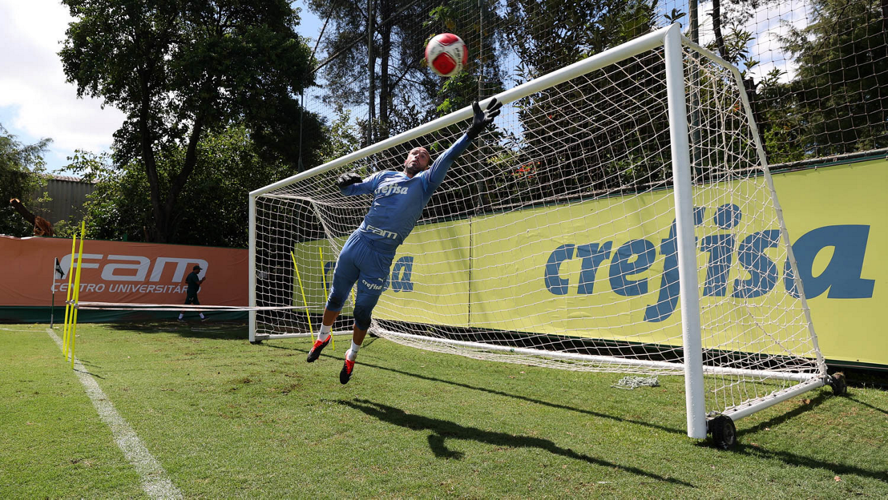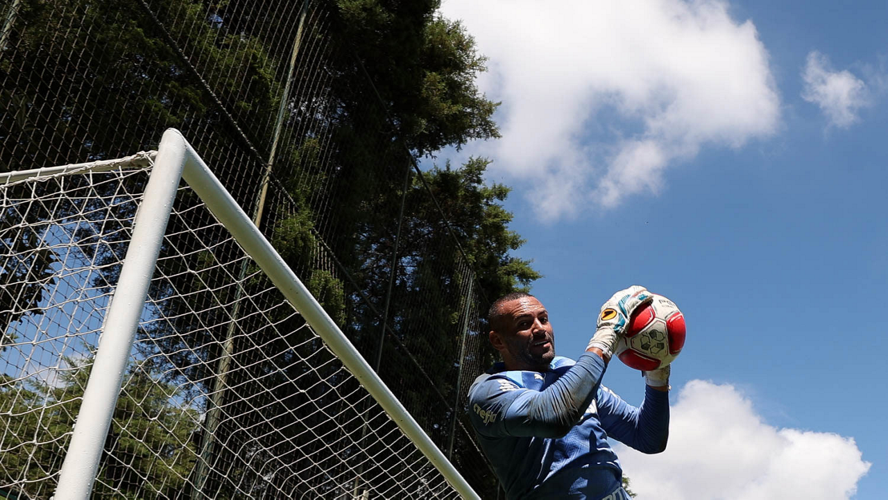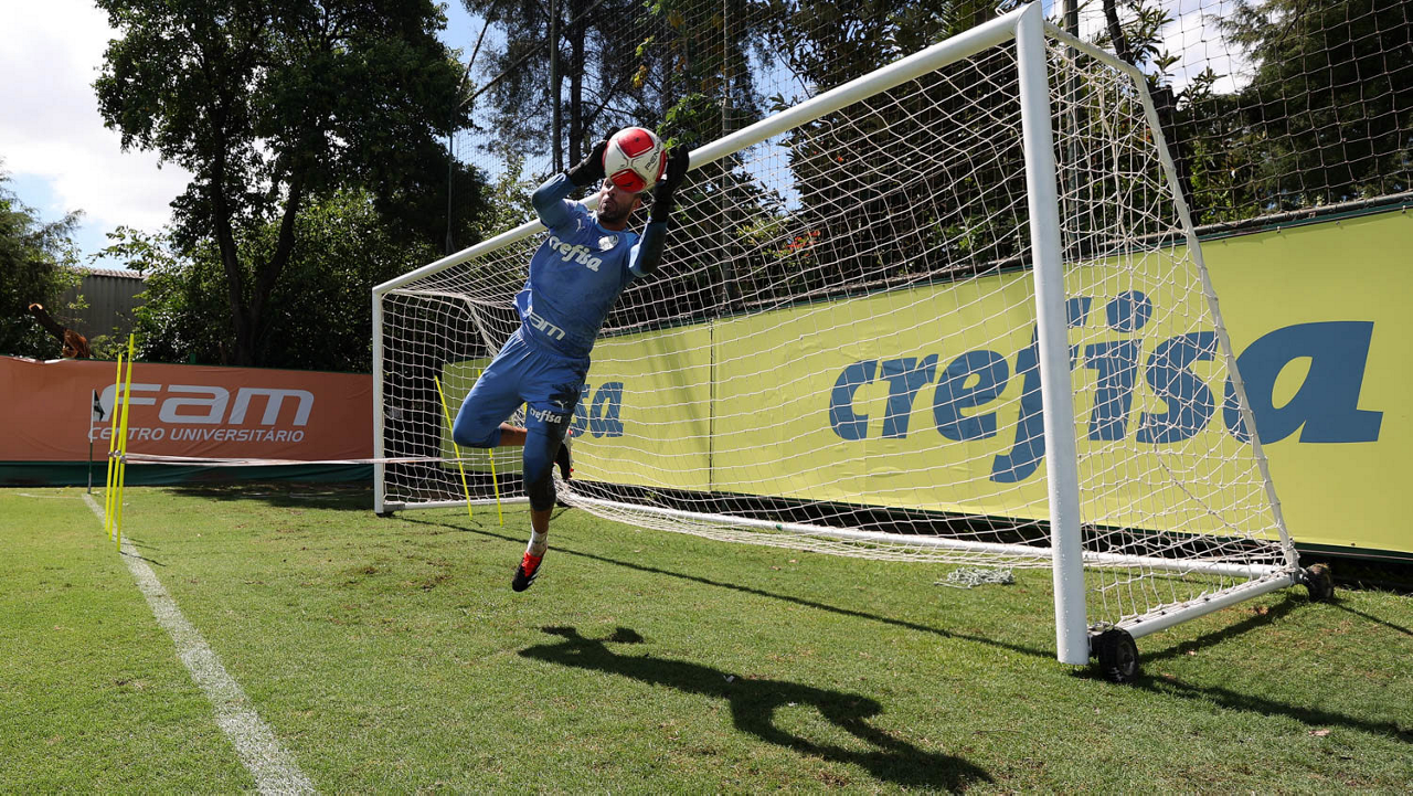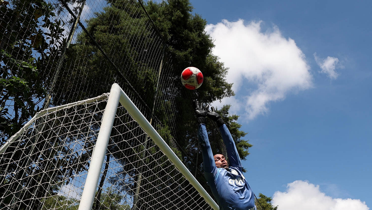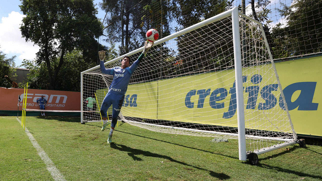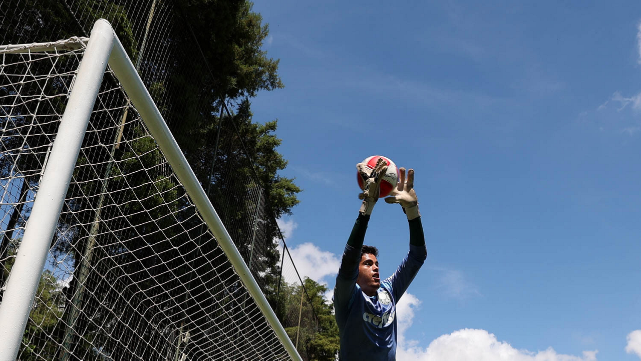 O goleiro Weverton, da SE Palmeiras, durante treinamento, na Academia de Futebol. (Foto: Cesar Greco/Palmeiras/by Canon)