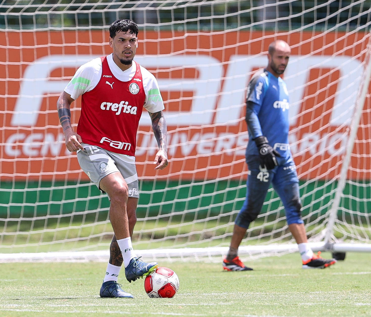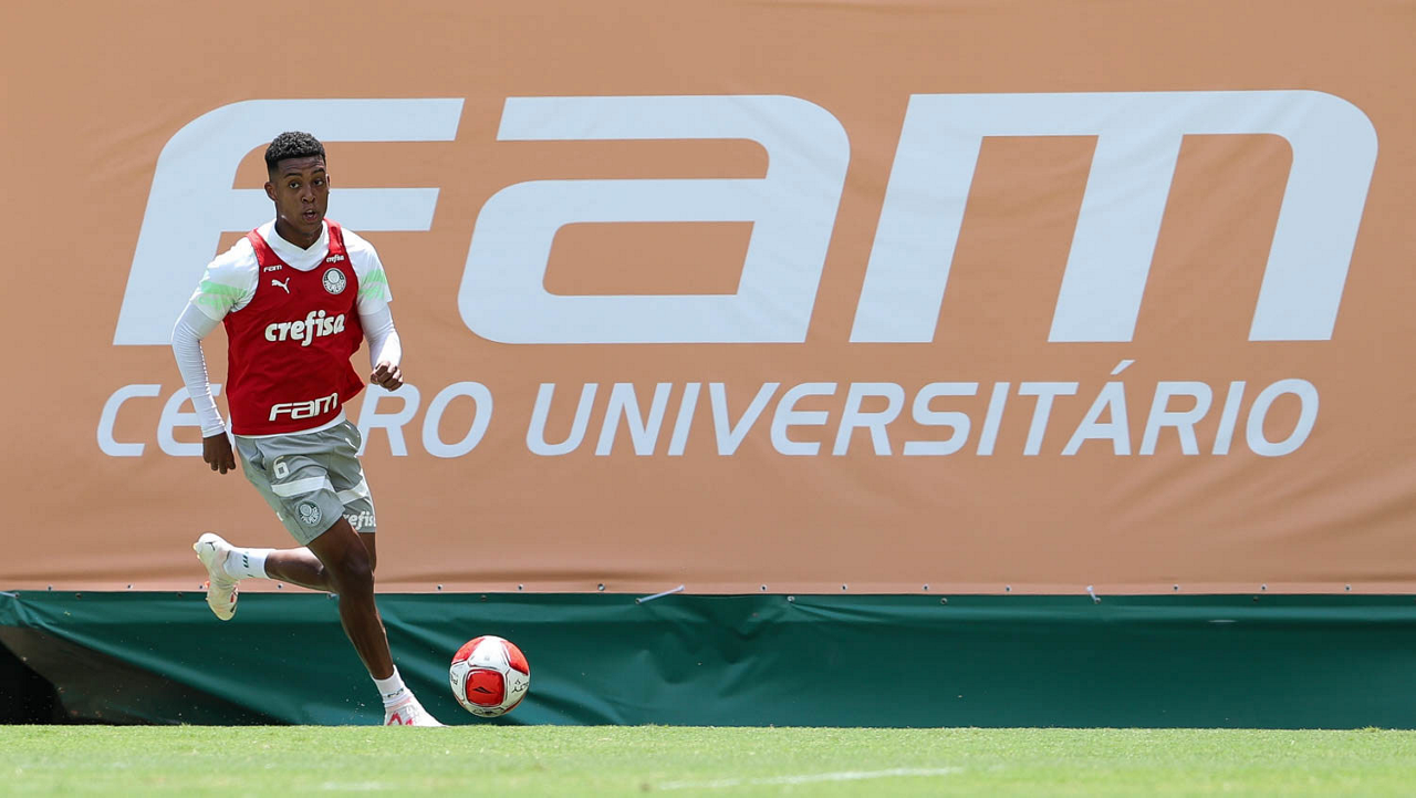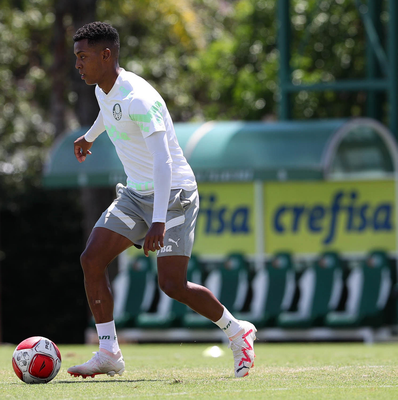 O jogador Luis Guilherme, da SE Palmeiras, durante treinamento, na Academia de Futebol. (Foto: Cesar Greco/Palmeiras/by Canon)