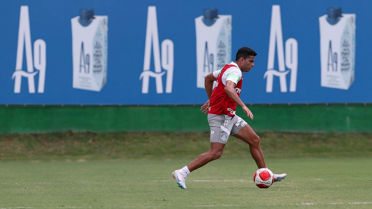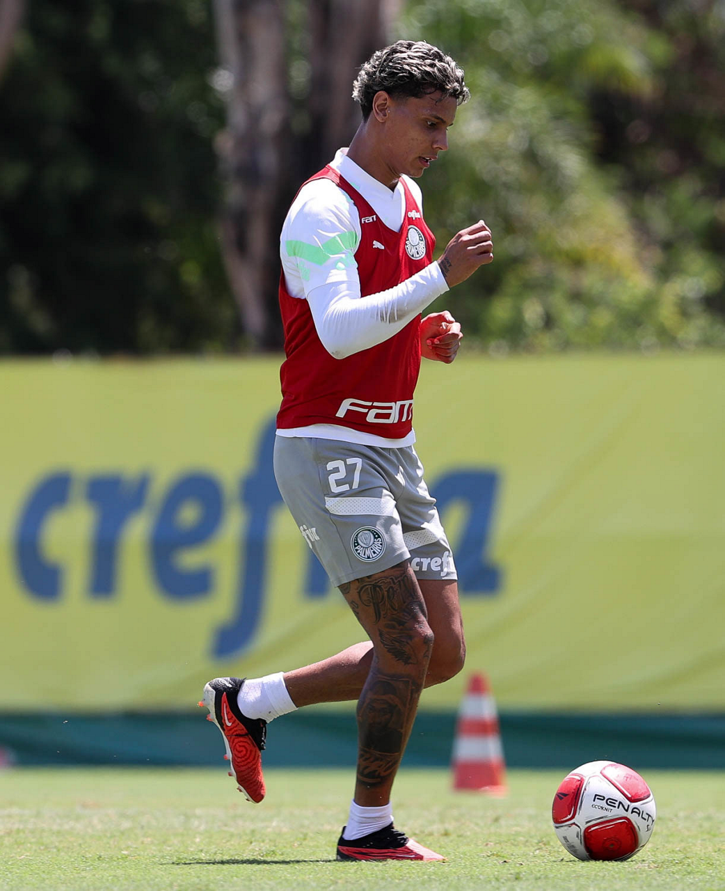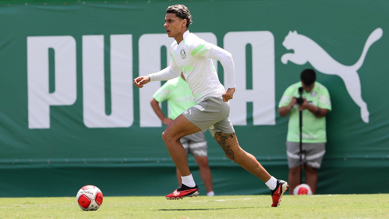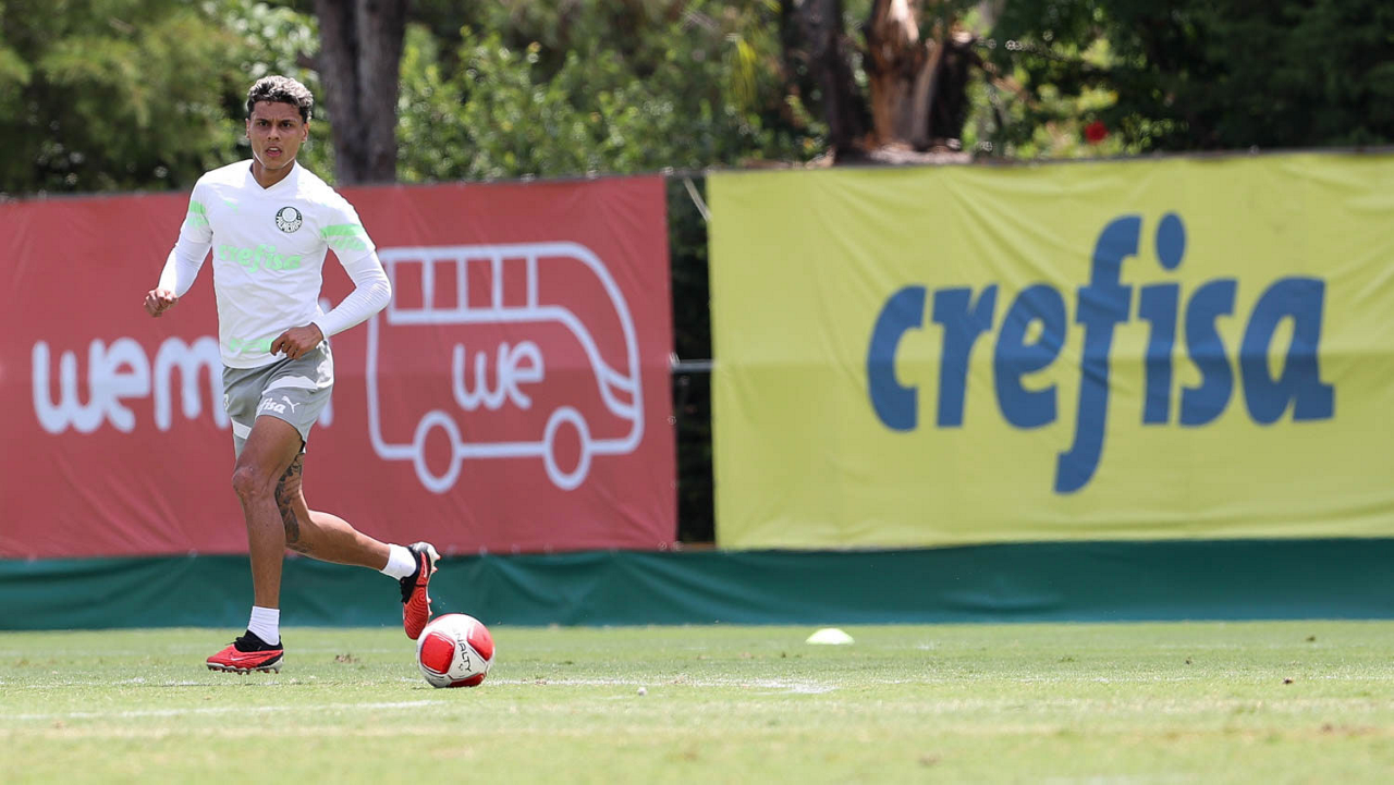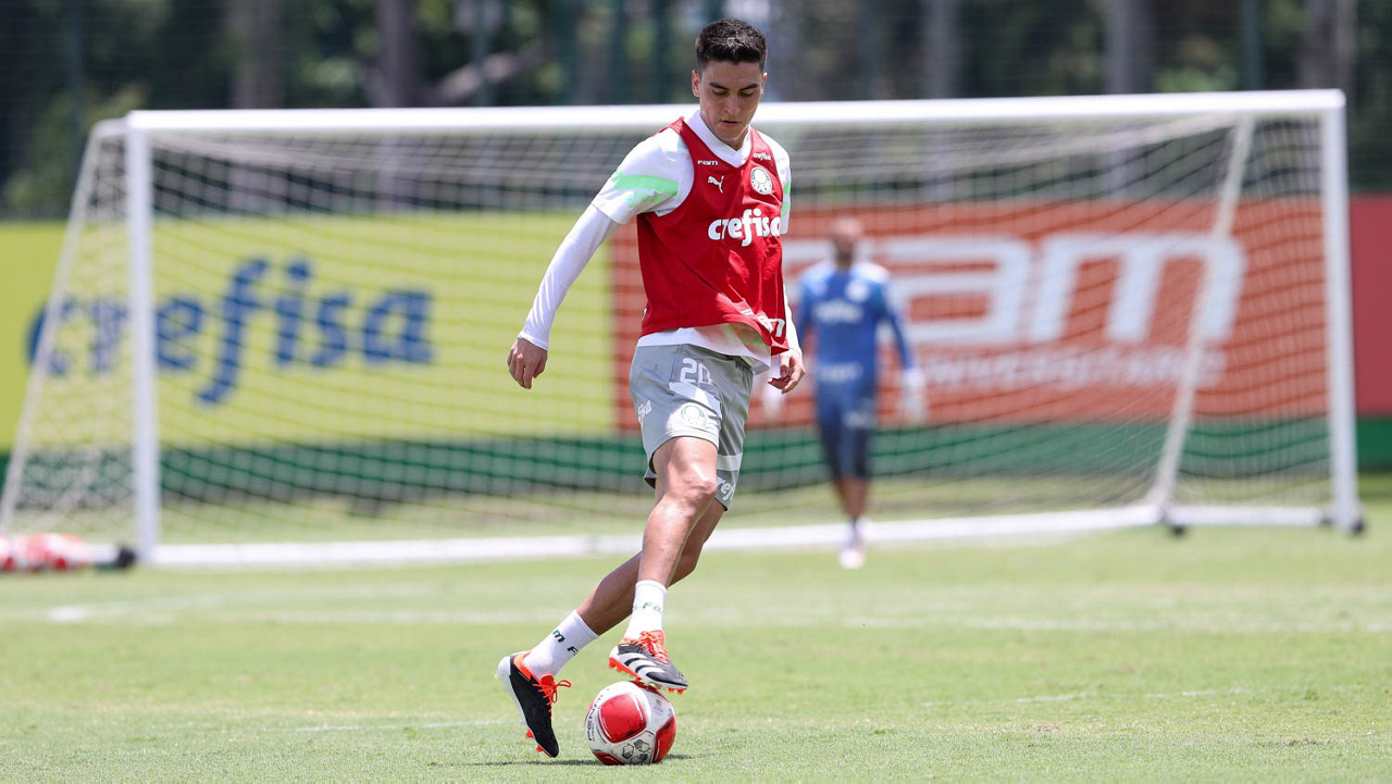 O jogador Richard Ríos, da SE Palmeiras, durante treinamento, na Academia de Futebol. (Foto: Cesar Greco/Palmeiras/by Canon)