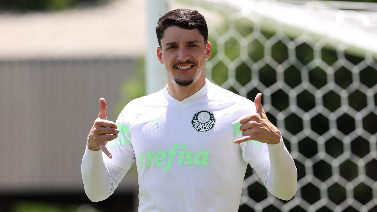 O jogador Joaquín Piquerez, da SE Palmeiras, durante treinamento, na Academia de Futebol. (Foto: Cesar Greco/Palmeiras/by Canon)