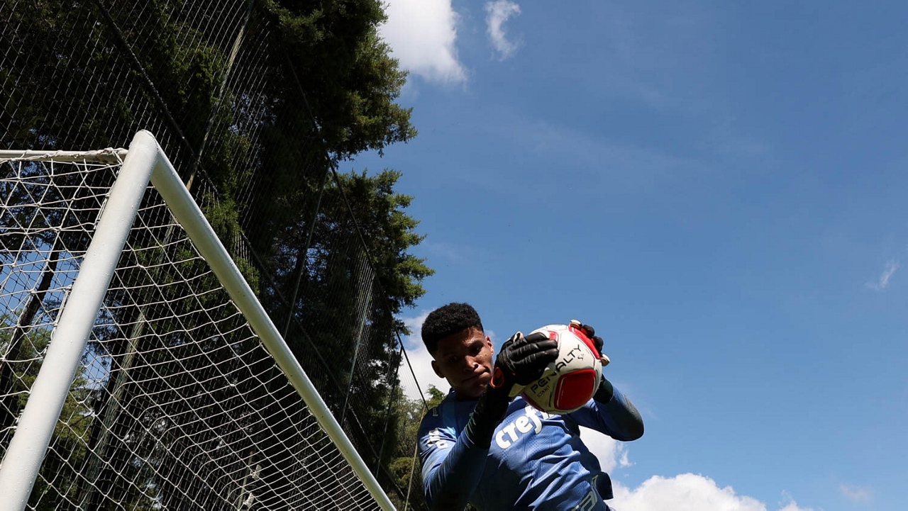 O goleiro Vinicius, da SE Palmeiras, durante treinamento, na Academia de Futebol. (Foto: Cesar Greco/Palmeiras/by Canon)