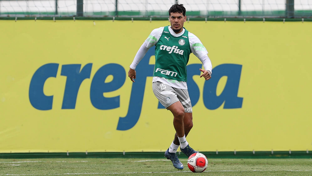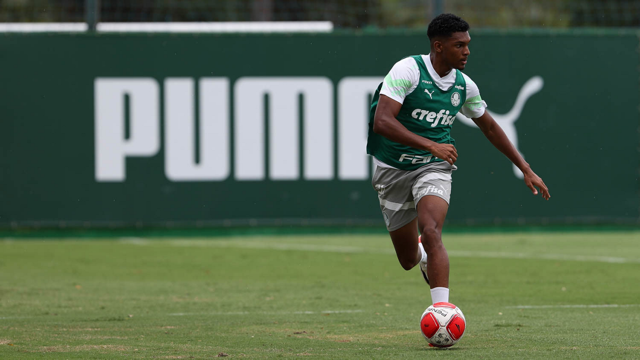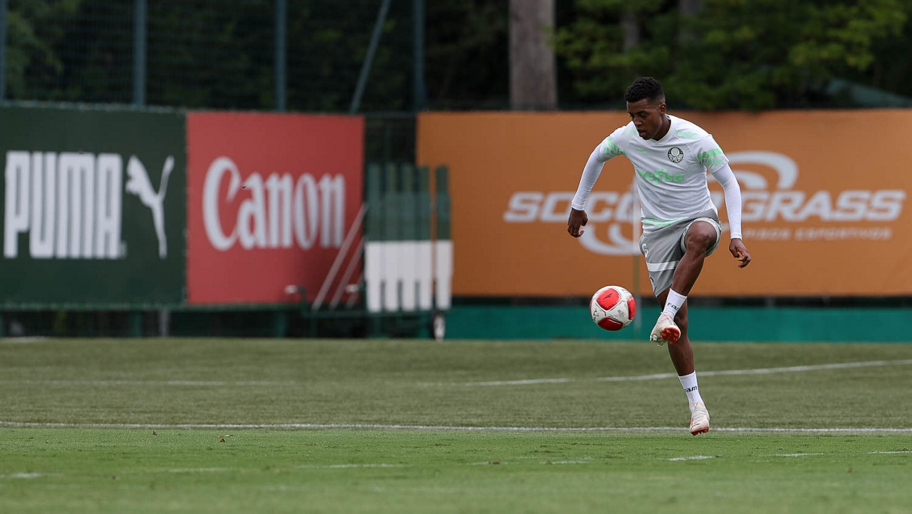 O jogador Gabriel Menino, da SE Palmeiras, durante treinamento, na Academia de Futebol. (Foto: Cesar Greco/Palmeiras/by Canon)