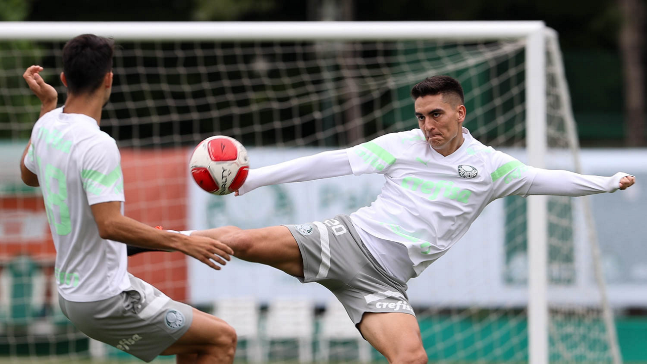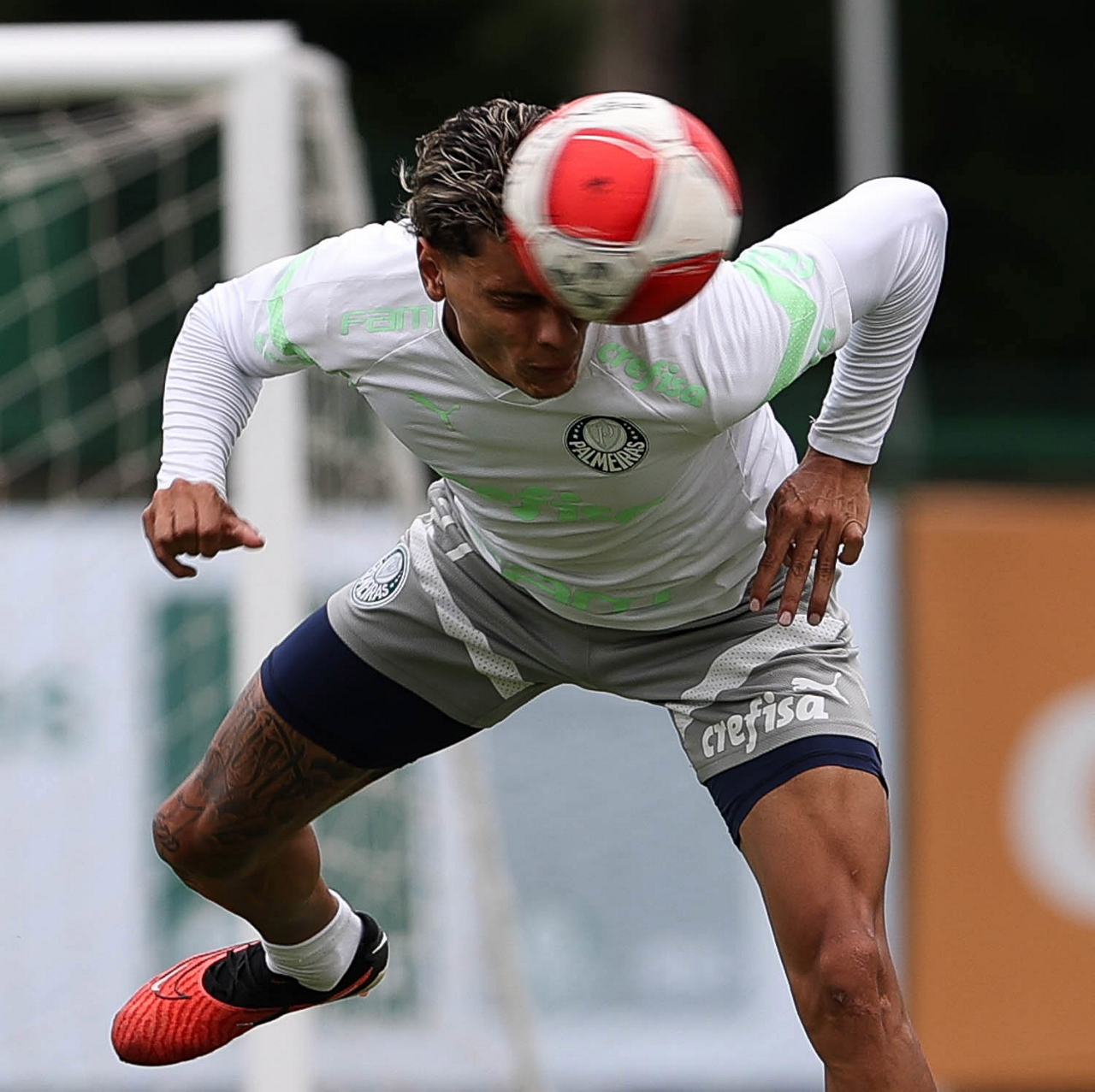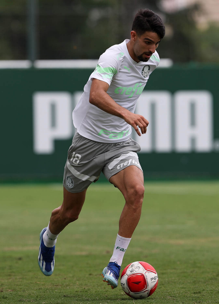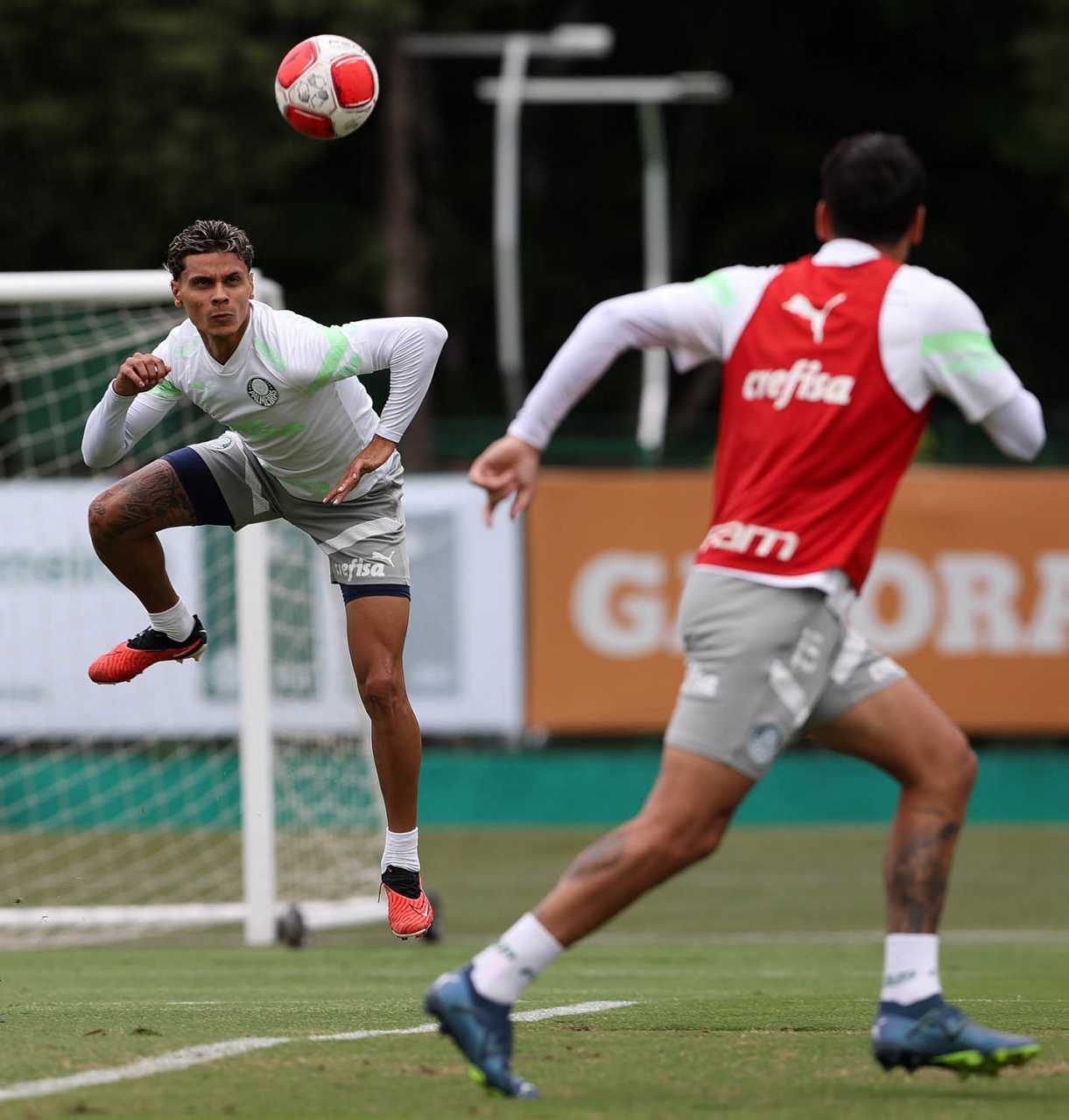 O jogador Richard Ríos, da SE Palmeiras, durante treinamento, na Academia de Futebol. (Foto: Cesar Greco/Palmeiras/by Canon)