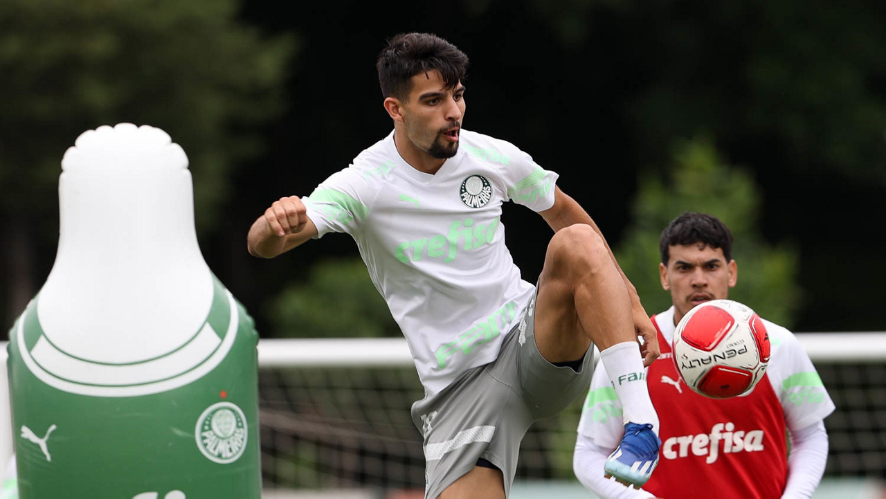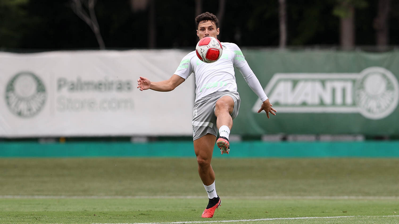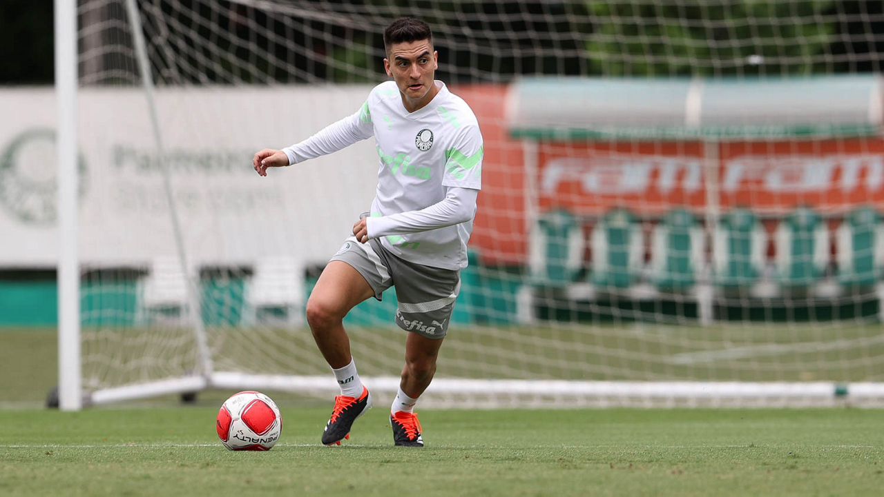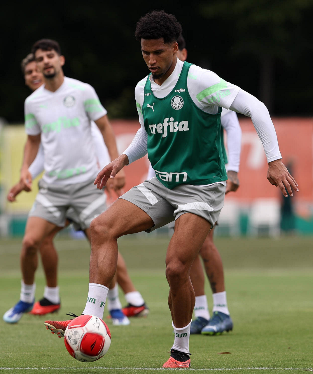 O jogador Richard Ríos, da SE Palmeiras, durante treinamento, na Academia de Futebol. (Foto: Cesar Greco/Palmeiras/by Canon)
