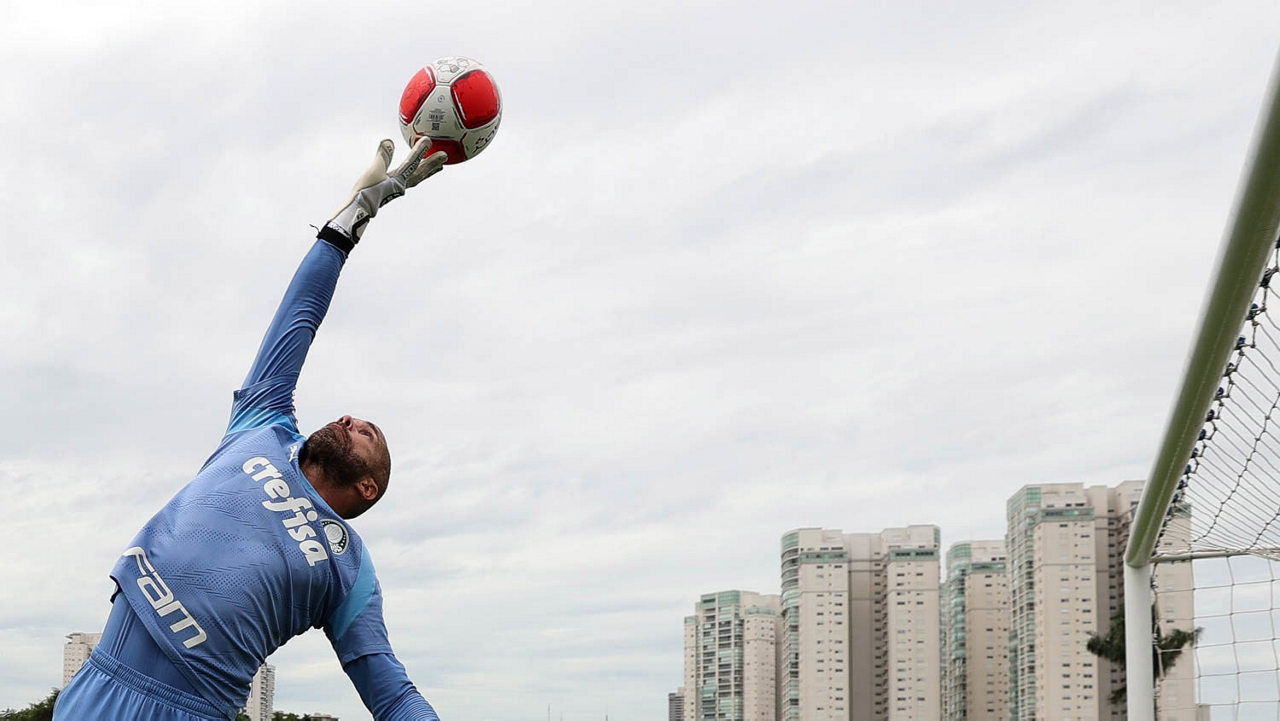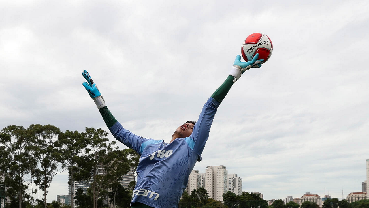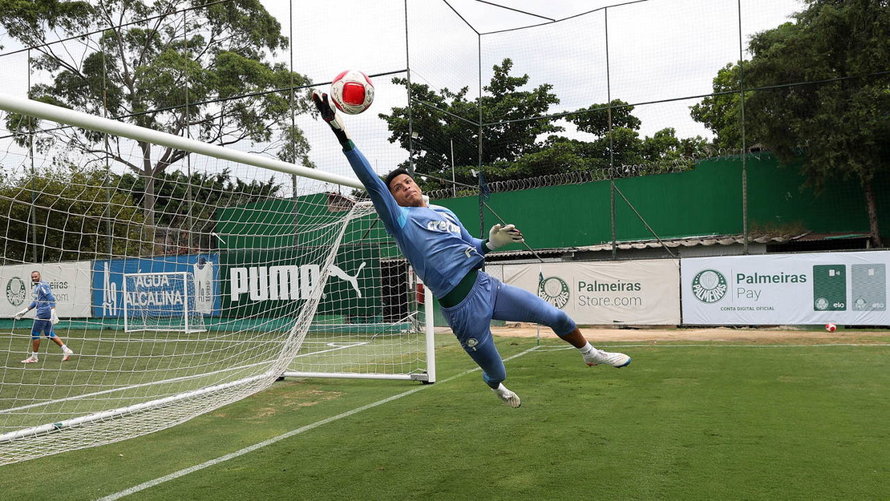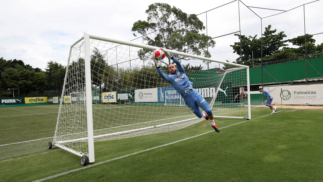 O goleiro Weverton, da SE Palmeiras, durante treinamento, na Academia de Futebol. (Foto: Cesar Greco/Palmeiras/by Canon)