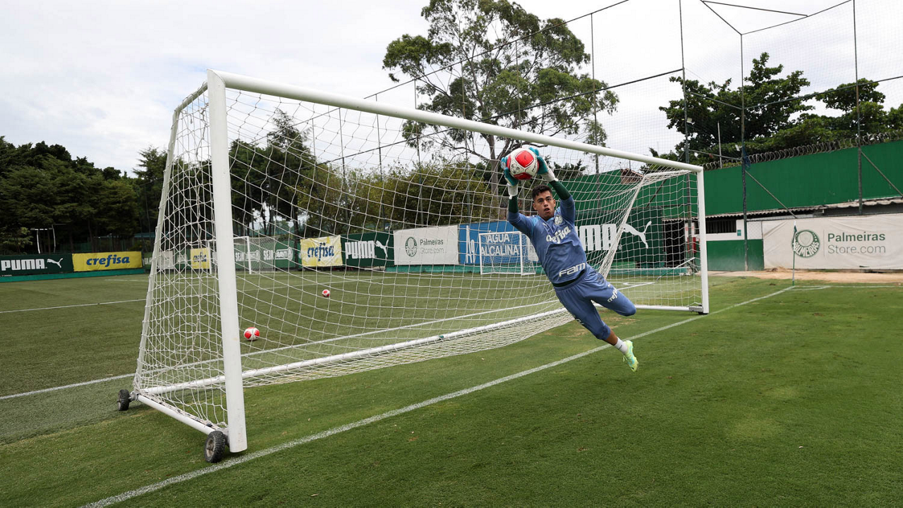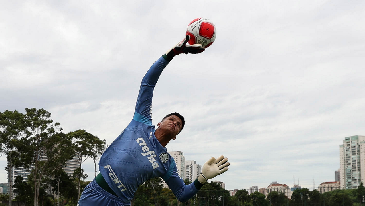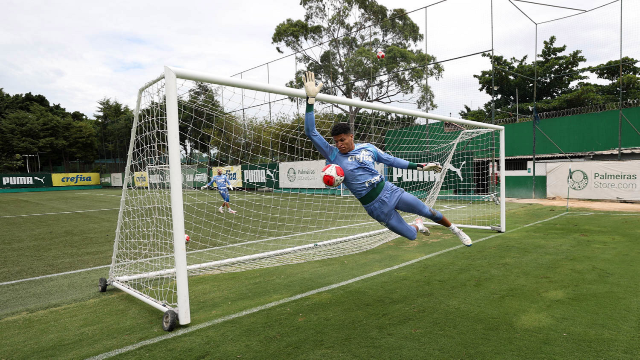 O goleiro Vinicius, da SE Palmeiras, durante treinamento, na Academia de Futebol. (Foto: Cesar Greco/Palmeiras/by Canon)
