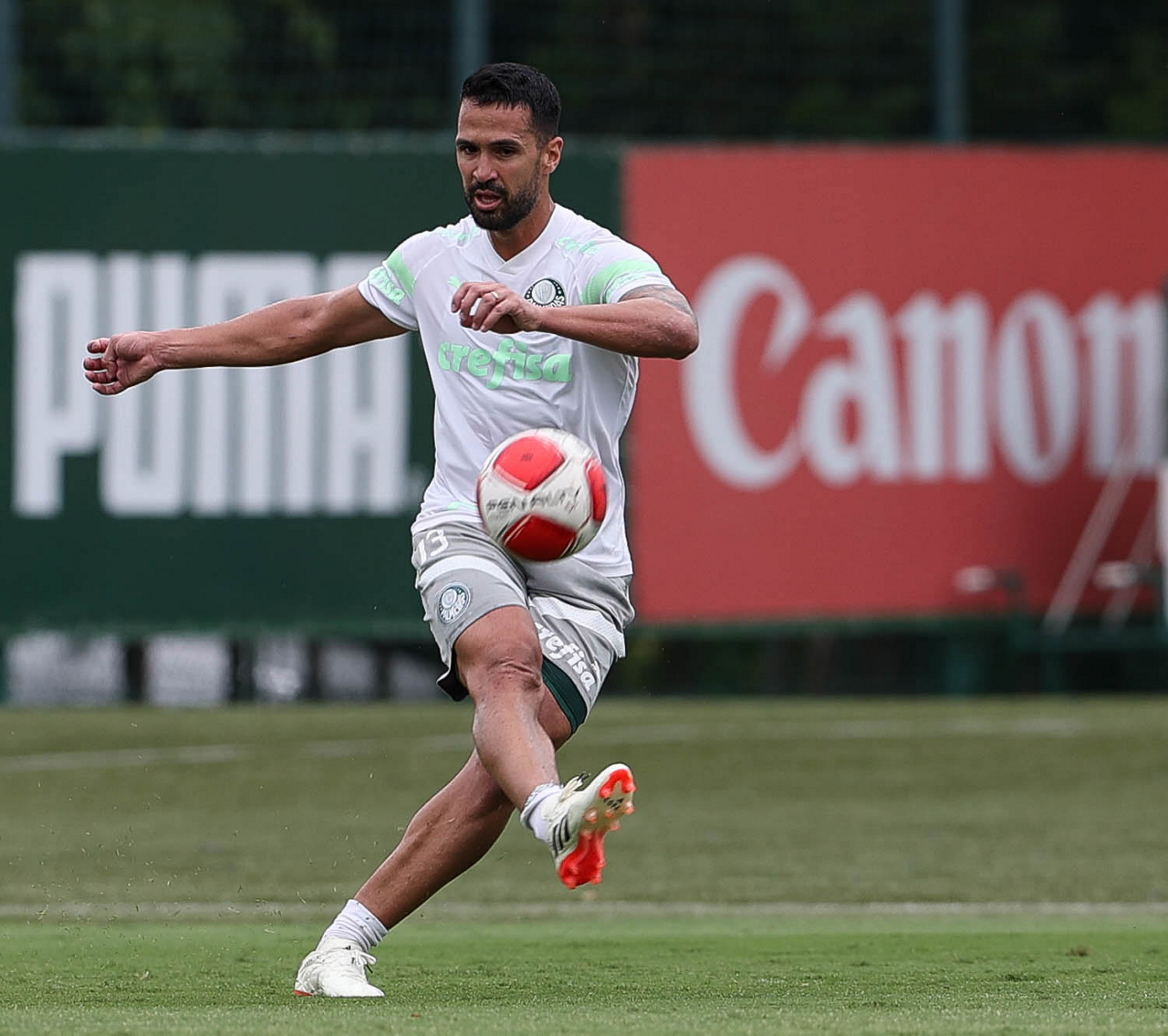 O jogador Marcos Rocha, da SE Palmeiras, durante treinamento, na Academia de Futebol. (Foto: Cesar Greco/Palmeiras/by Canon)