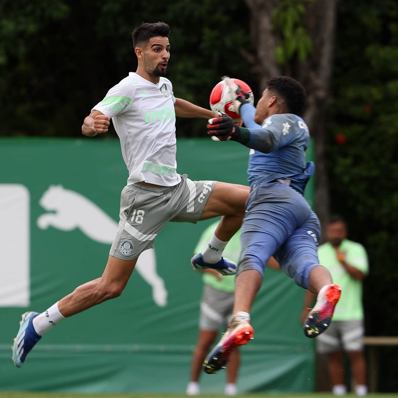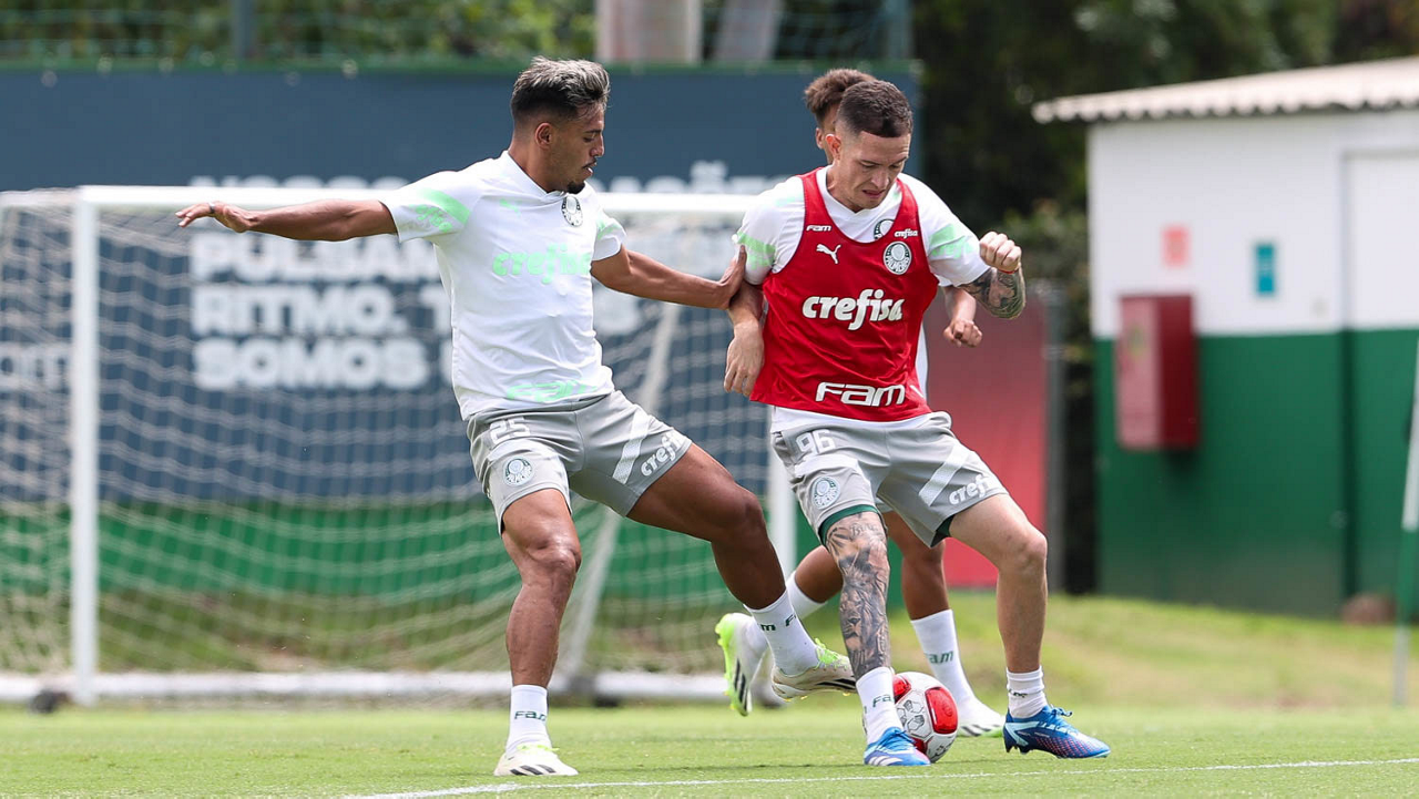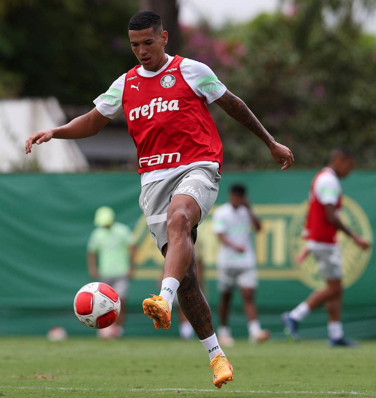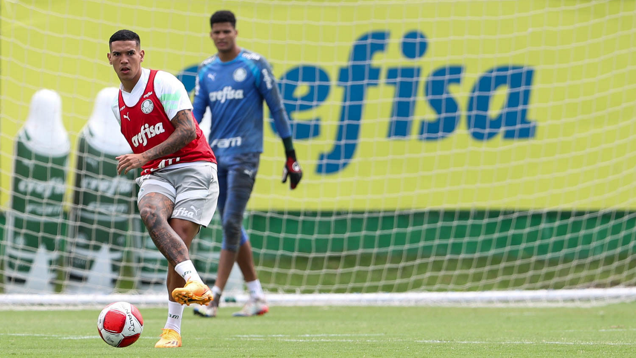 O jogador Gabriel Menino (D), da SE Palmeiras, durante treinamento, na Academia de Futebol. (Foto: Cesar Greco/Palmeiras/by Canon)
