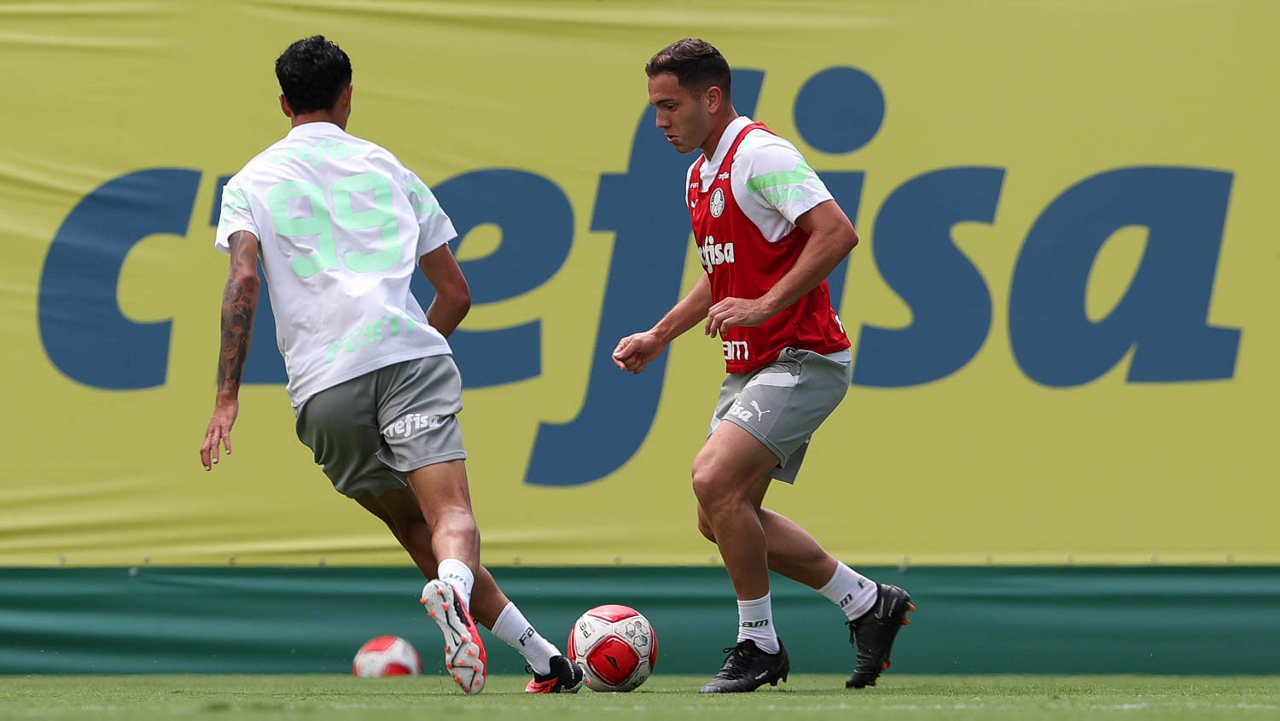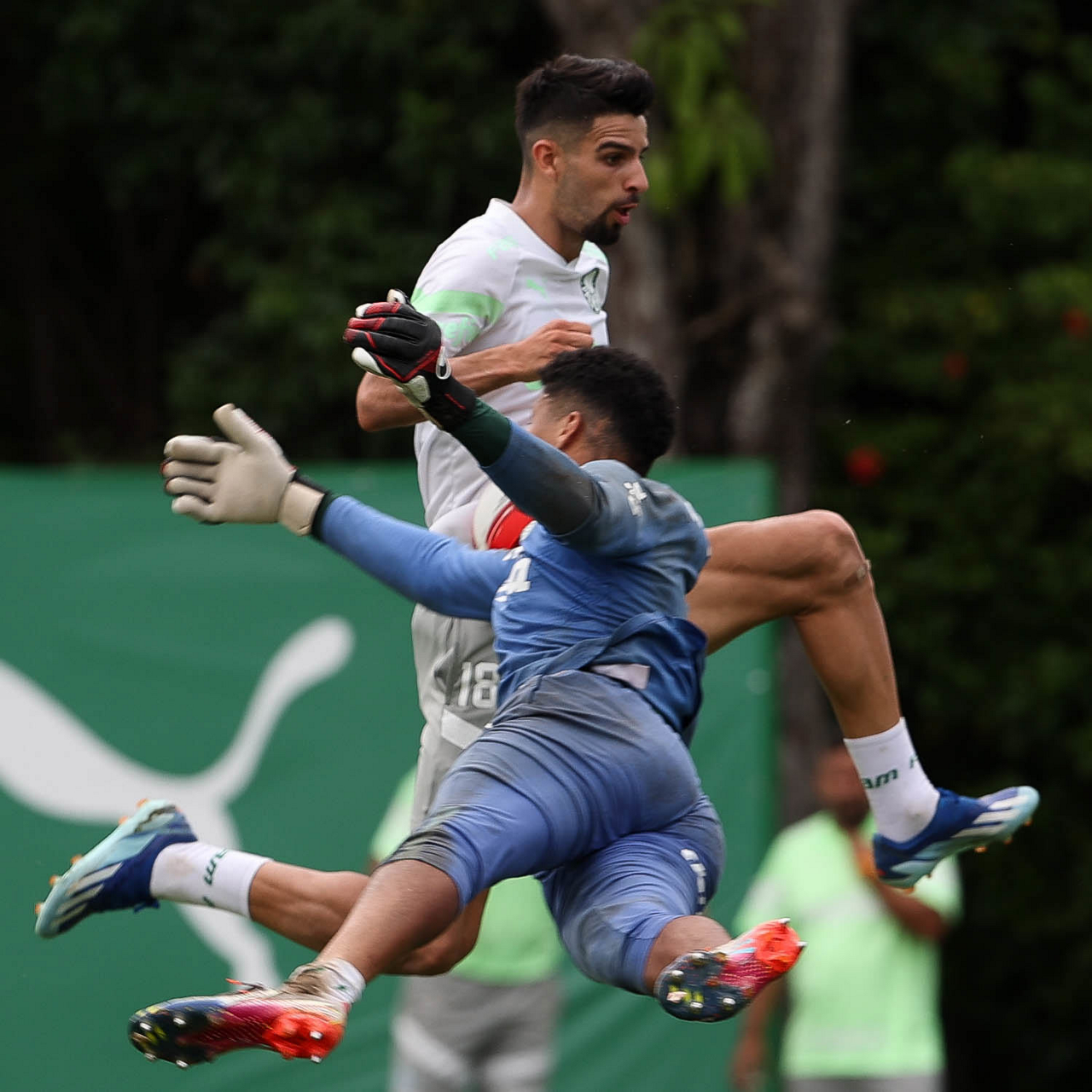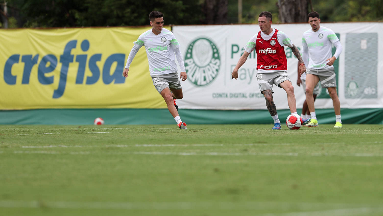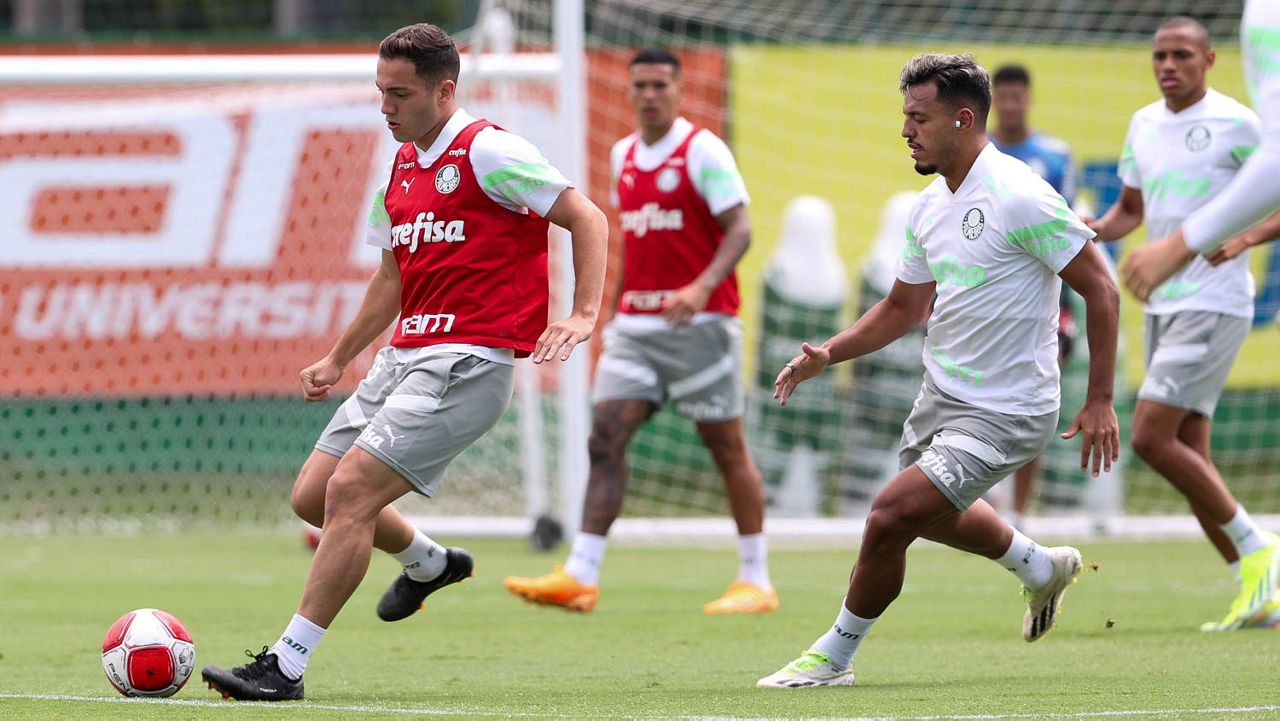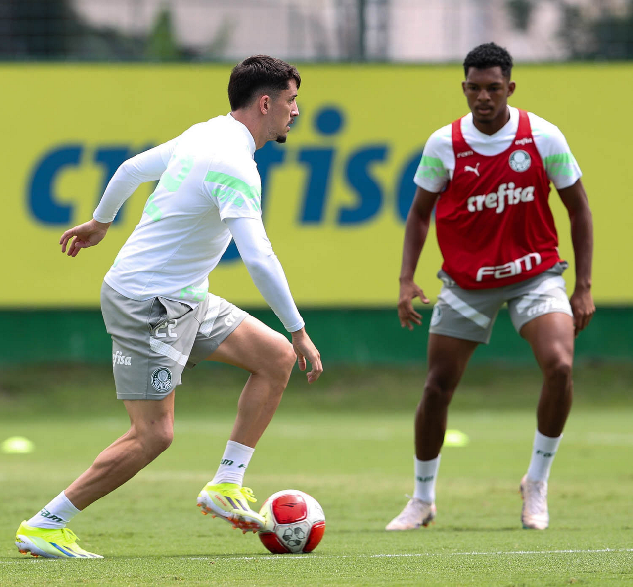 O jogador Gabriel Menino (D), da SE Palmeiras, durante treinamento, na Academia de Futebol. (Foto: Cesar Greco/Palmeiras/by Canon)