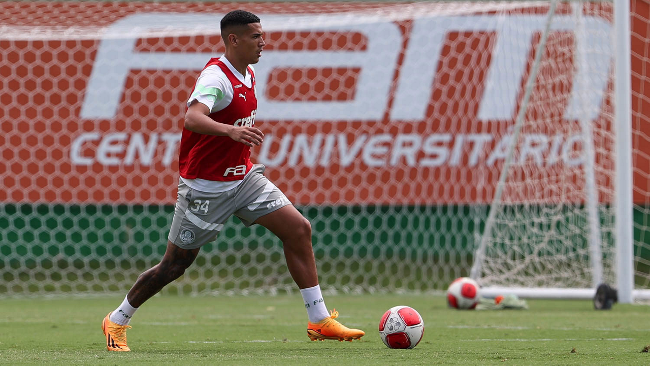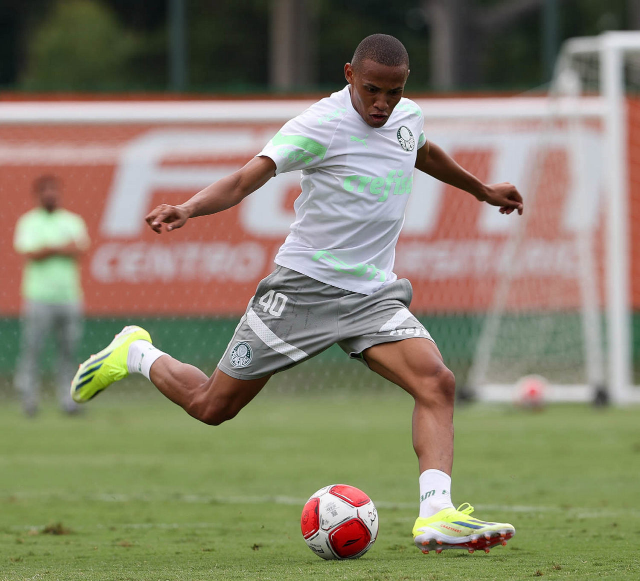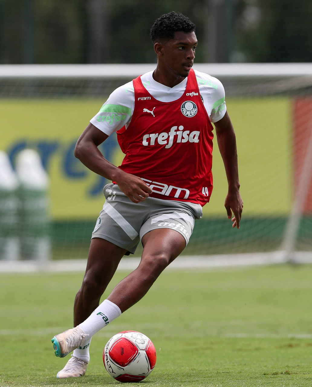 O jogador Gabriel Menino, da SE Palmeiras, durante treinamento, na Academia de Futebol. (Foto: Cesar Greco/Palmeiras/by Canon)