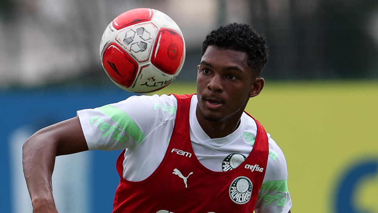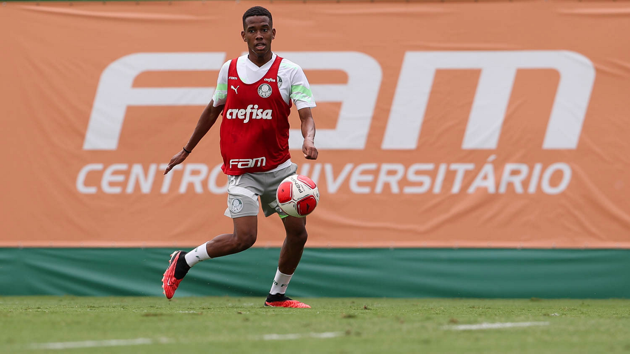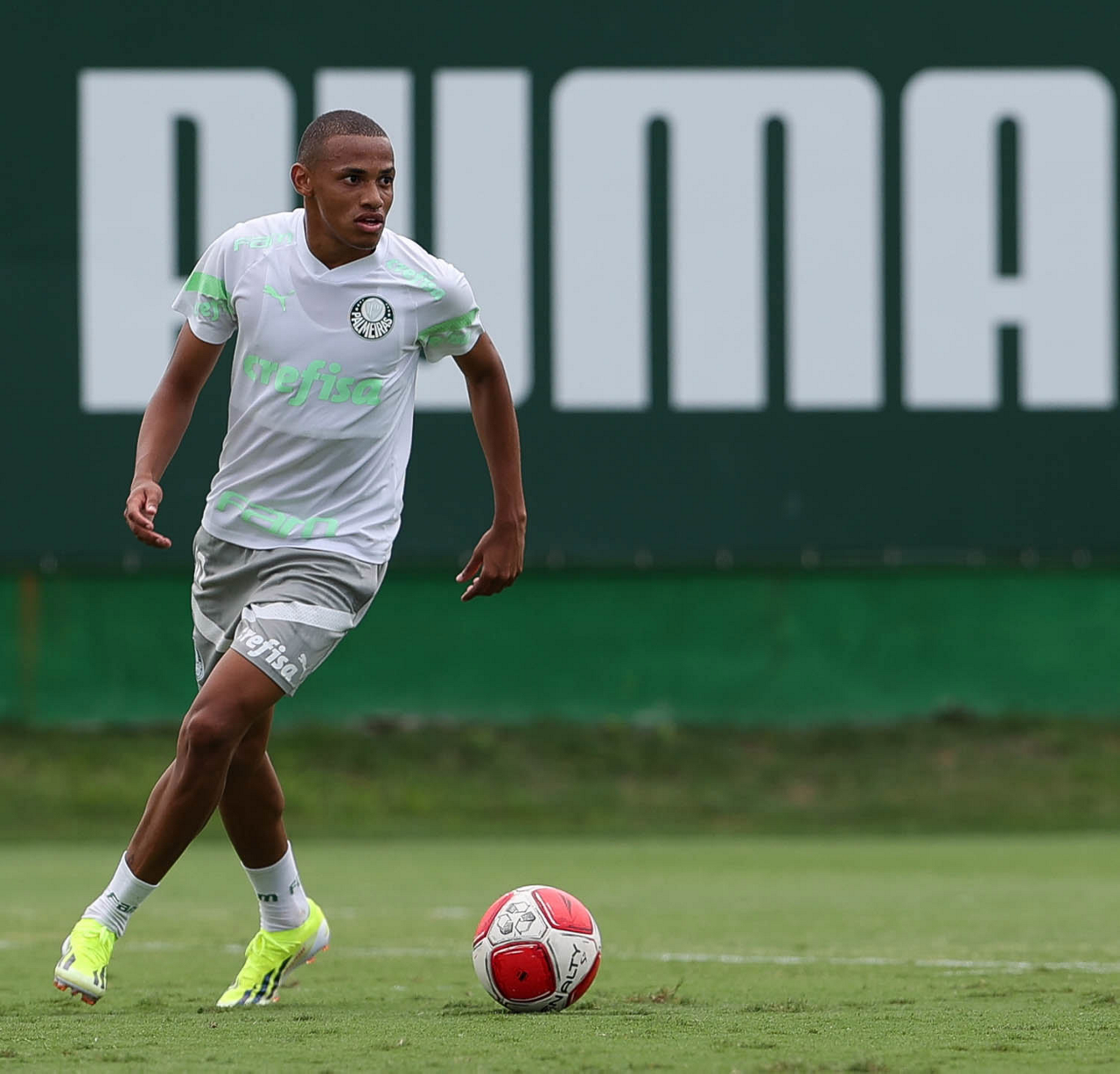 O jogador Gabriel Menino, da SE Palmeiras, durante treinamento, na Academia de Futebol. (Foto: Cesar Greco/Palmeiras/by Canon)