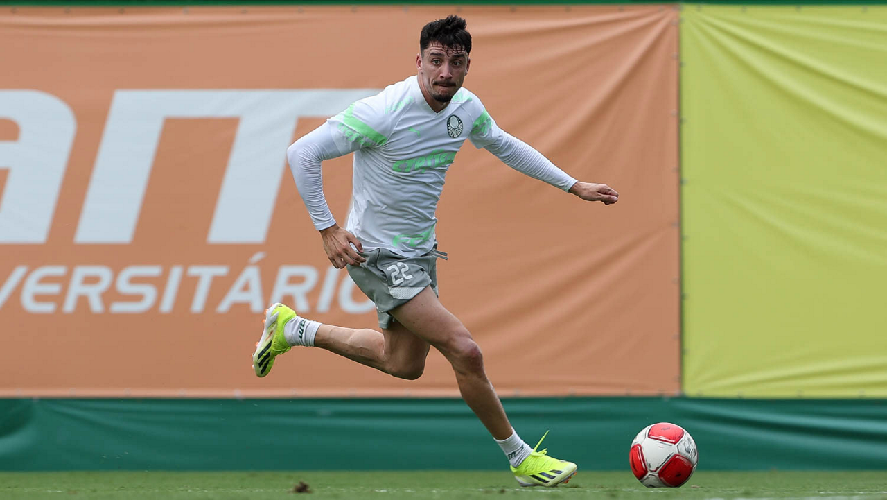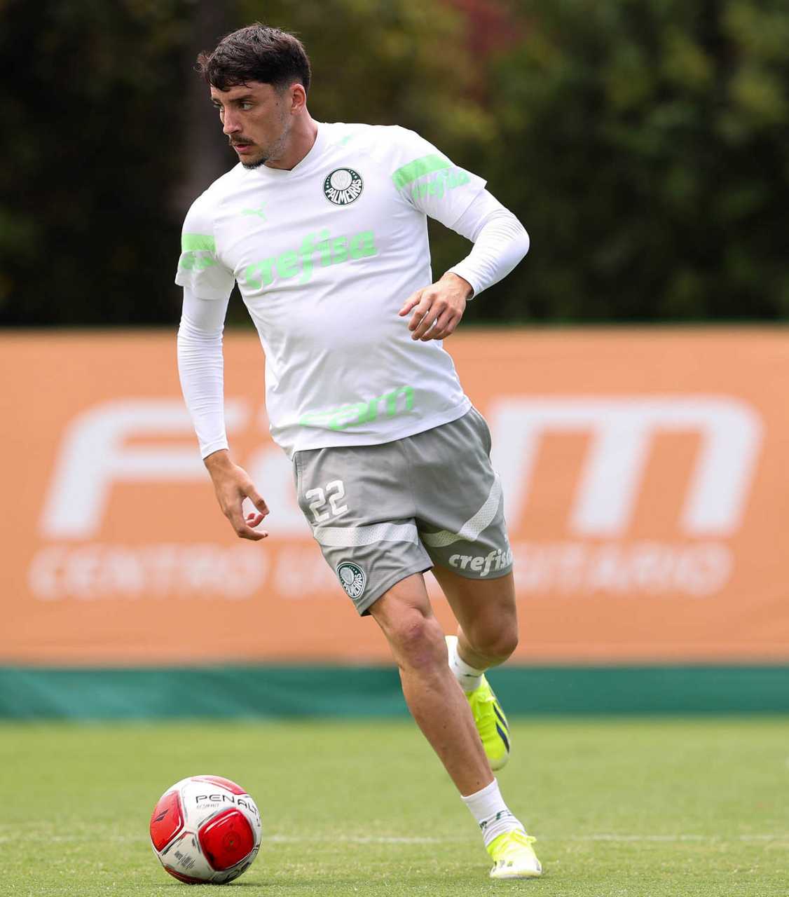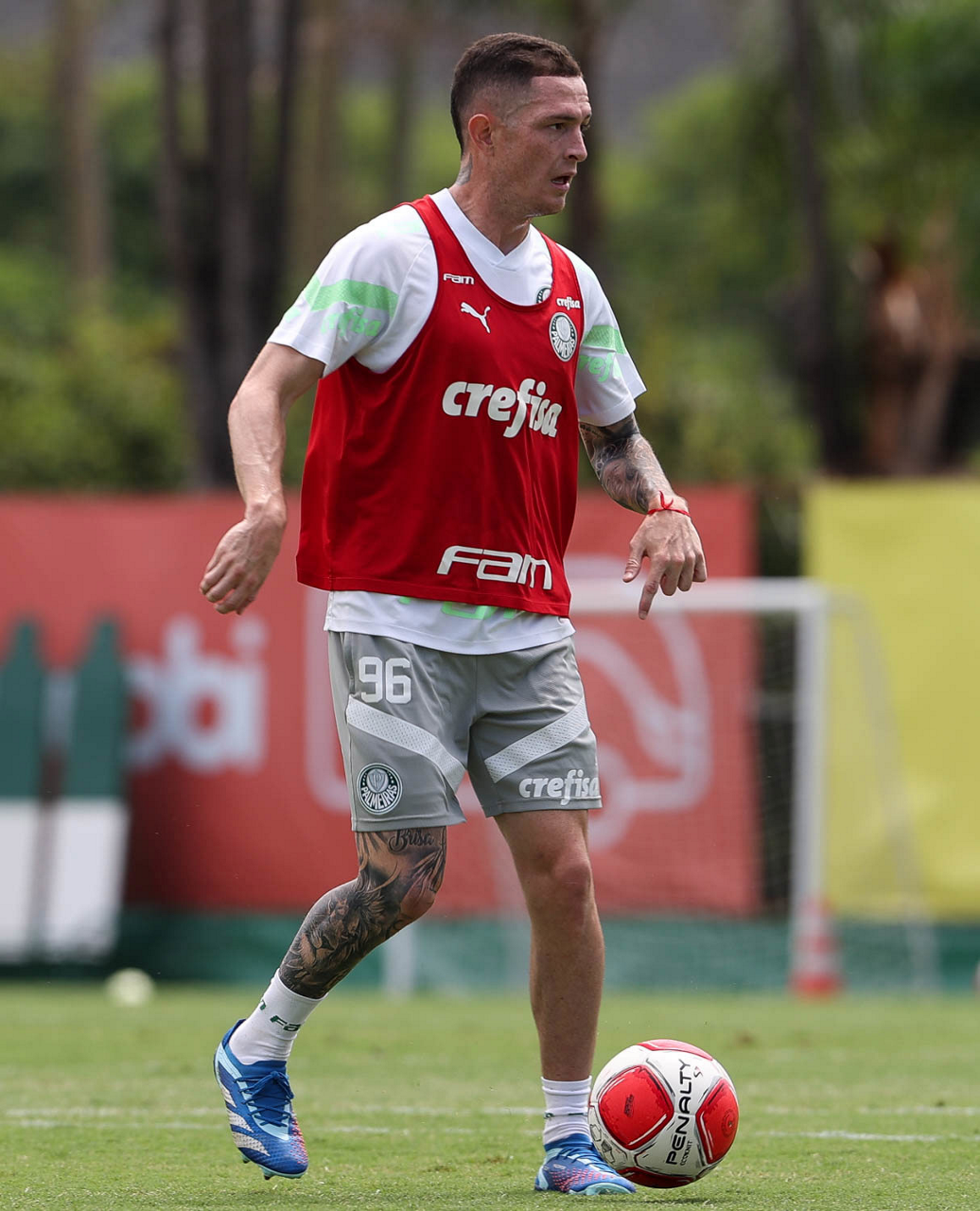 O jogador Joaquín Piquerez, da SE Palmeiras, durante treinamento, na Academia de Futebol. (Foto: Cesar Greco/Palmeiras/by Canon)