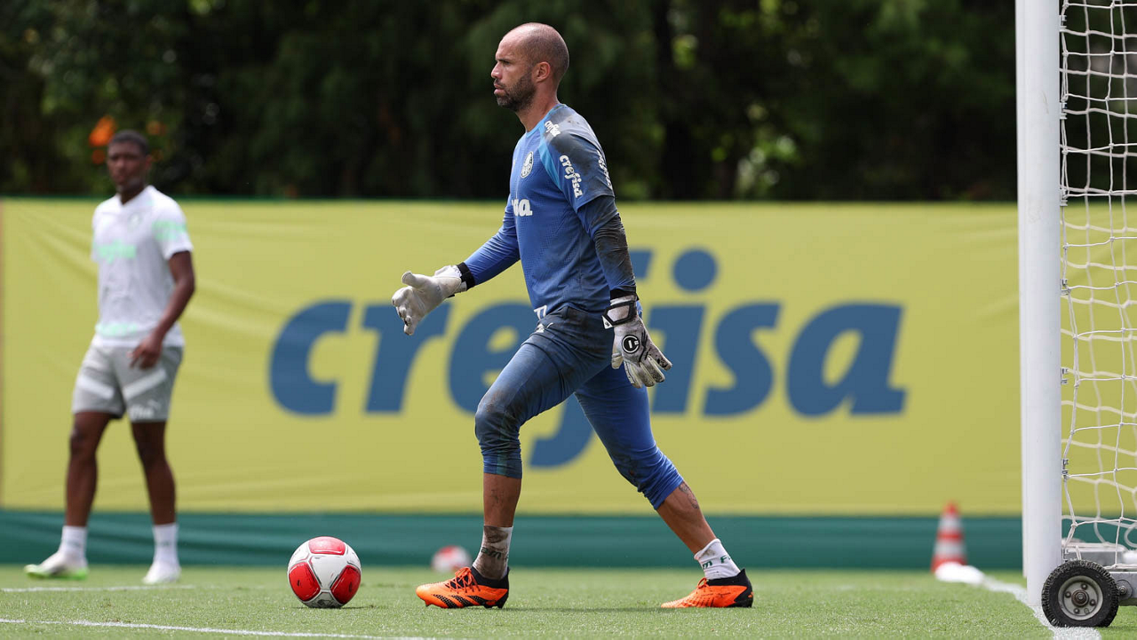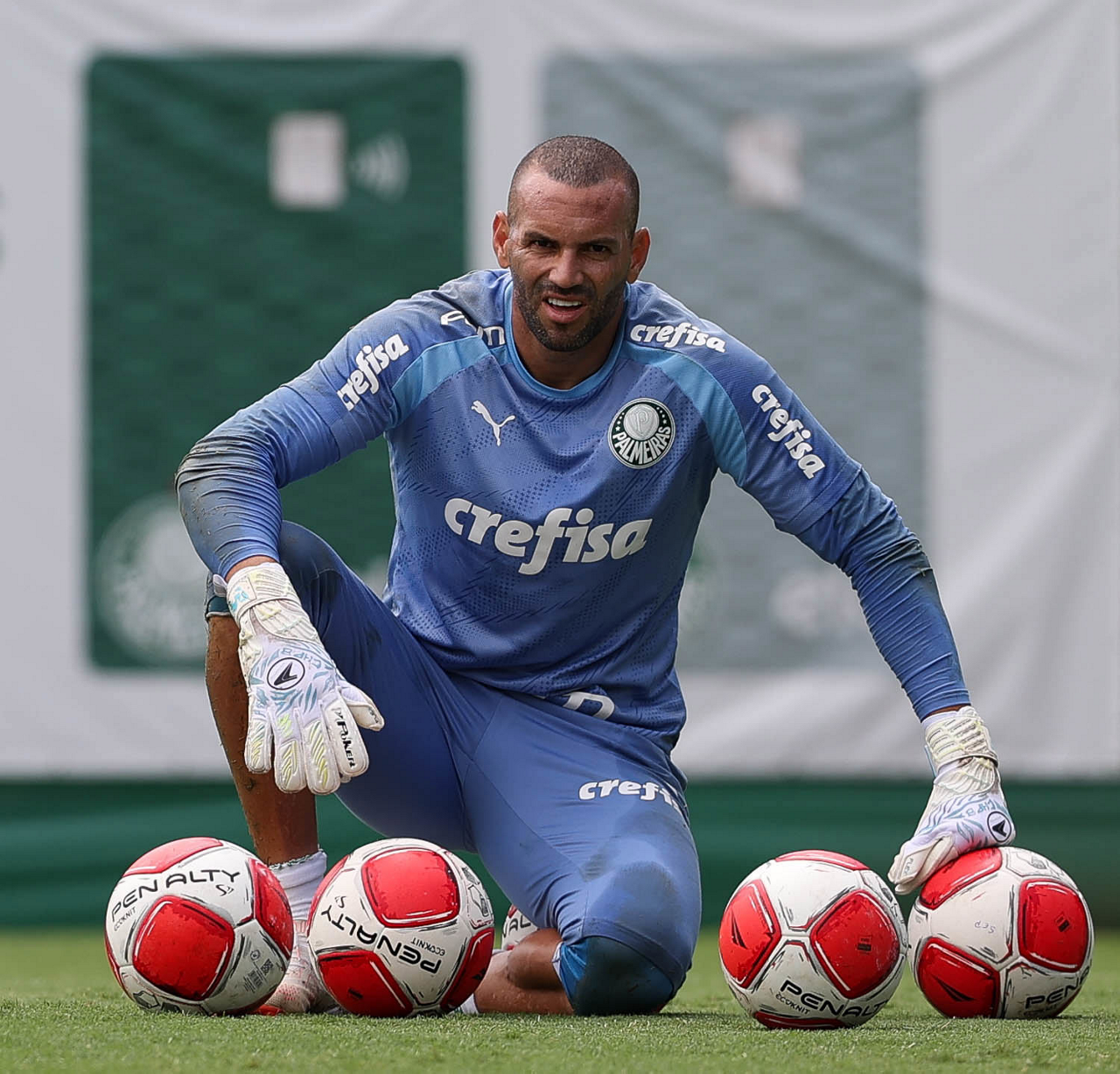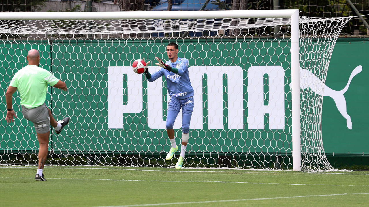 O goleiro Weverton, da SE Palmeiras, durante treinamento, na Academia de Futebol. (Foto: Cesar Greco/Palmeiras/by Canon)