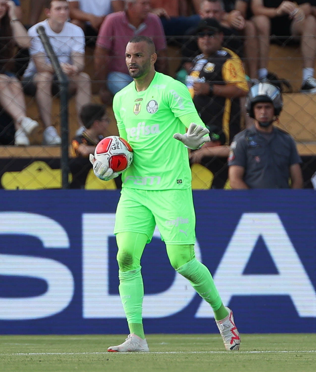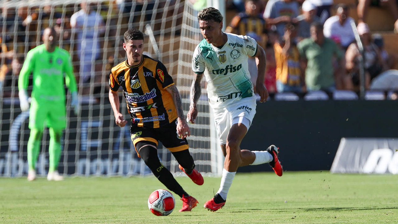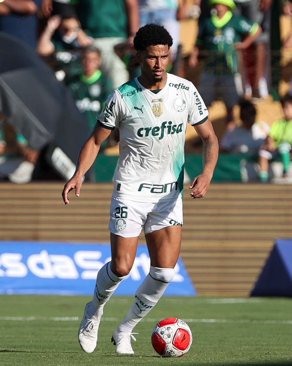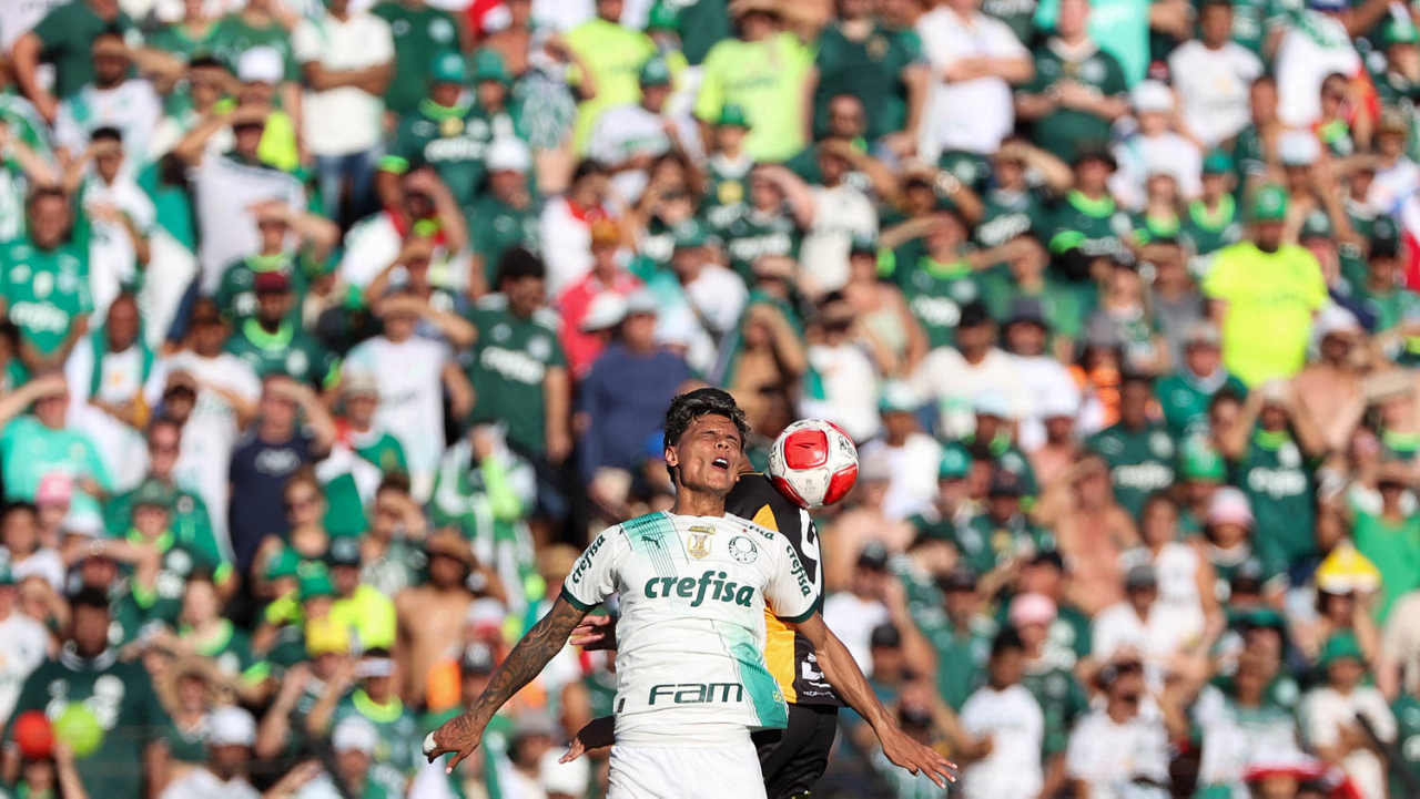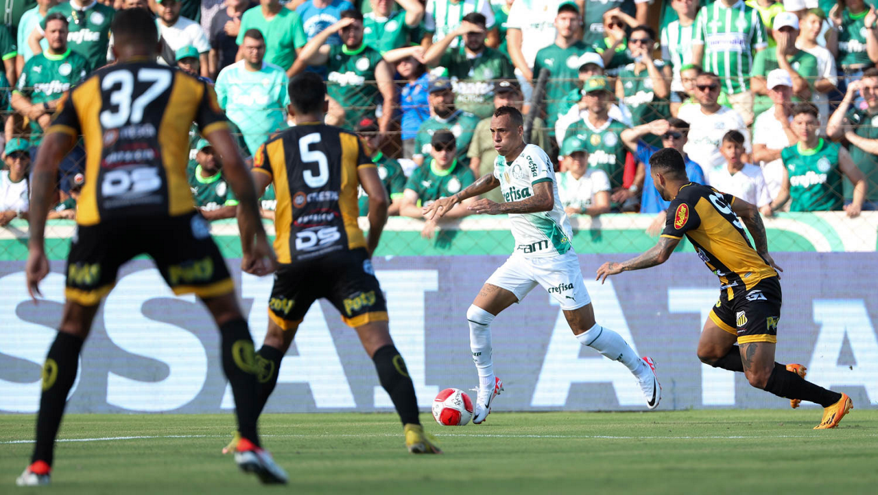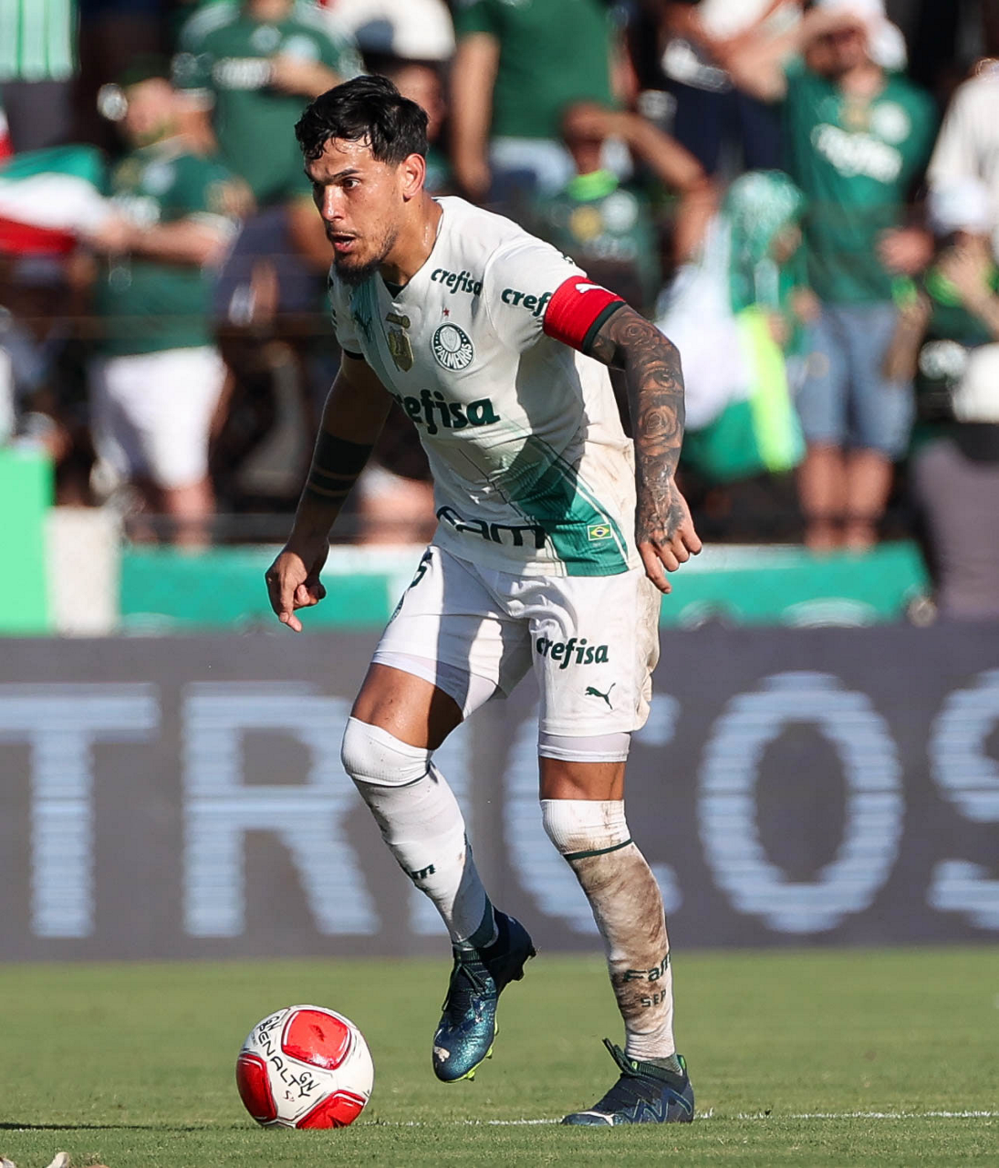 Os jogadores Murilo e Zé Rafael (D), da SE Palmeiras, disputam bola com o jogador do G Novorizontino, durante partida válida pela primeira rodada, do Campeonato Paulista, Série A1, no Estádio Dr. Jorge Ismael de Biasi. (Foto: Cesar Greco/Palmeiras/by Canon)