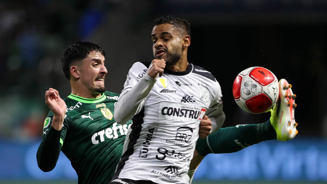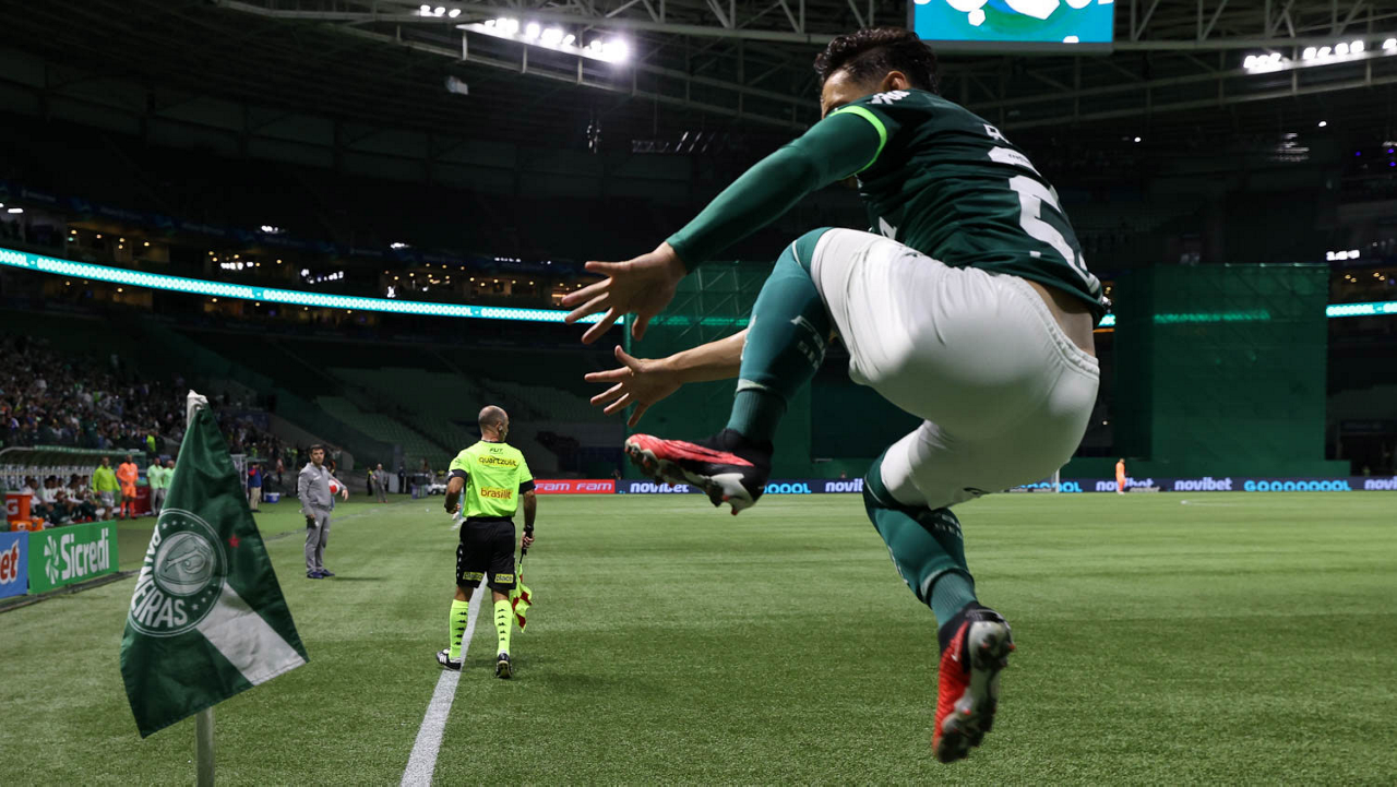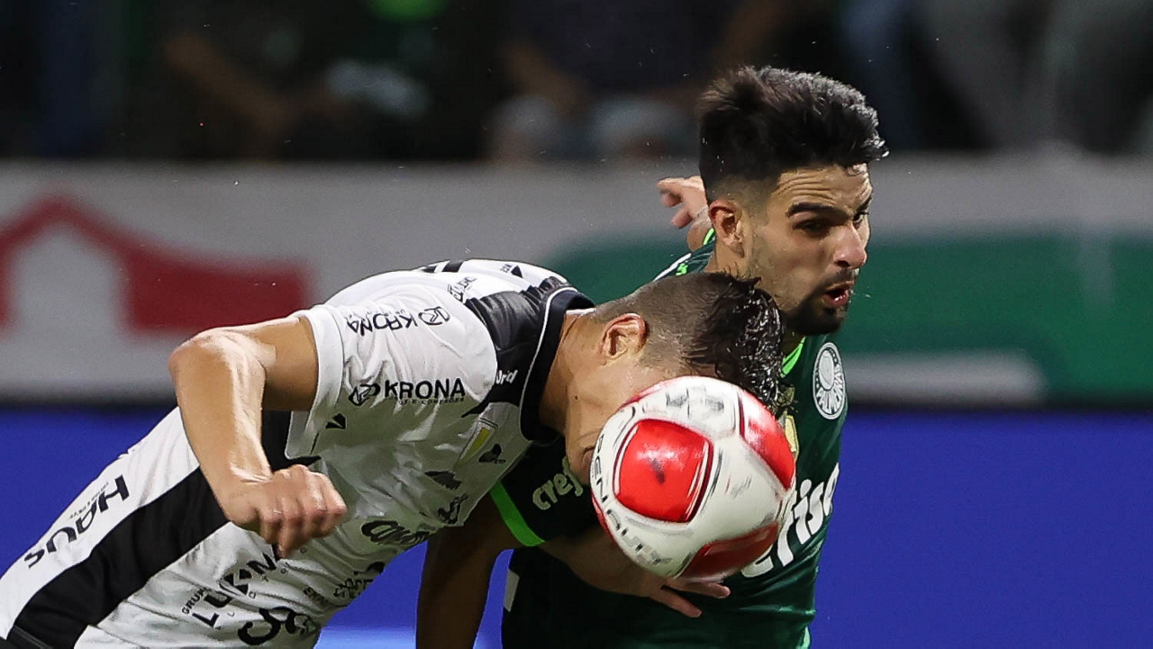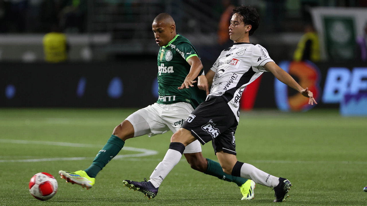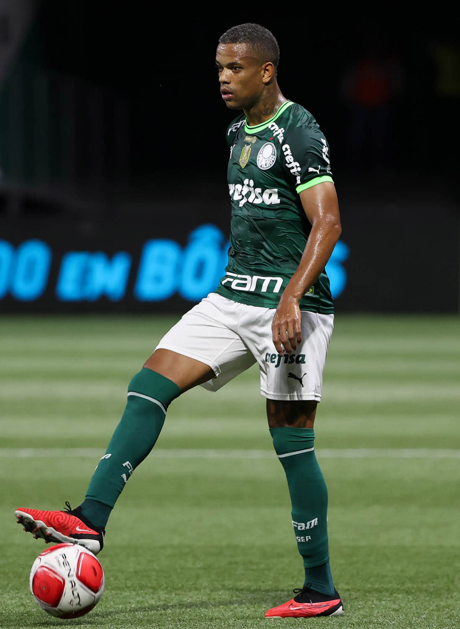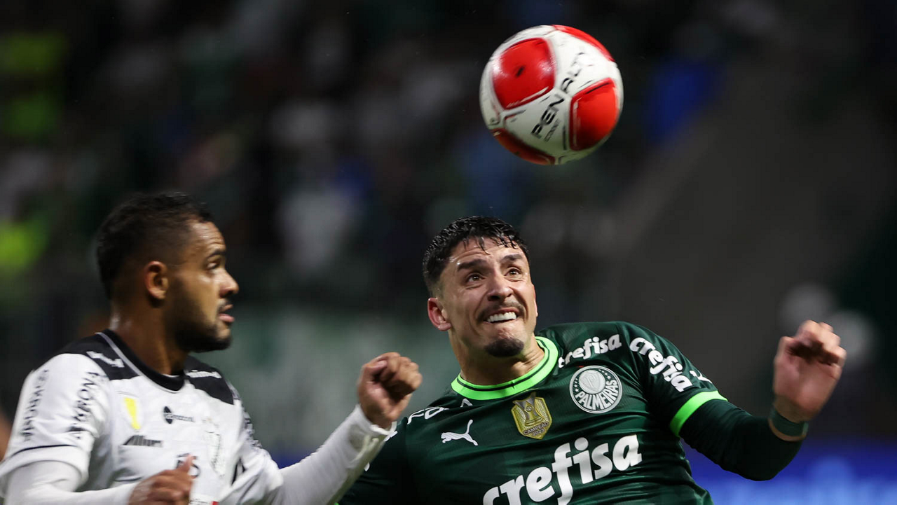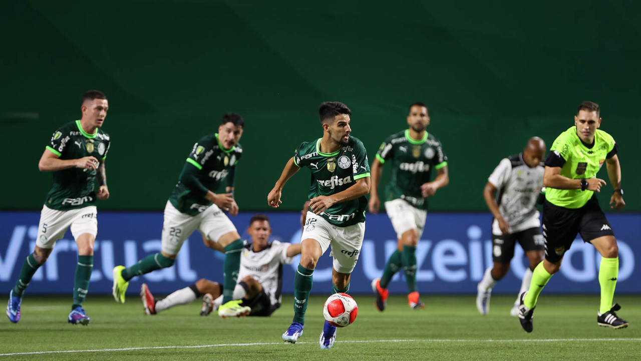 O técnico Abel Ferreira e o jogador Gustavo Gómez (D), da SE Palmeiras, em jogo contra a equipe da AA Internacional - Limeira, durante partida válida pela segunda rodada, do Campeonato Paulista, Série A1, na arena Allianz Parque. (Foto: Cesar Greco/Palmeiras/by Canon)