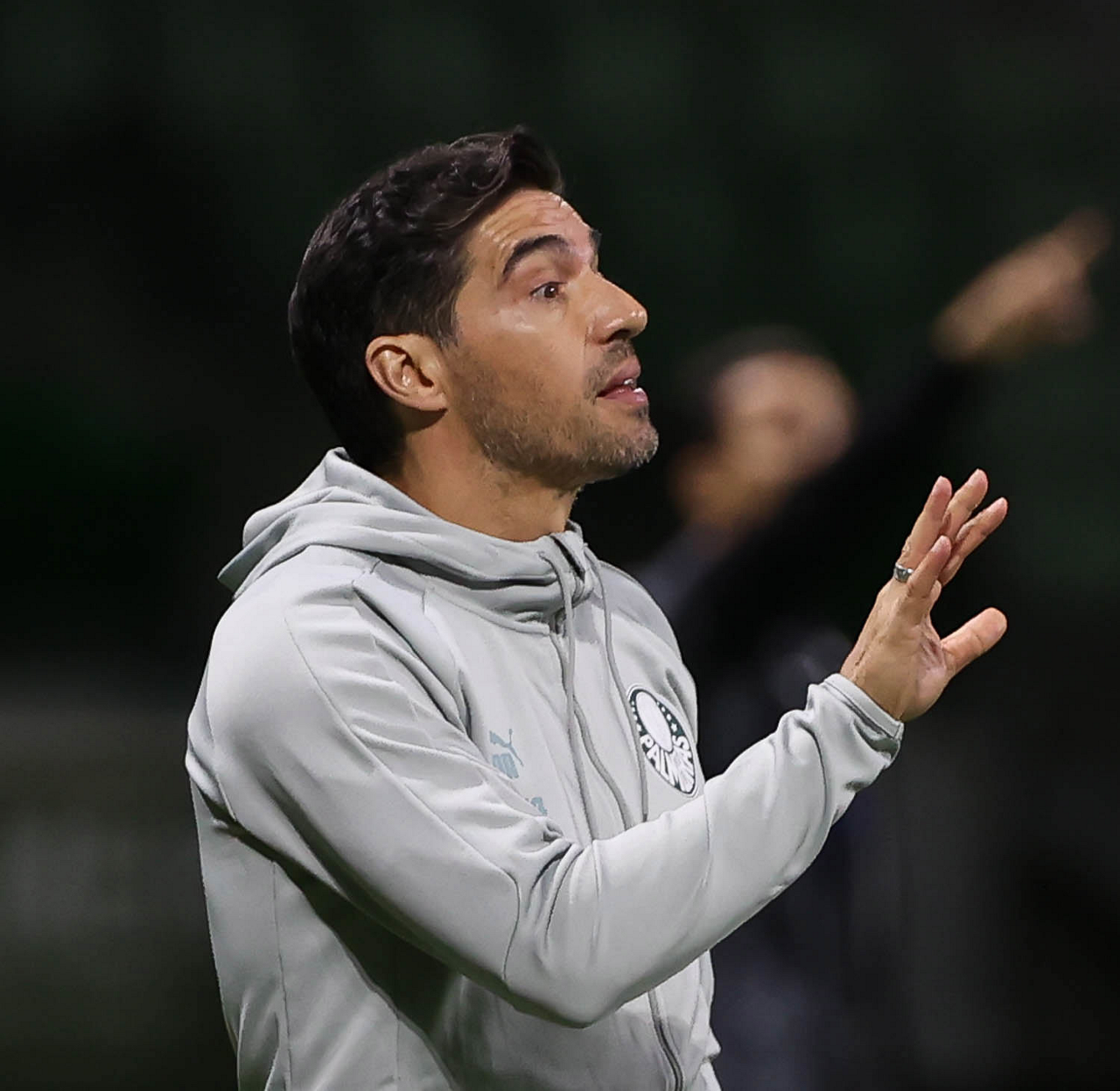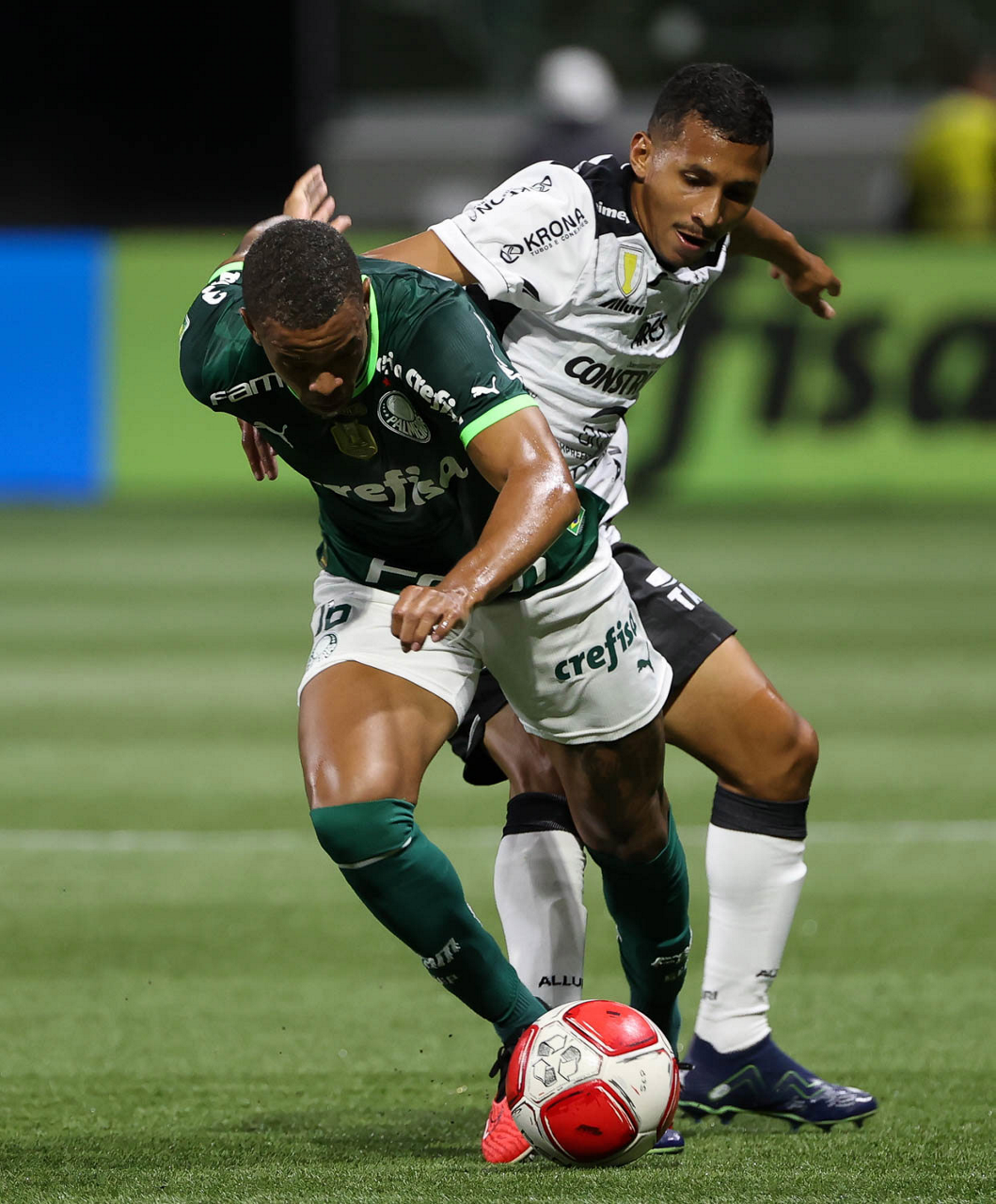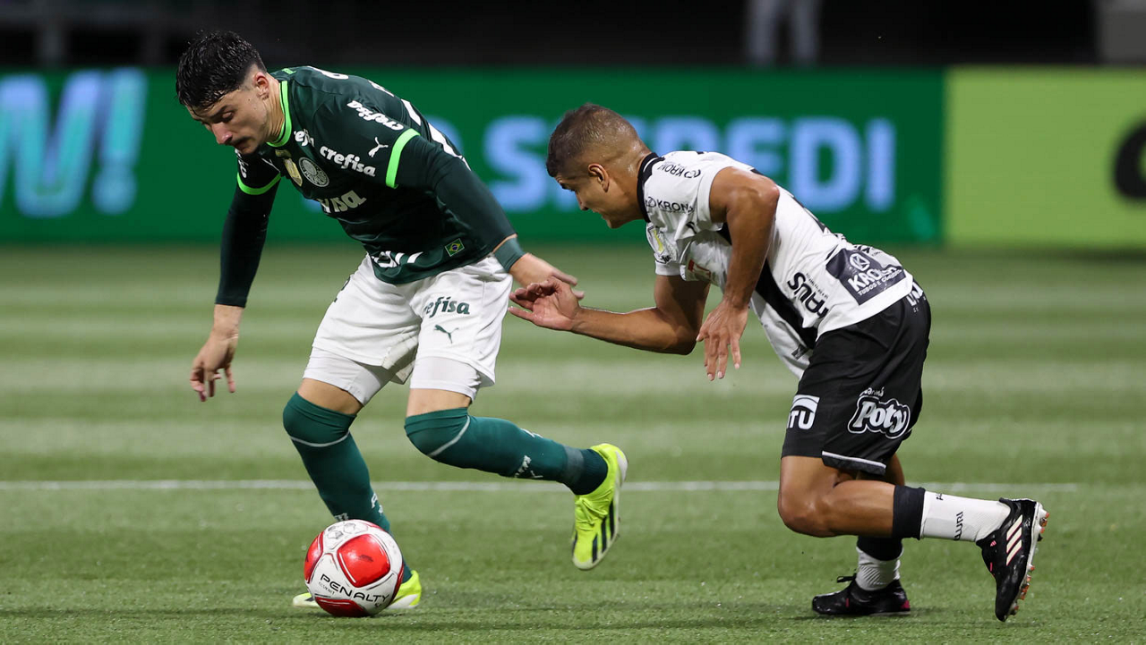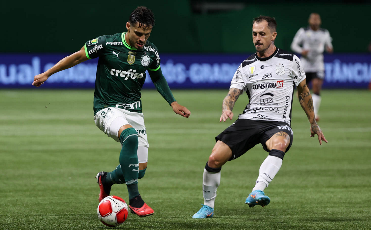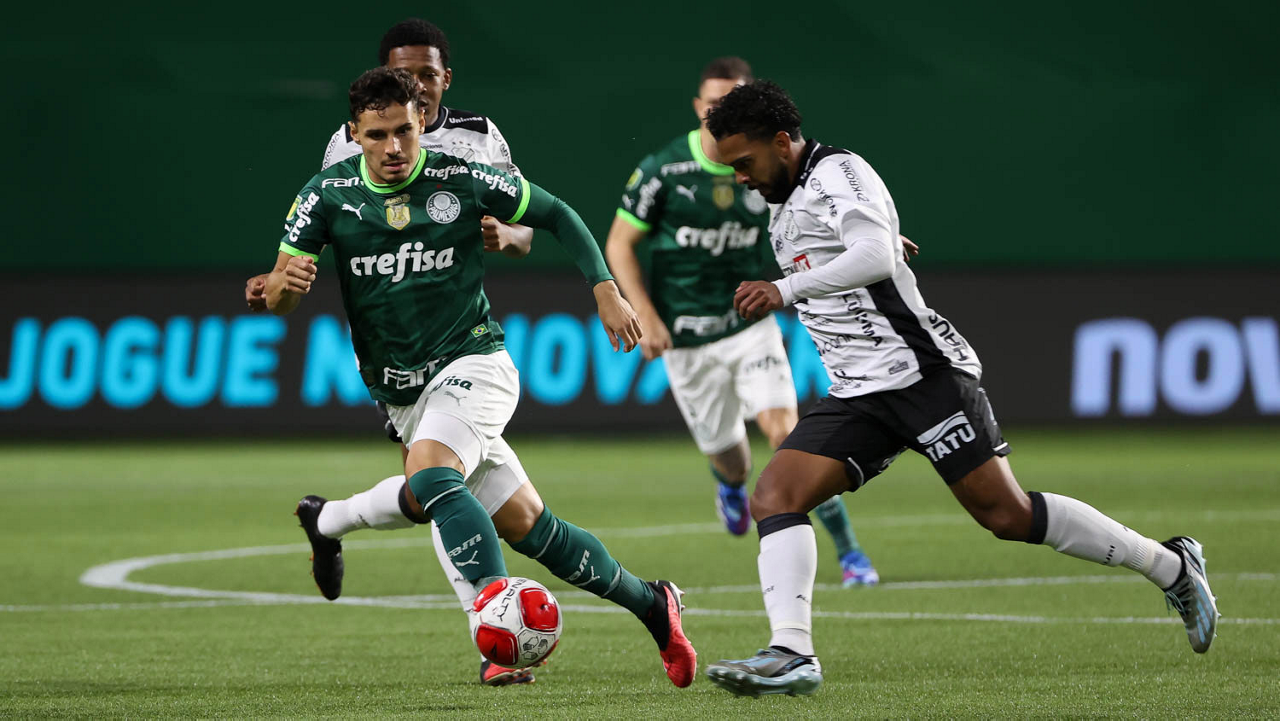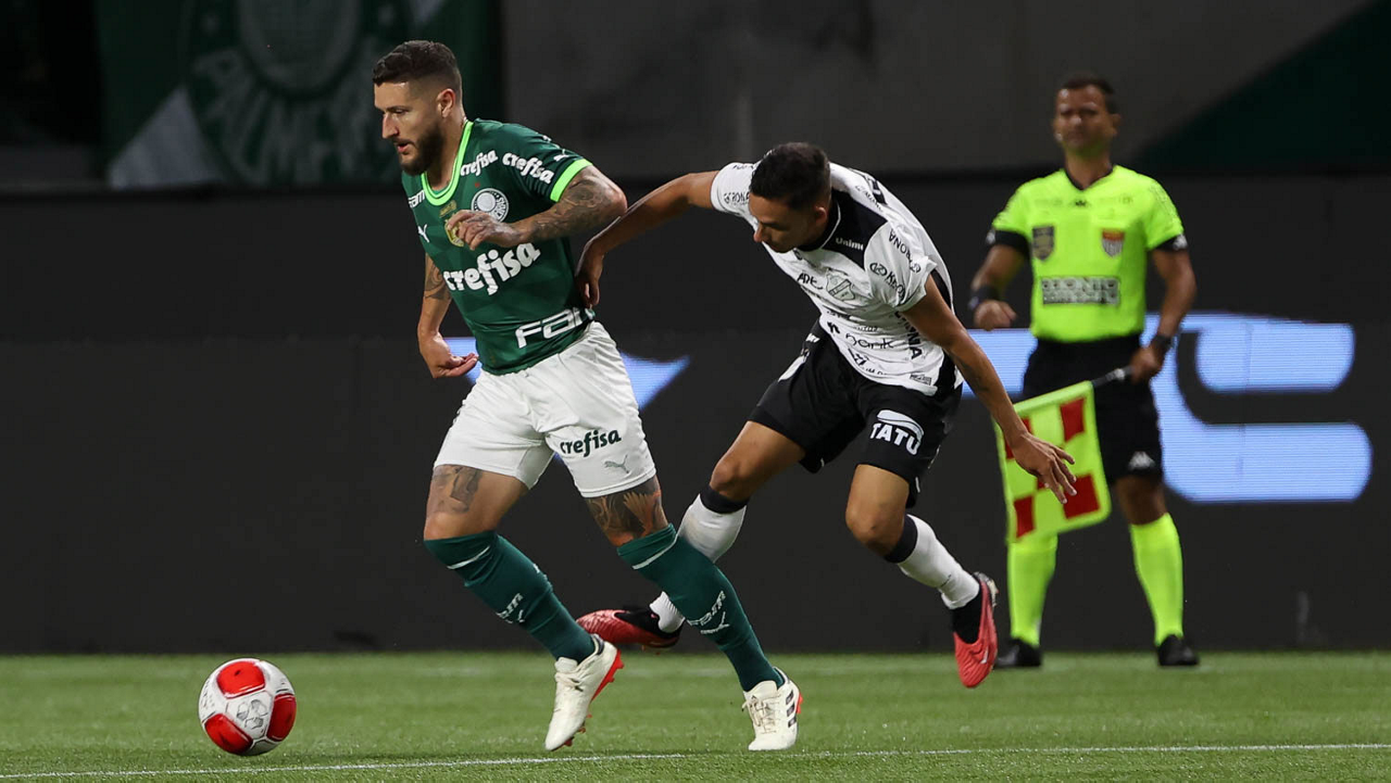 O técnico Abel Ferreira e o jogador Gustavo Gómez (D), da SE Palmeiras, em jogo contra a equipe da AA Internacional - Limeira, durante partida válida pela segunda rodada, do Campeonato Paulista, Série A1, na arena Allianz Parque. (Foto: Cesar Greco/Palmeiras/by Canon)