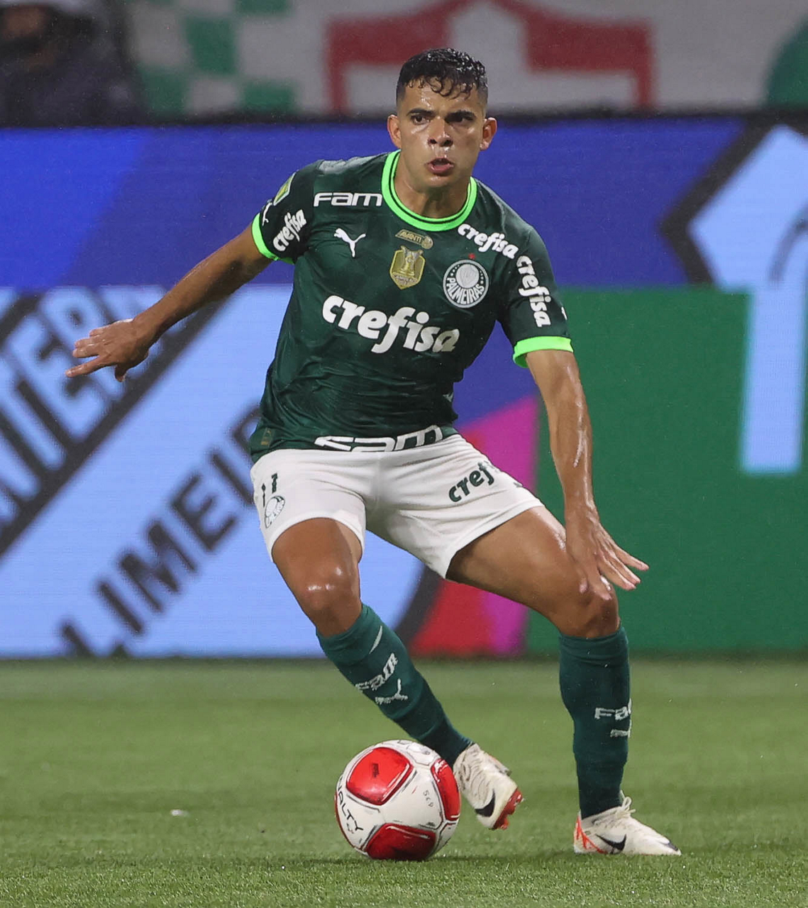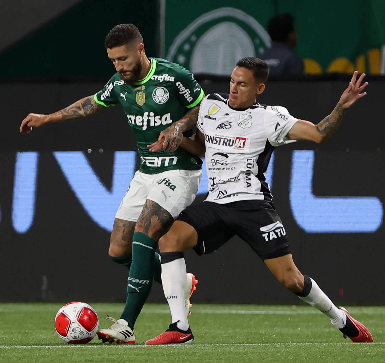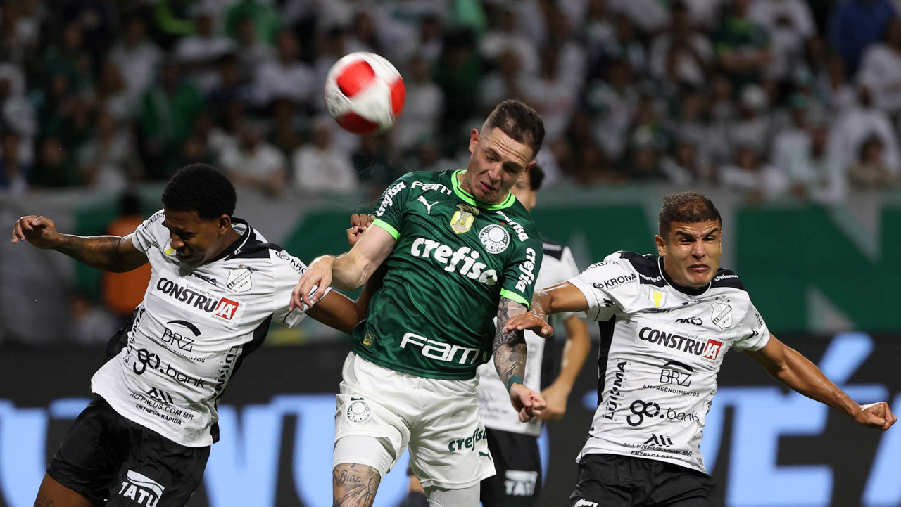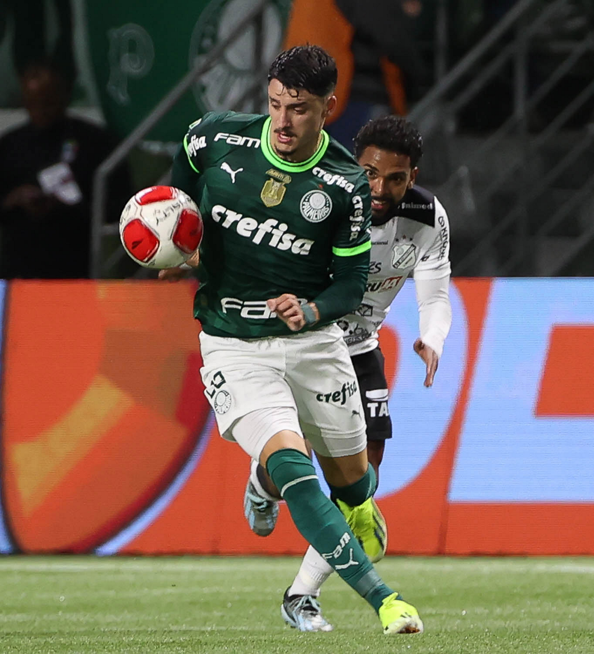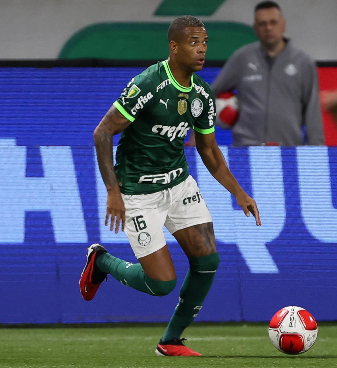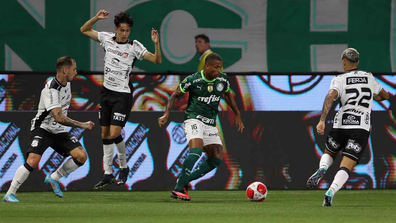 O técnico Abel Ferreira e o jogador Gustavo Gómez (D), da SE Palmeiras, em jogo contra a equipe da AA Internacional - Limeira, durante partida válida pela segunda rodada, do Campeonato Paulista, Série A1, na arena Allianz Parque. (Foto: Cesar Greco/Palmeiras/by Canon)