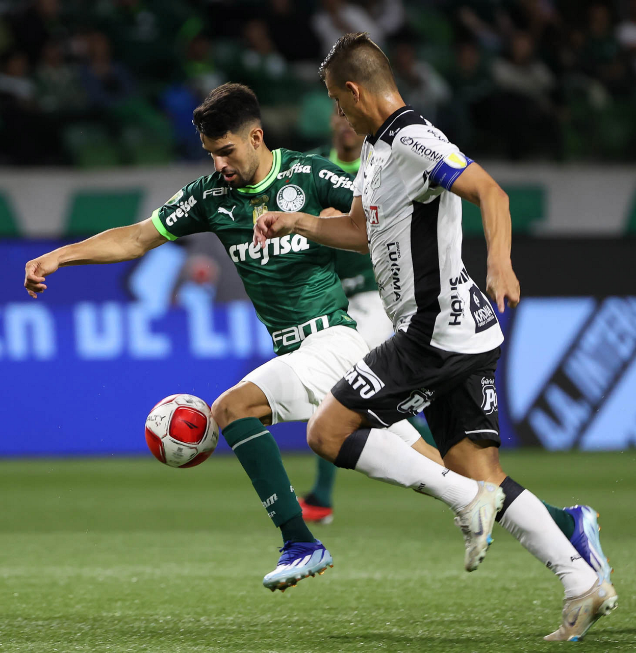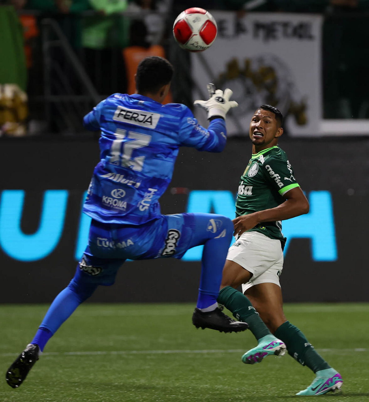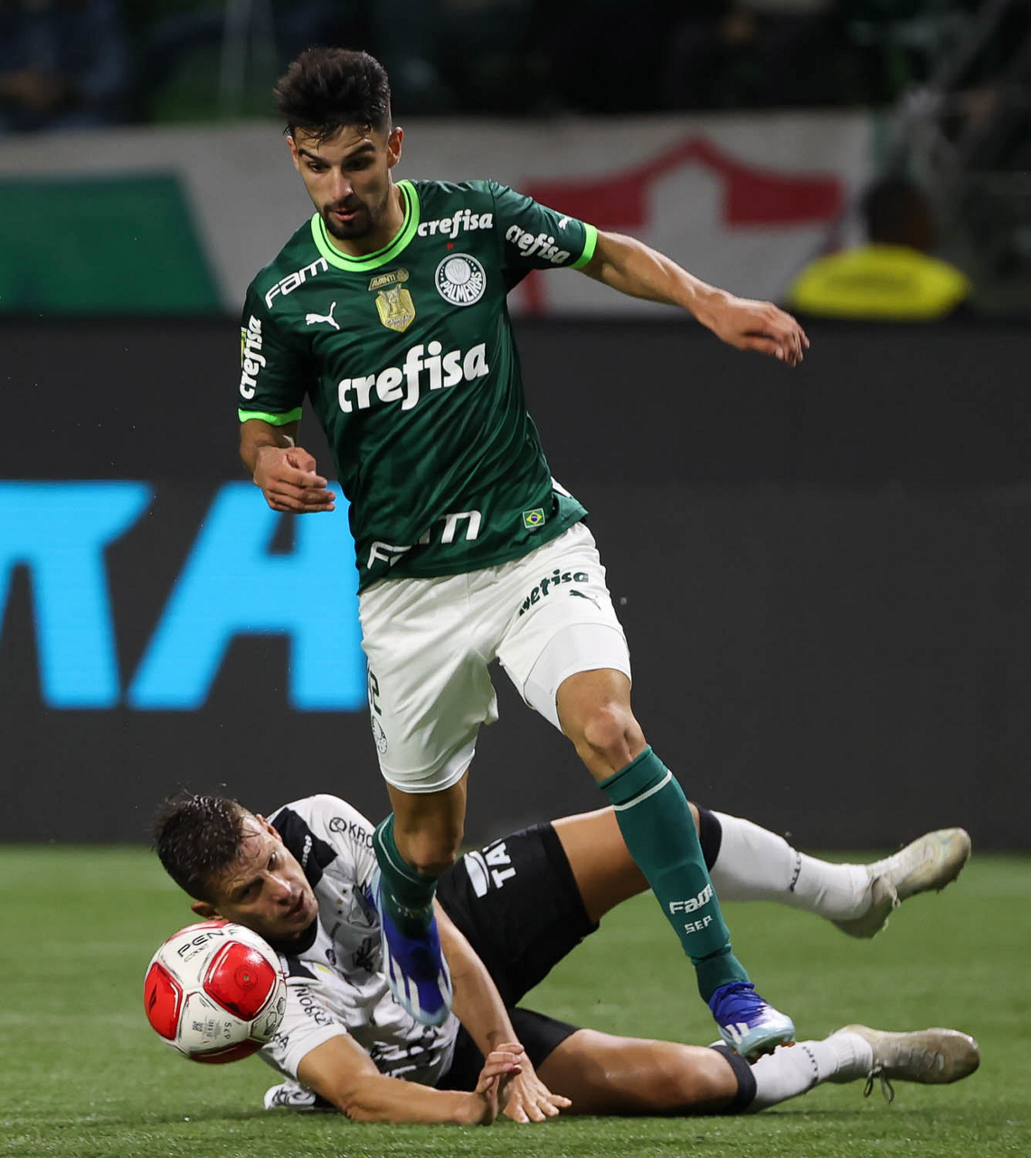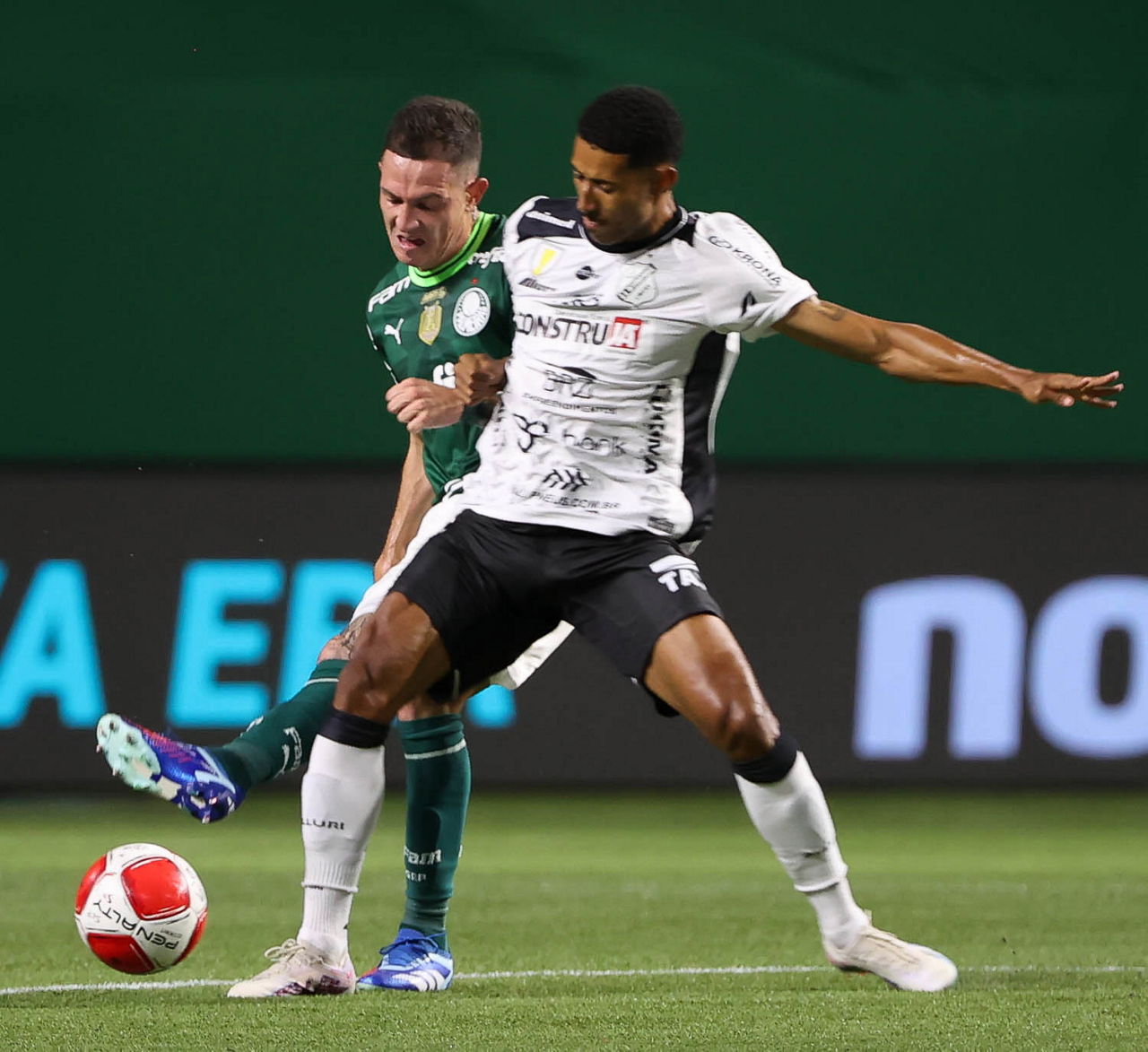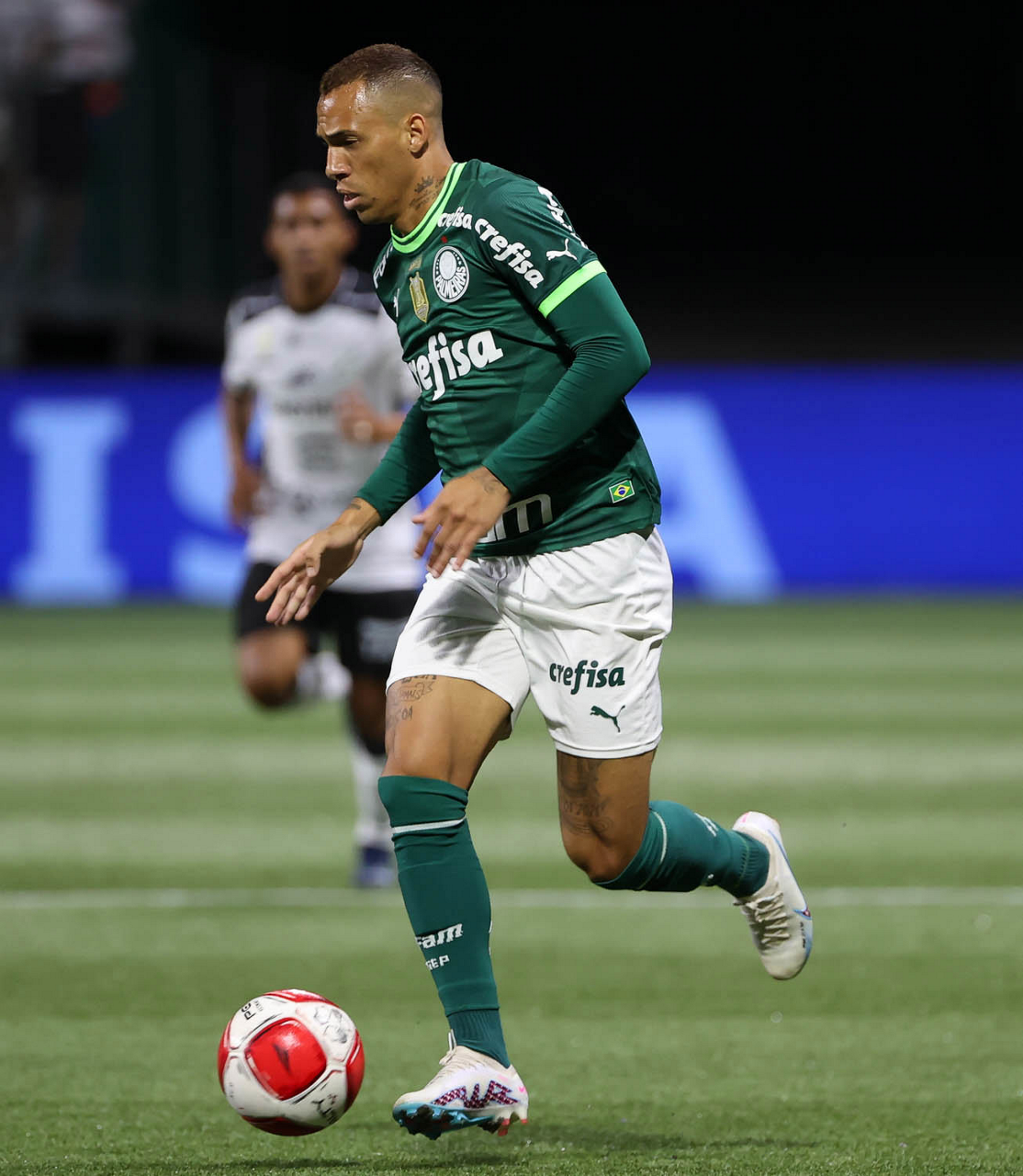 O técnico Abel Ferreira e o jogador Gustavo Gómez (D), da SE Palmeiras, em jogo contra a equipe da AA Internacional - Limeira, durante partida válida pela segunda rodada, do Campeonato Paulista, Série A1, na arena Allianz Parque. (Foto: Cesar Greco/Palmeiras/by Canon)