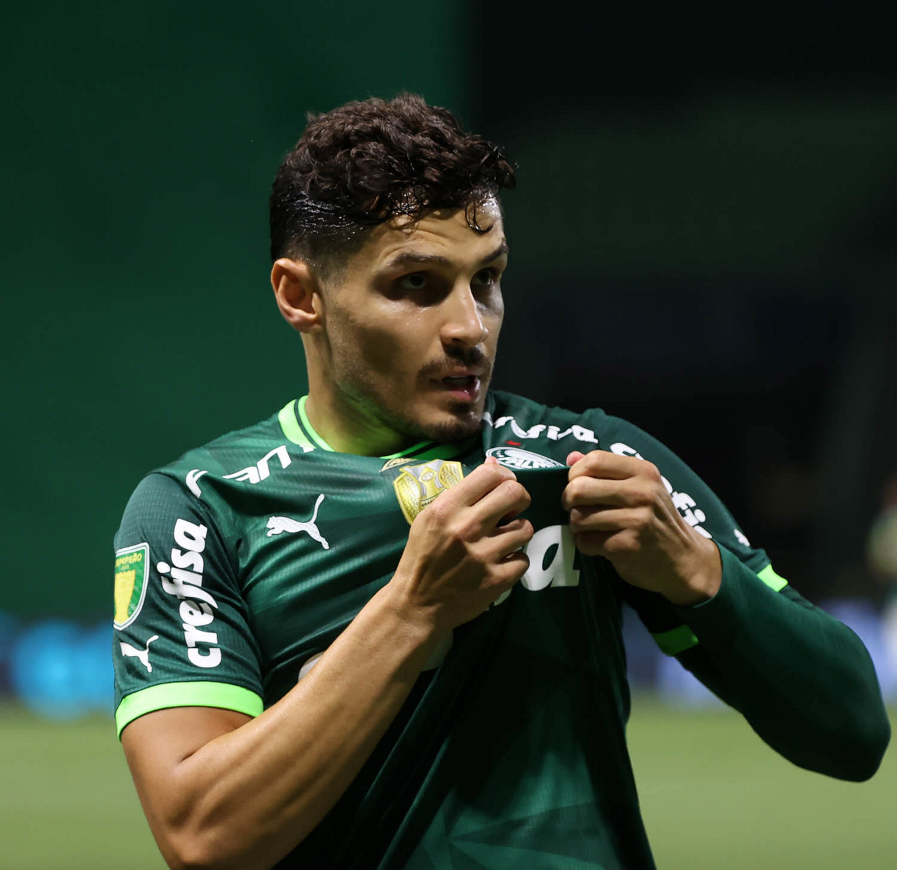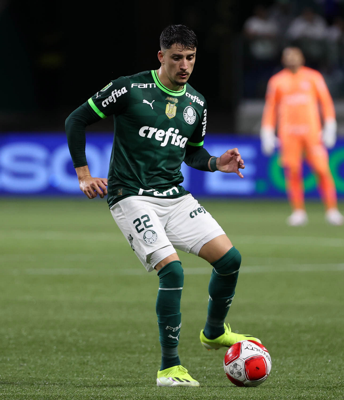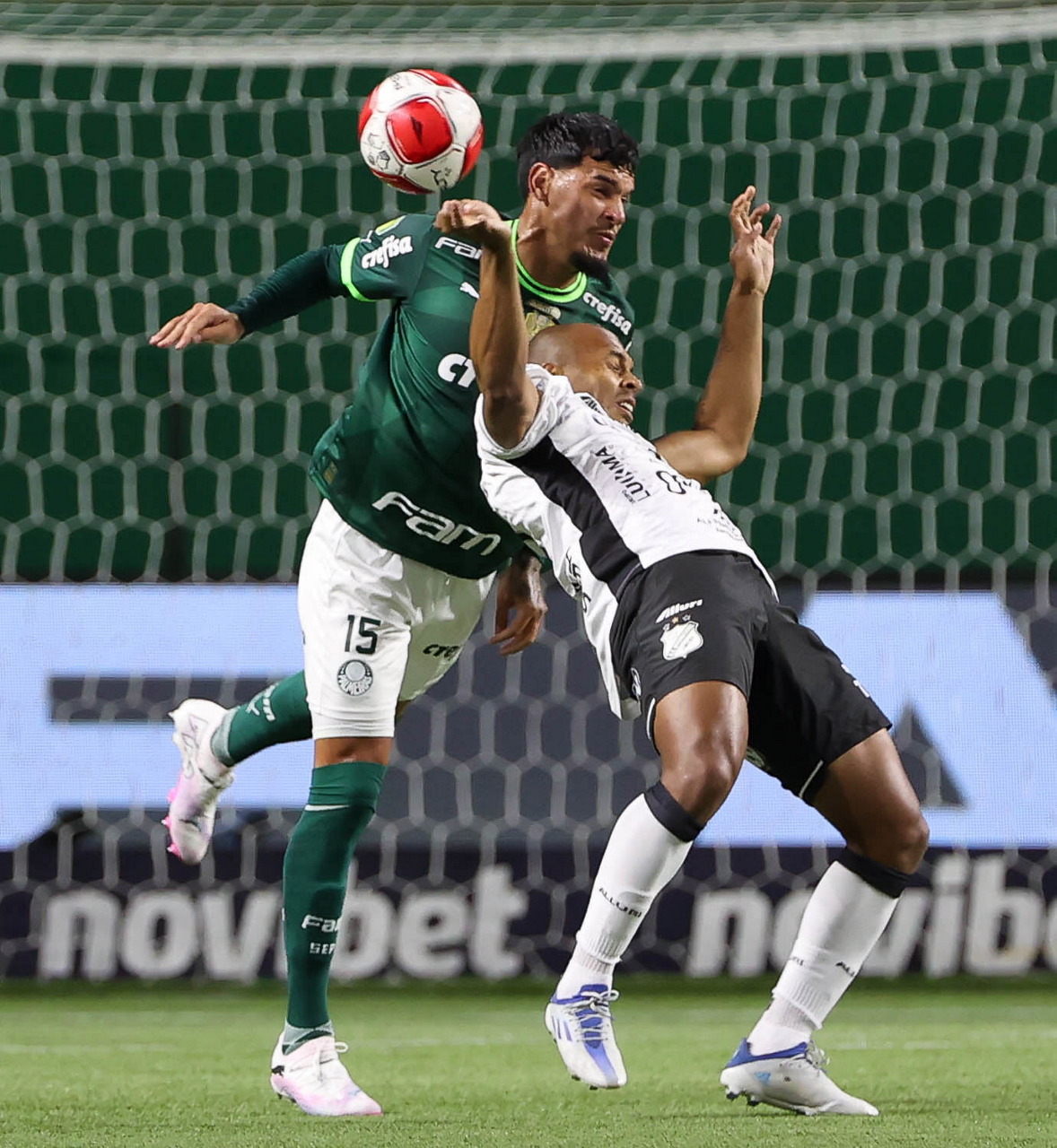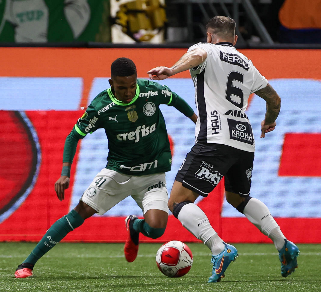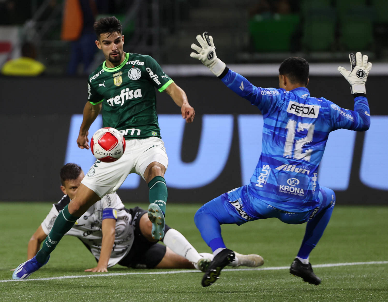 O técnico Abel Ferreira e o jogador Gustavo Gómez (D), da SE Palmeiras, em jogo contra a equipe da AA Internacional - Limeira, durante partida válida pela segunda rodada, do Campeonato Paulista, Série A1, na arena Allianz Parque. (Foto: Cesar Greco/Palmeiras/by Canon)