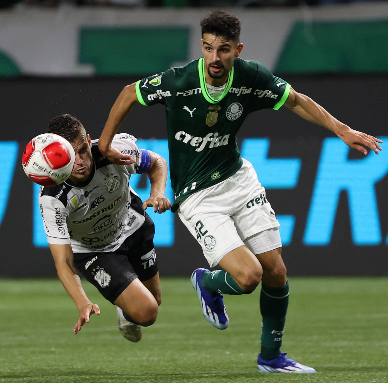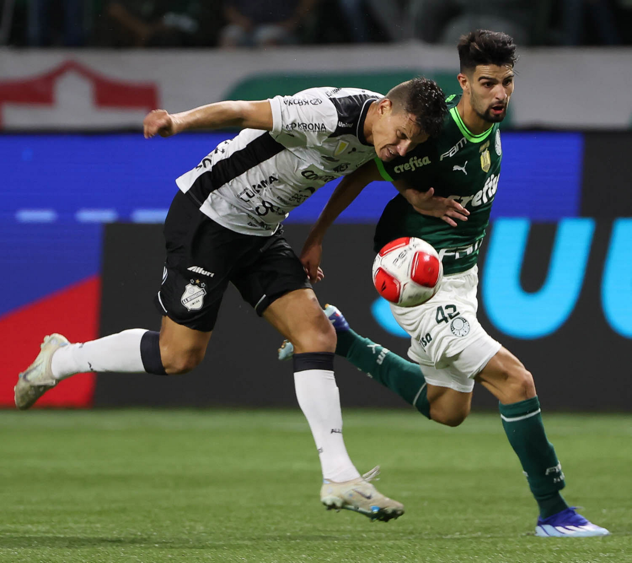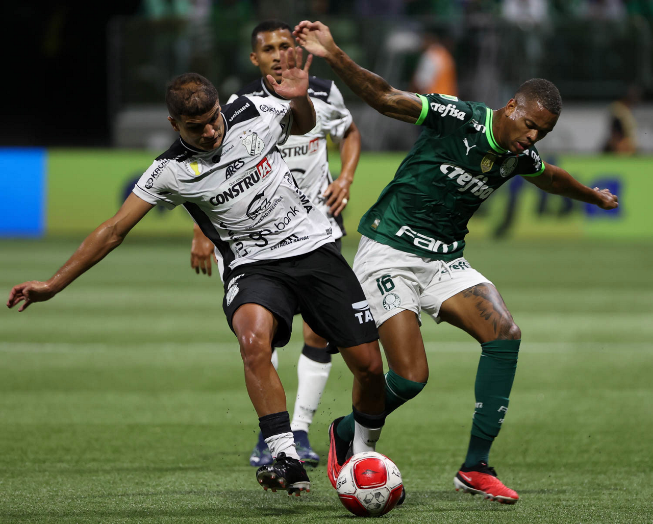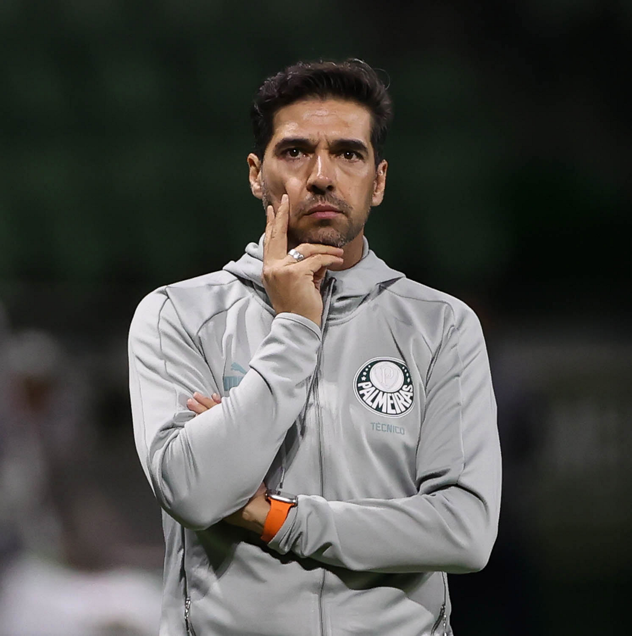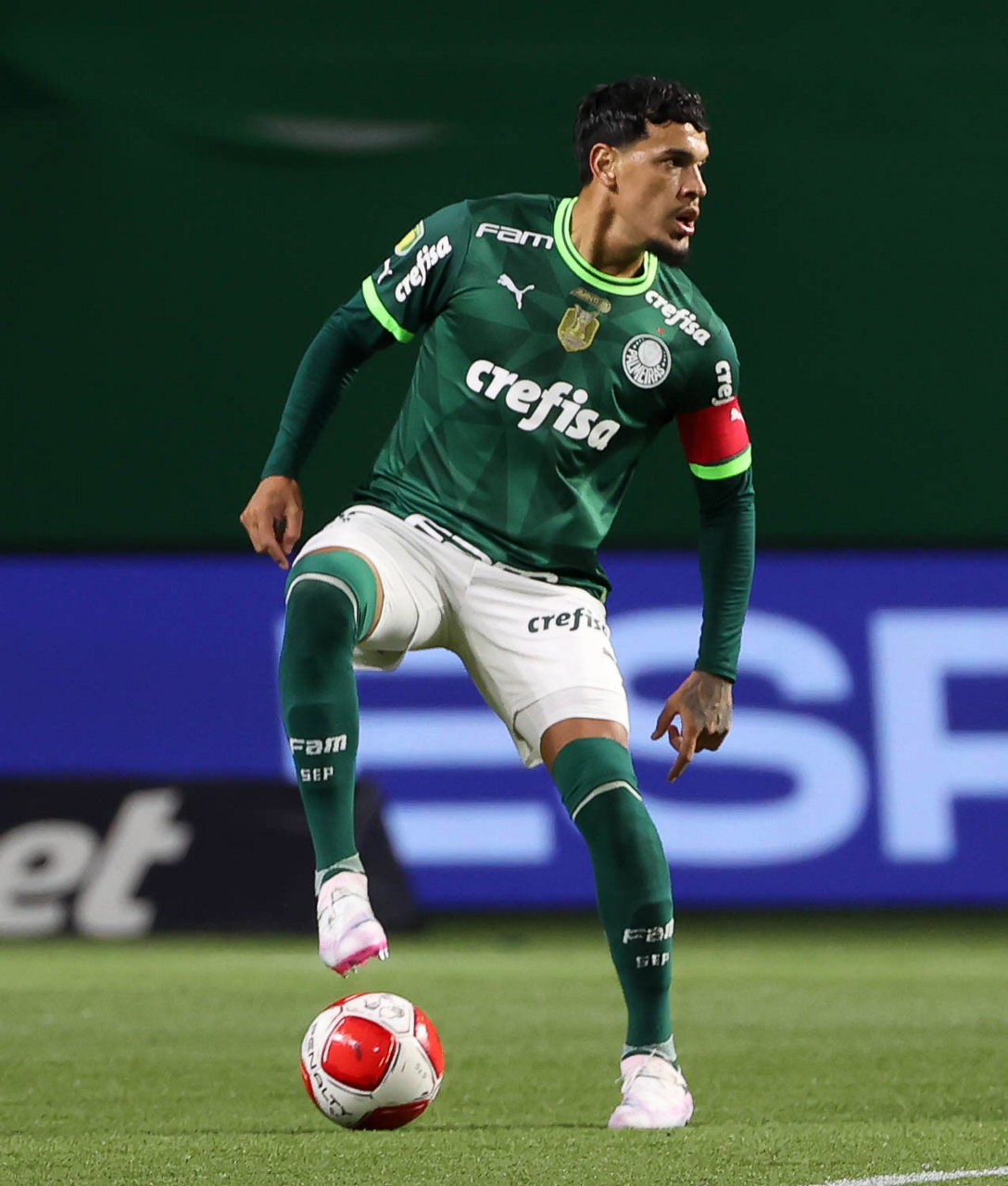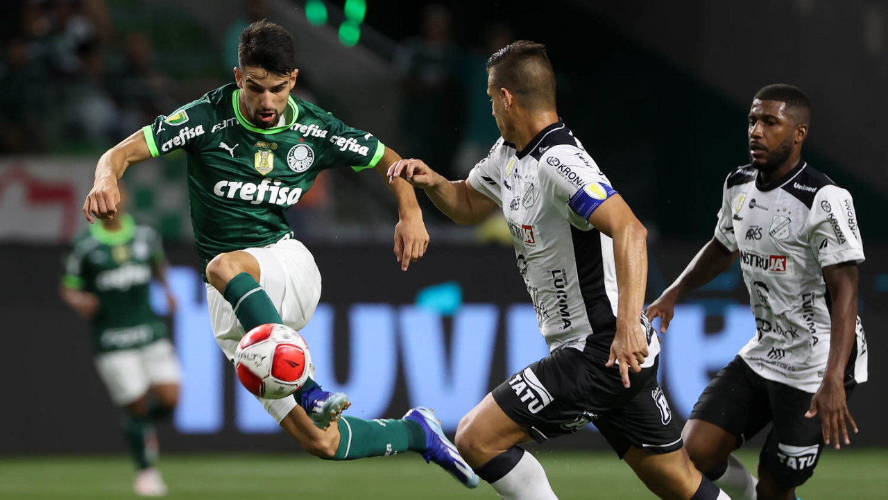 O técnico Abel Ferreira e o jogador Gustavo Gómez (D), da SE Palmeiras, em jogo contra a equipe da AA Internacional - Limeira, durante partida válida pela segunda rodada, do Campeonato Paulista, Série A1, na arena Allianz Parque. (Foto: Cesar Greco/Palmeiras/by Canon)