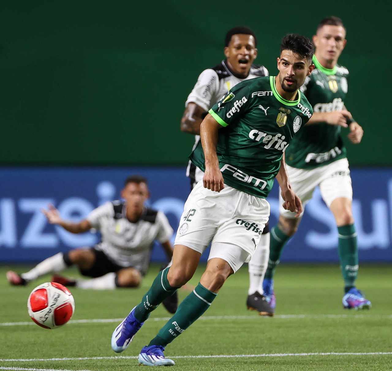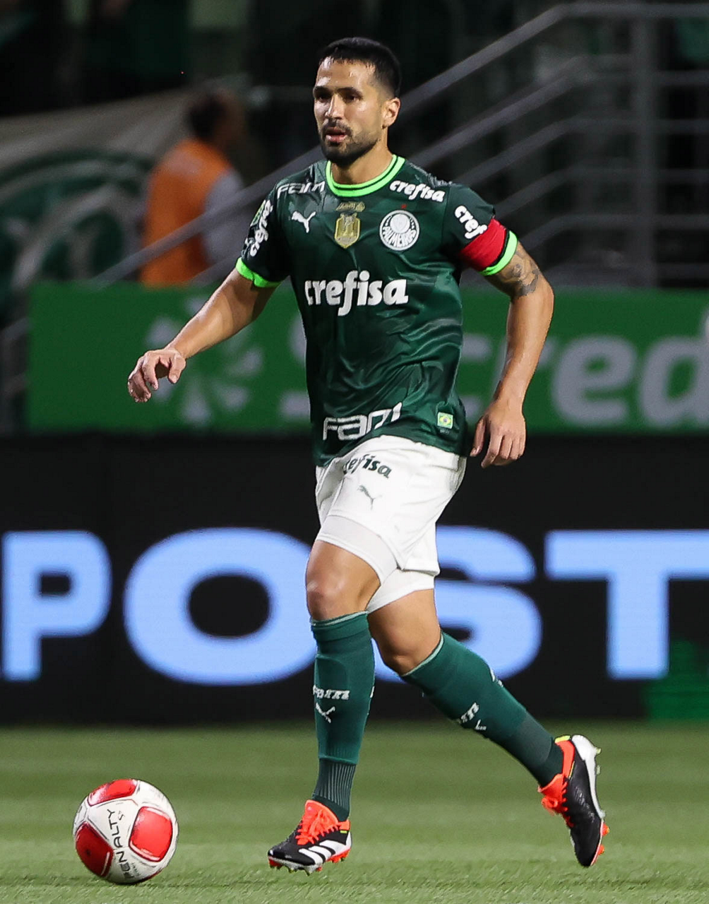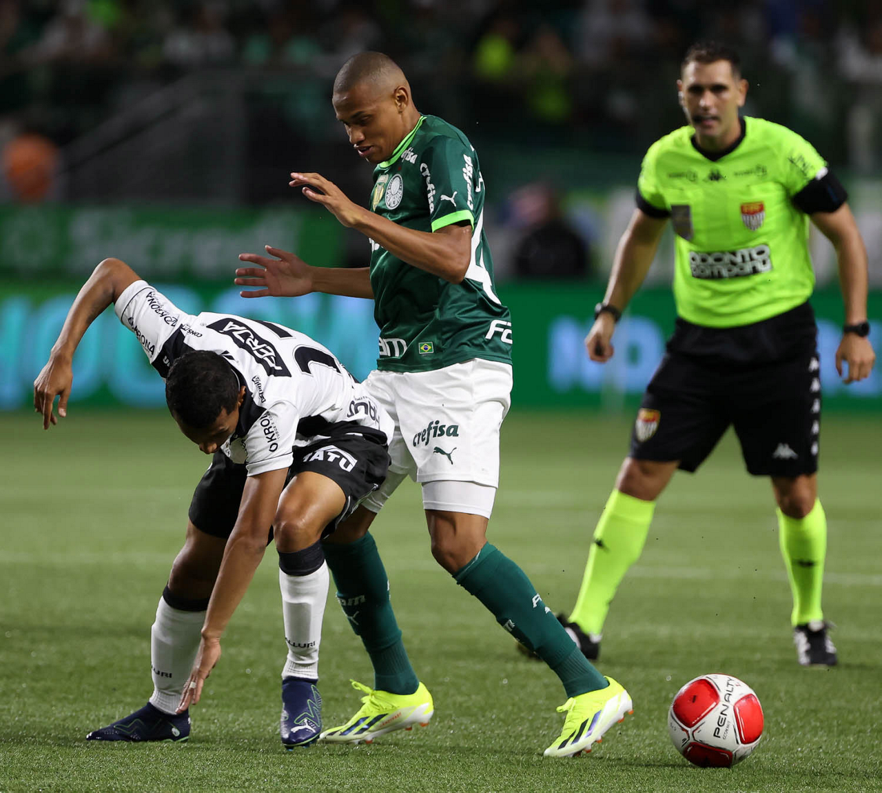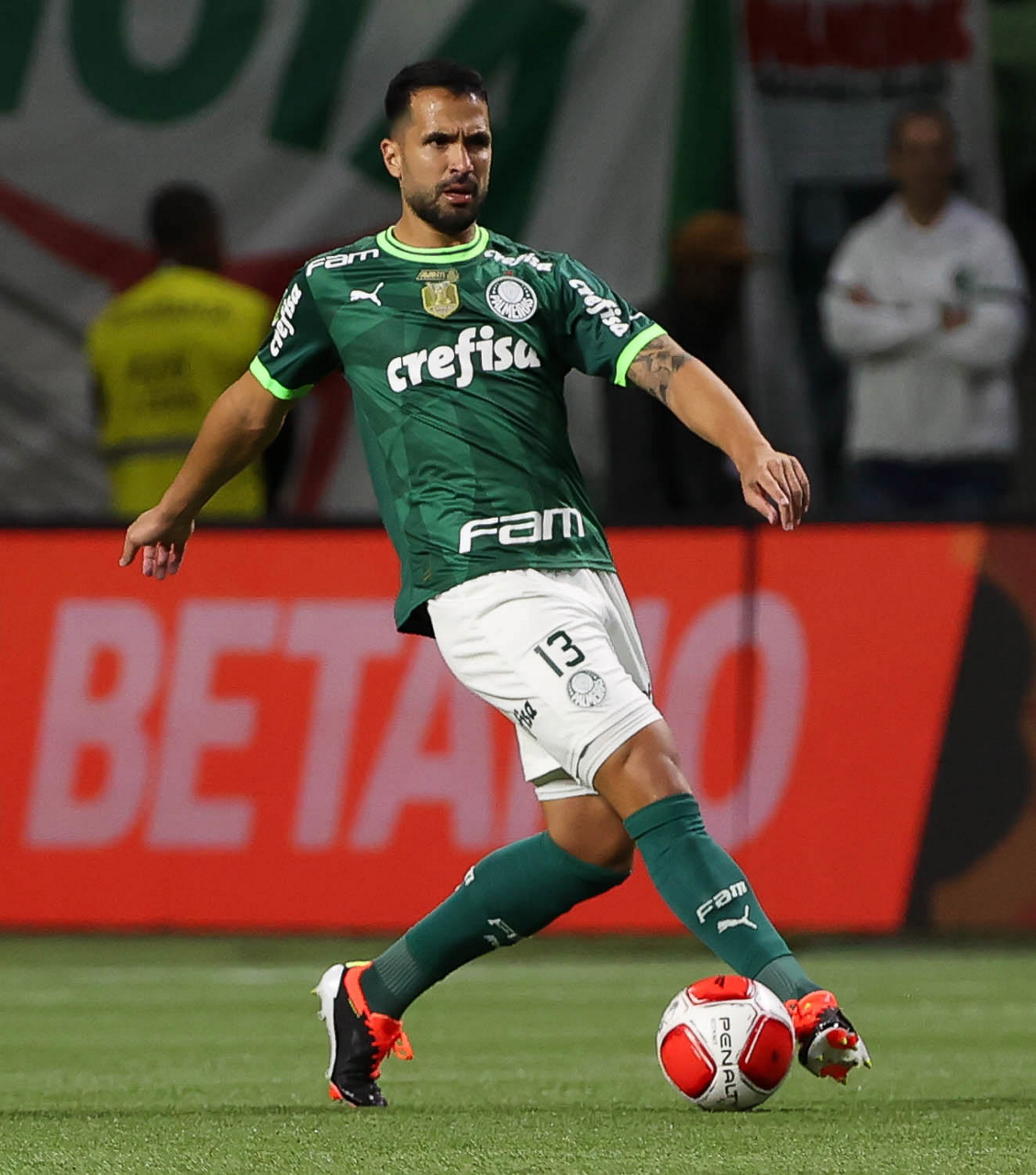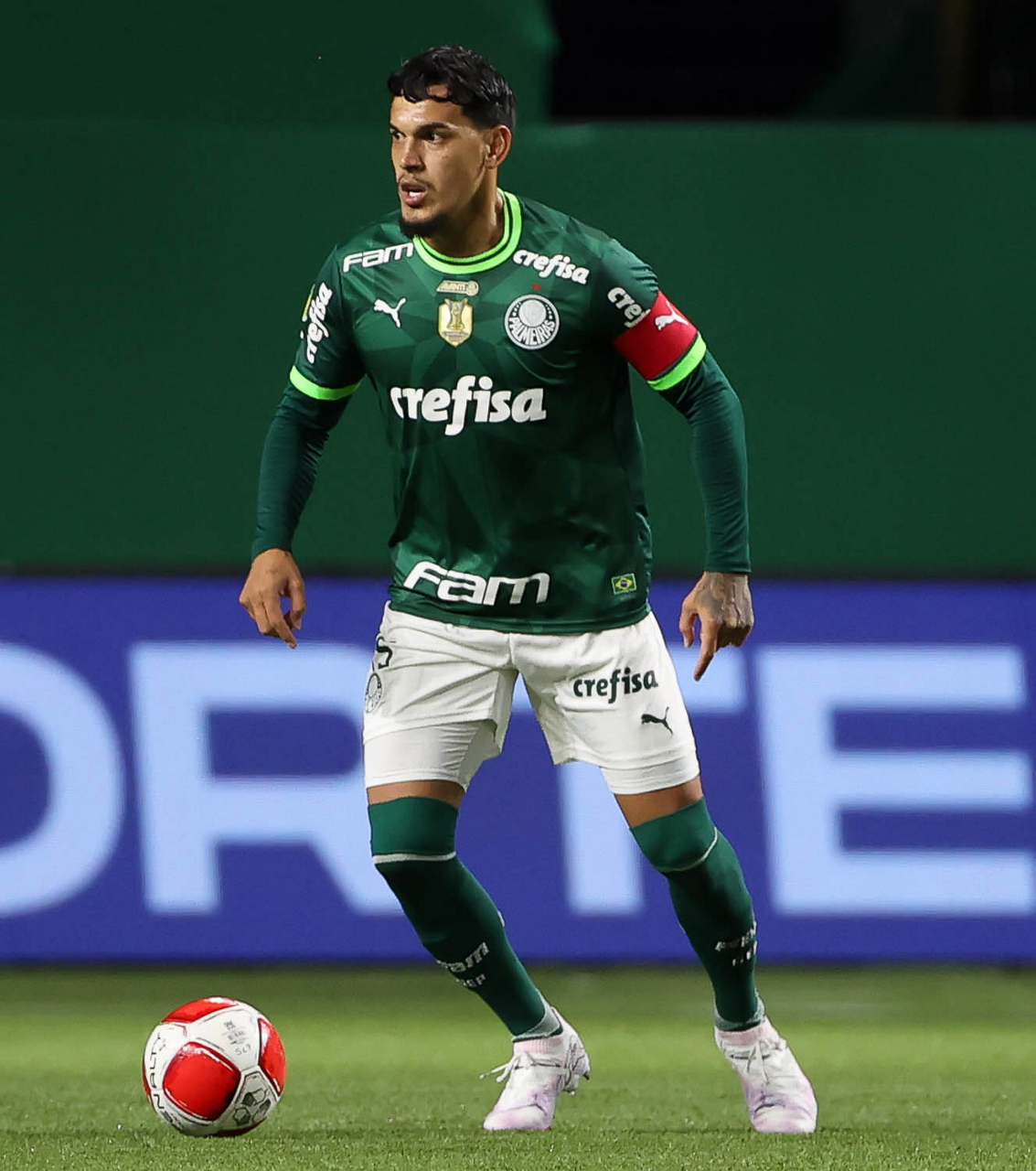 O técnico Abel Ferreira e o jogador Gustavo Gómez (D), da SE Palmeiras, em jogo contra a equipe da AA Internacional - Limeira, durante partida válida pela segunda rodada, do Campeonato Paulista, Série A1, na arena Allianz Parque. (Foto: Cesar Greco/Palmeiras/by Canon)