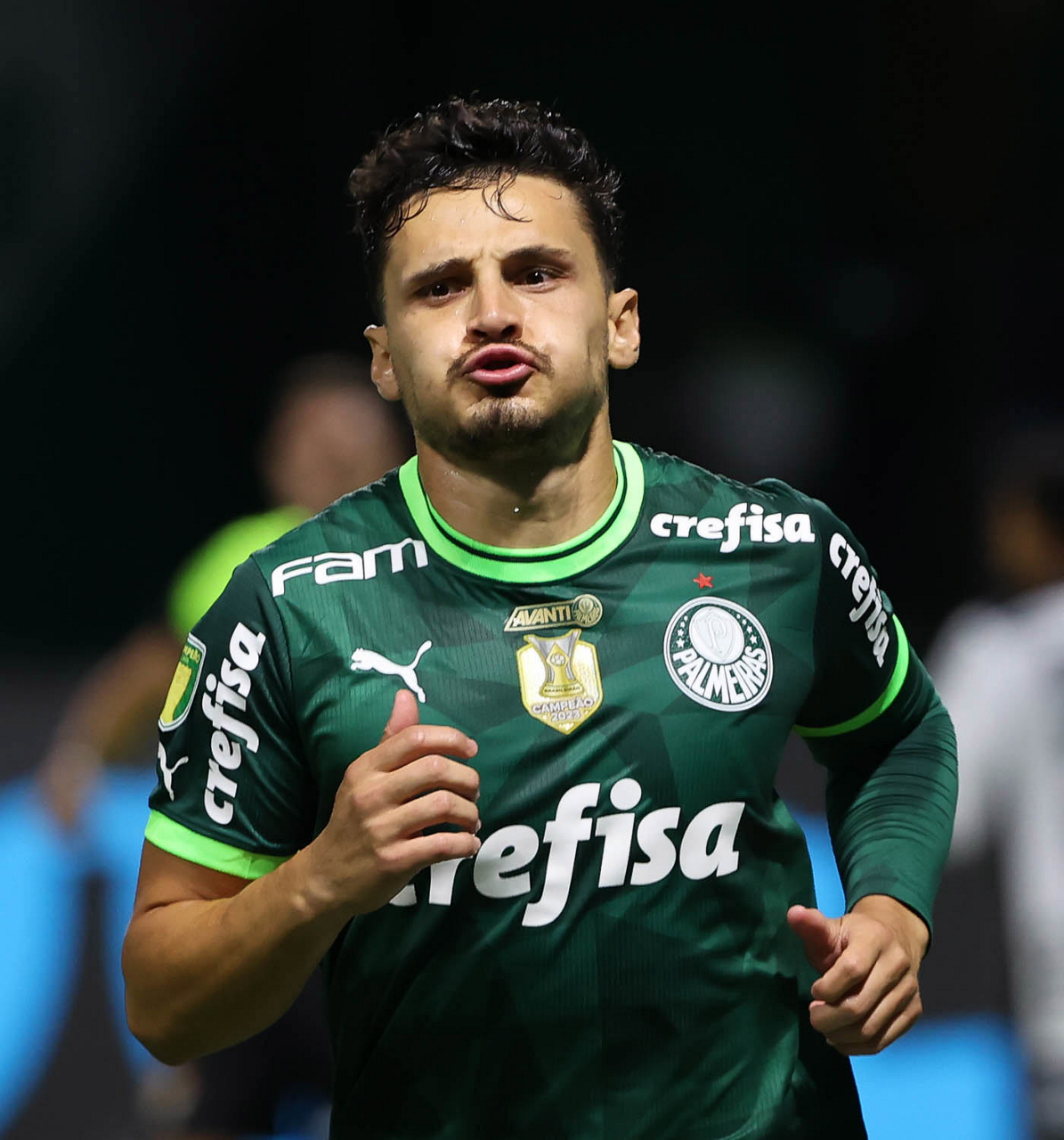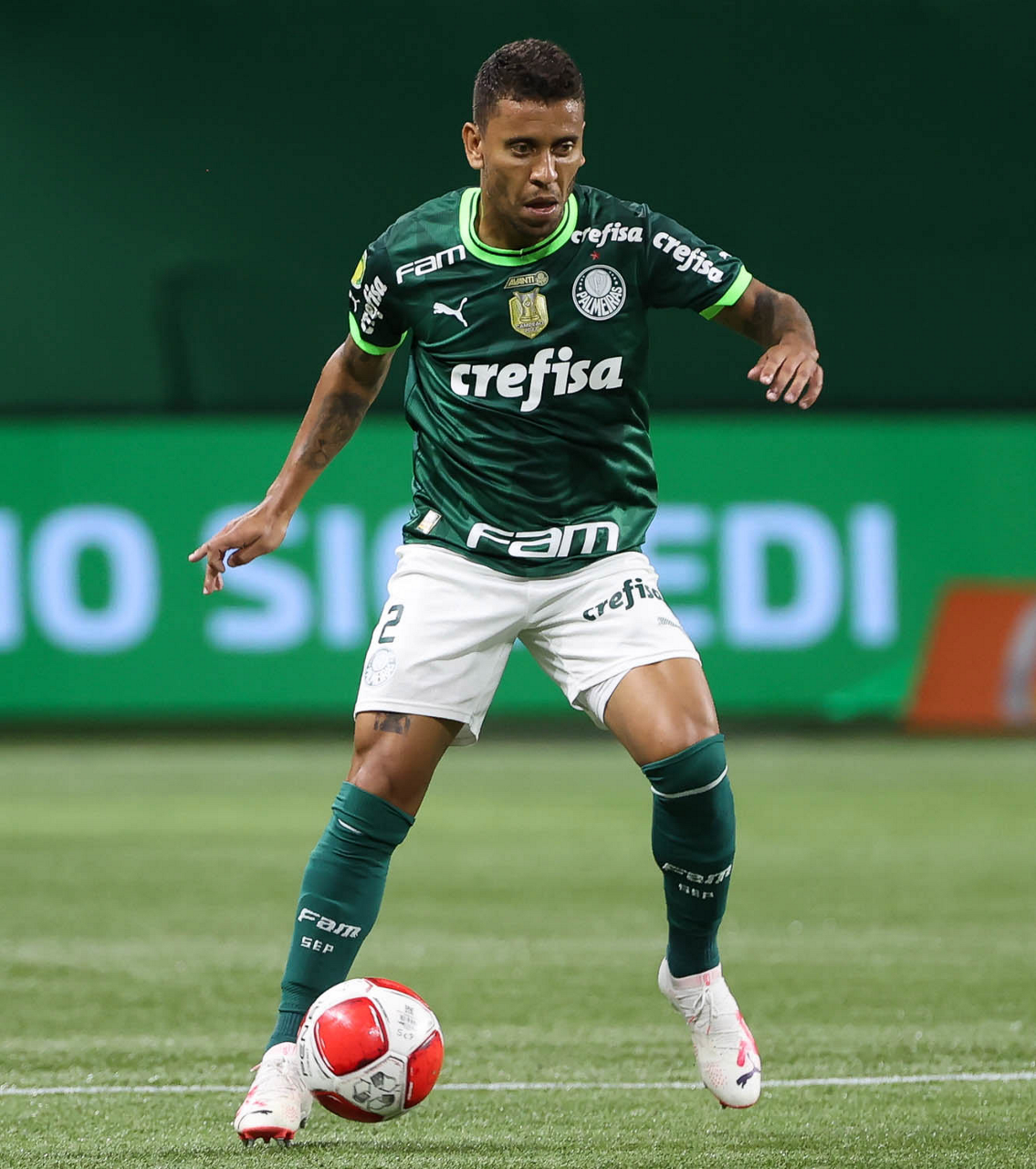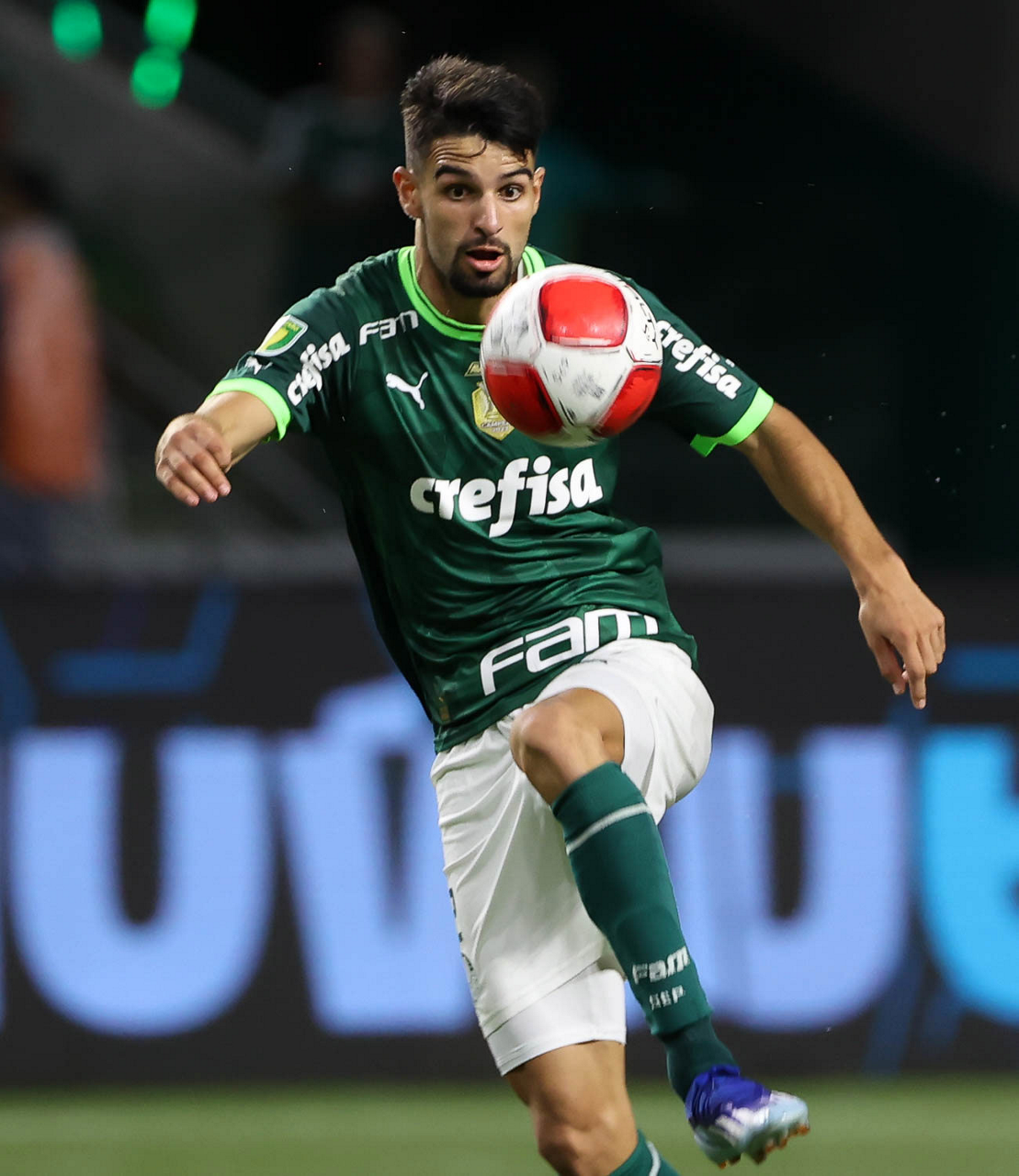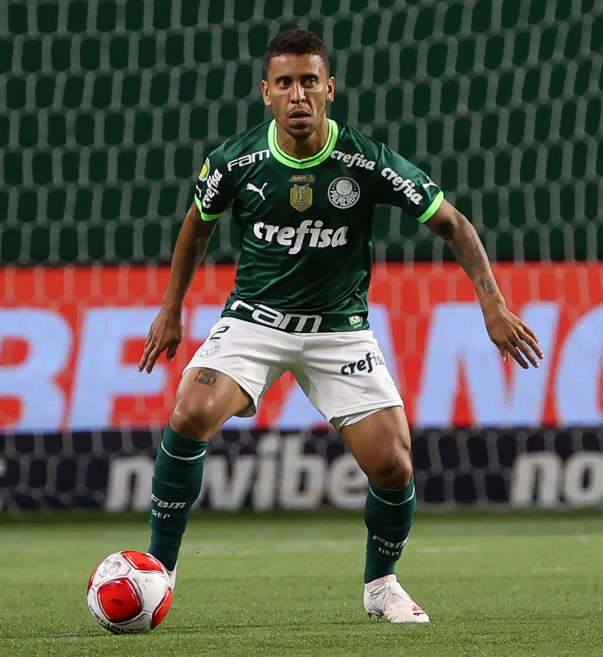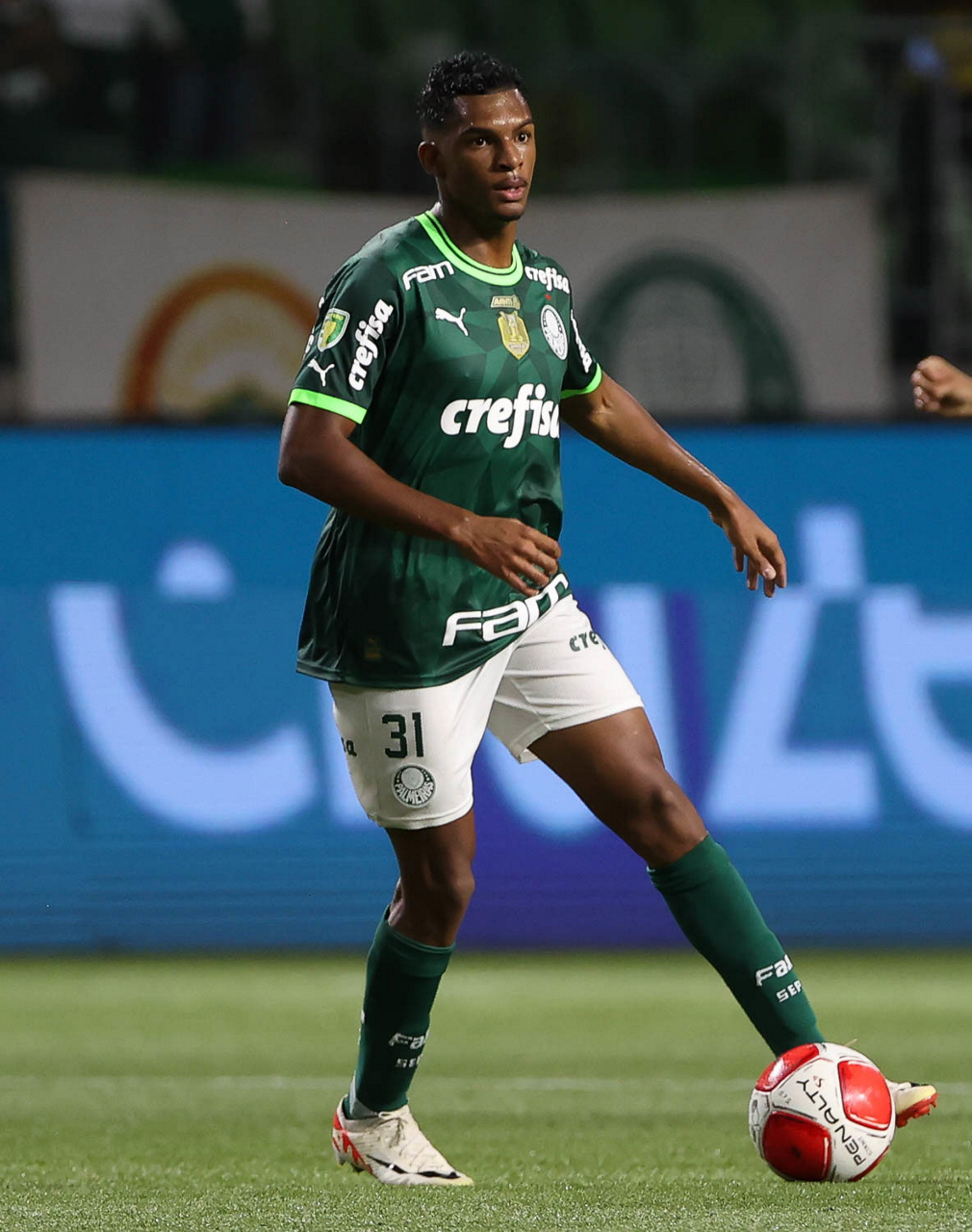 O técnico Abel Ferreira e o jogador Gustavo Gómez (D), da SE Palmeiras, em jogo contra a equipe da AA Internacional - Limeira, durante partida válida pela segunda rodada, do Campeonato Paulista, Série A1, na arena Allianz Parque. (Foto: Cesar Greco/Palmeiras/by Canon)