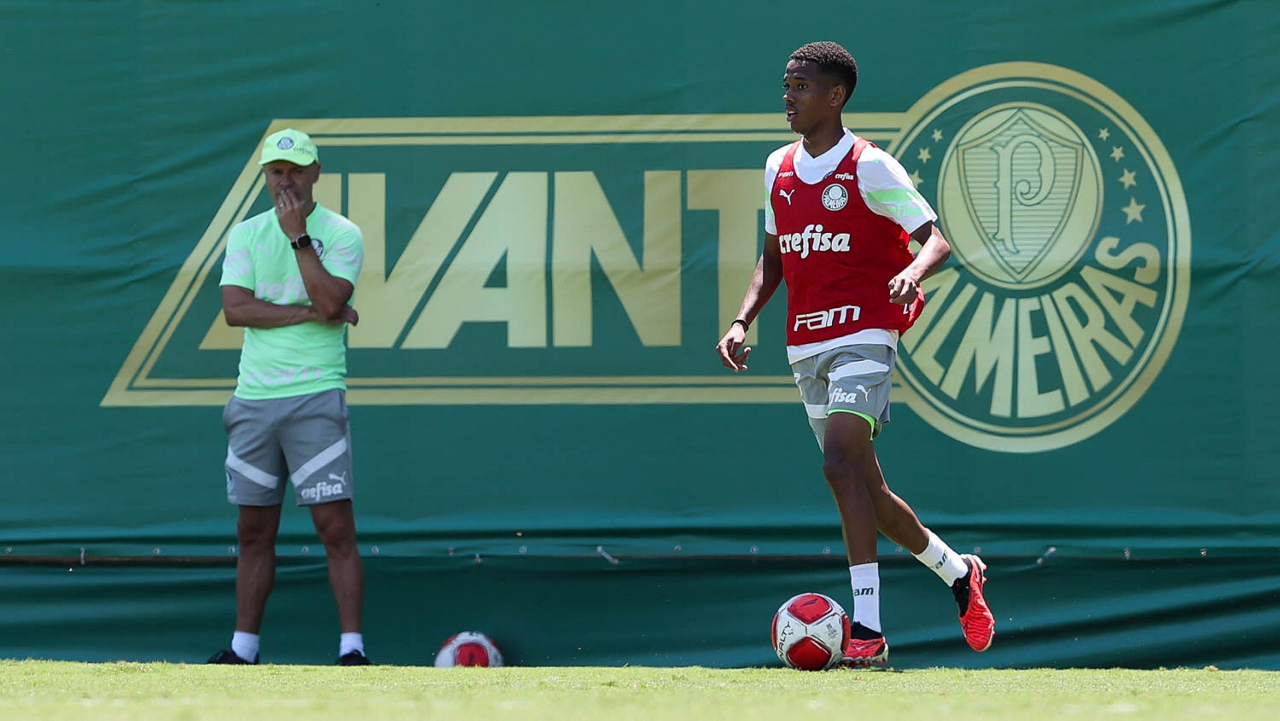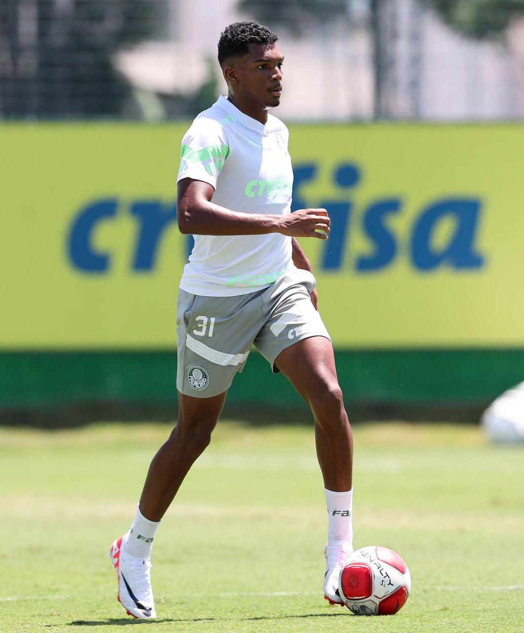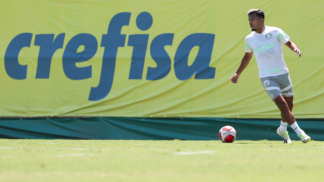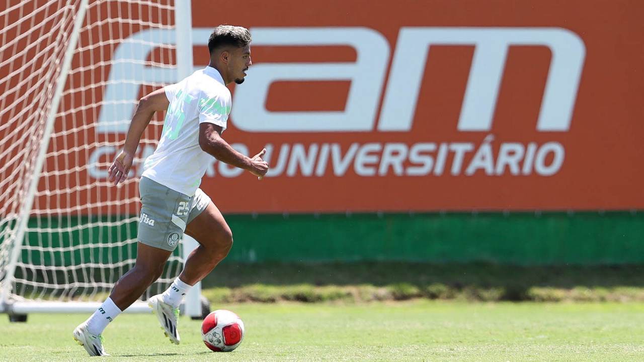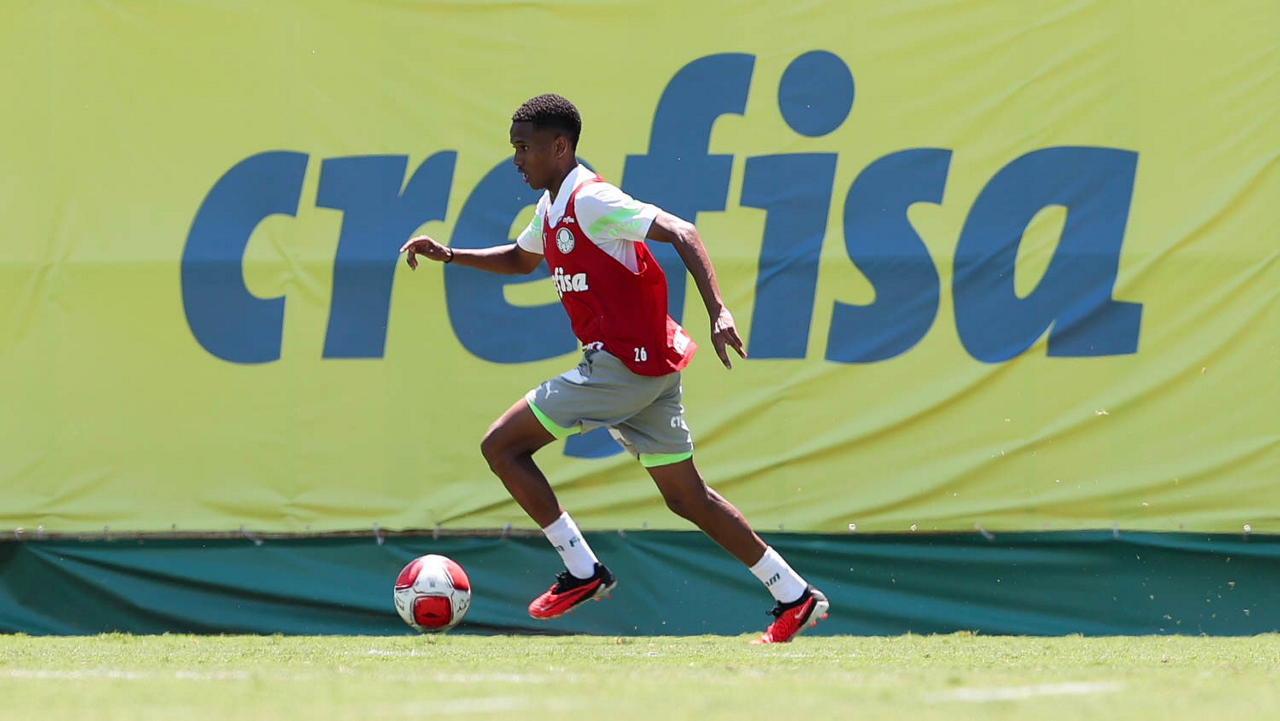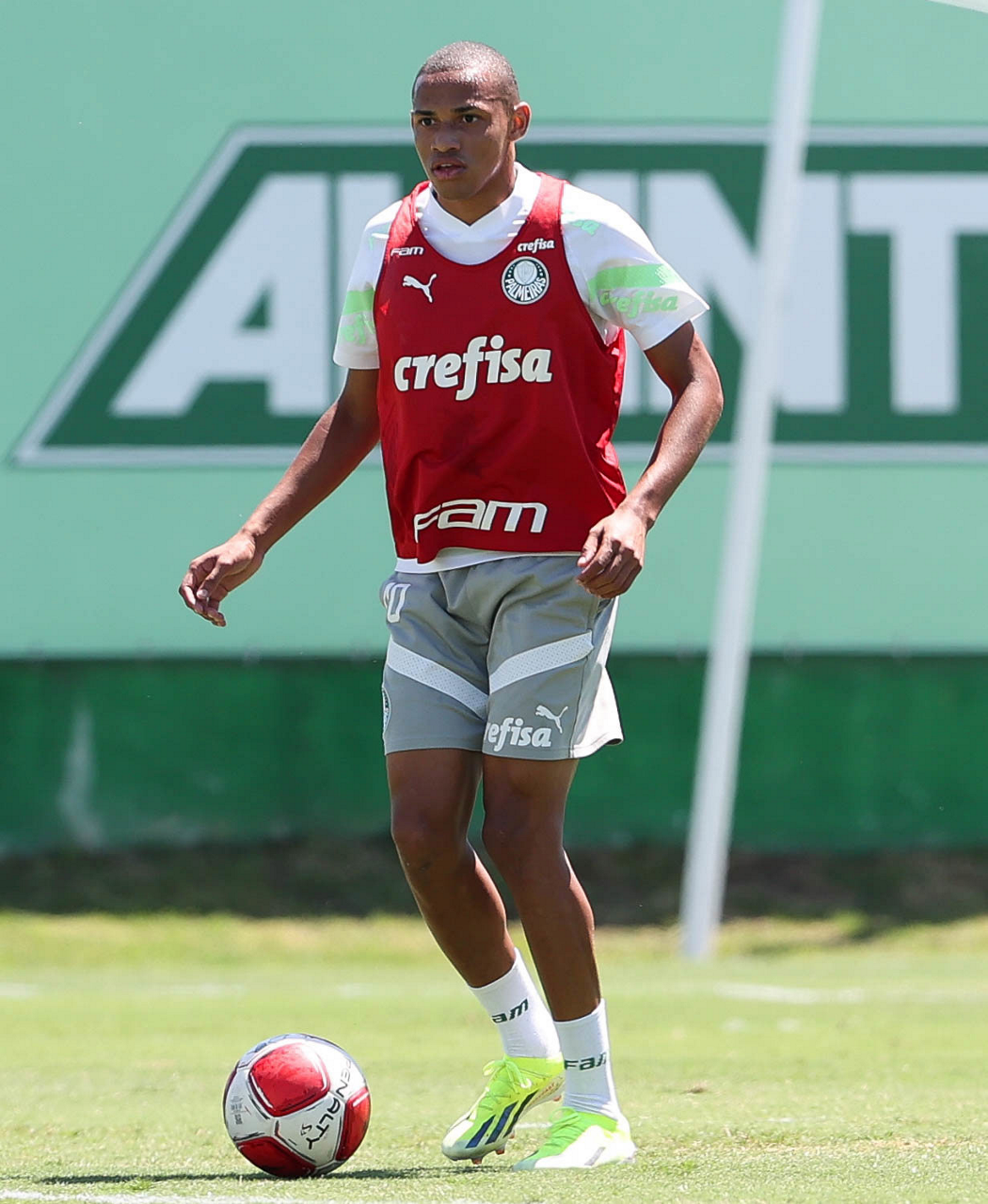 O jogador Gabriel Menino, da SE Palmeiras, durante treinamento, na Academia de Futebol. (Foto: Cesar Greco/Palmeiras/by Canon)