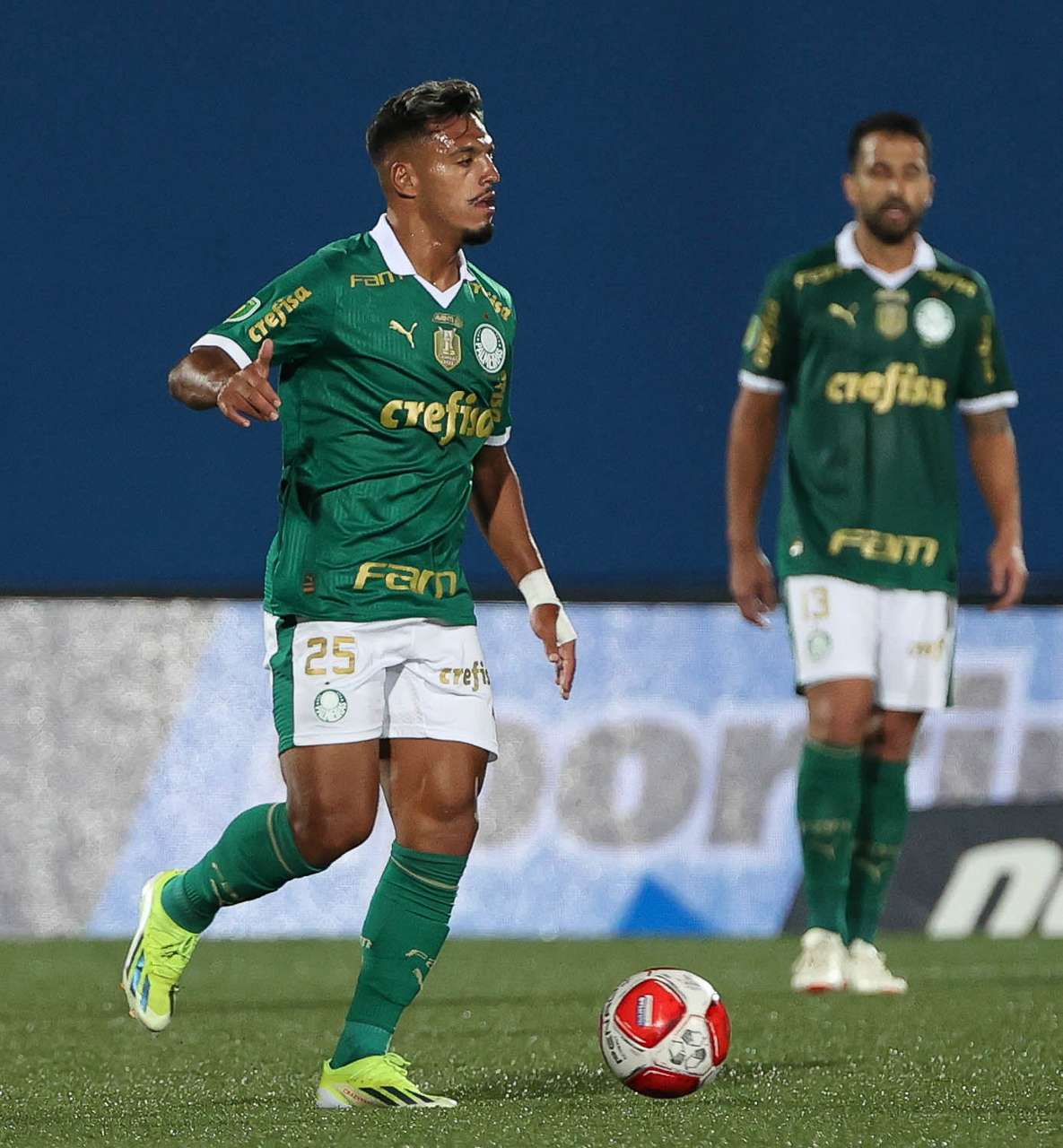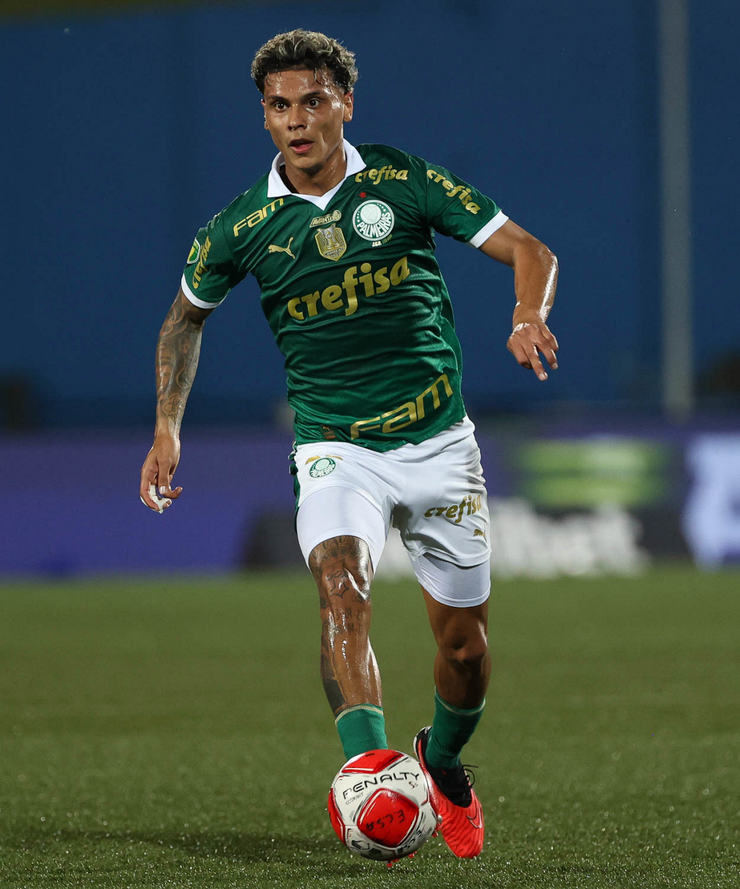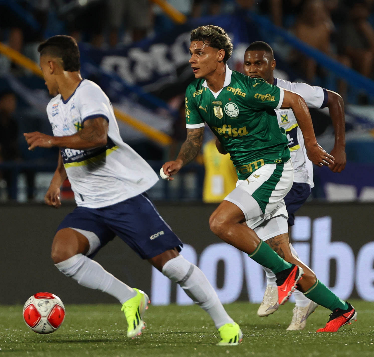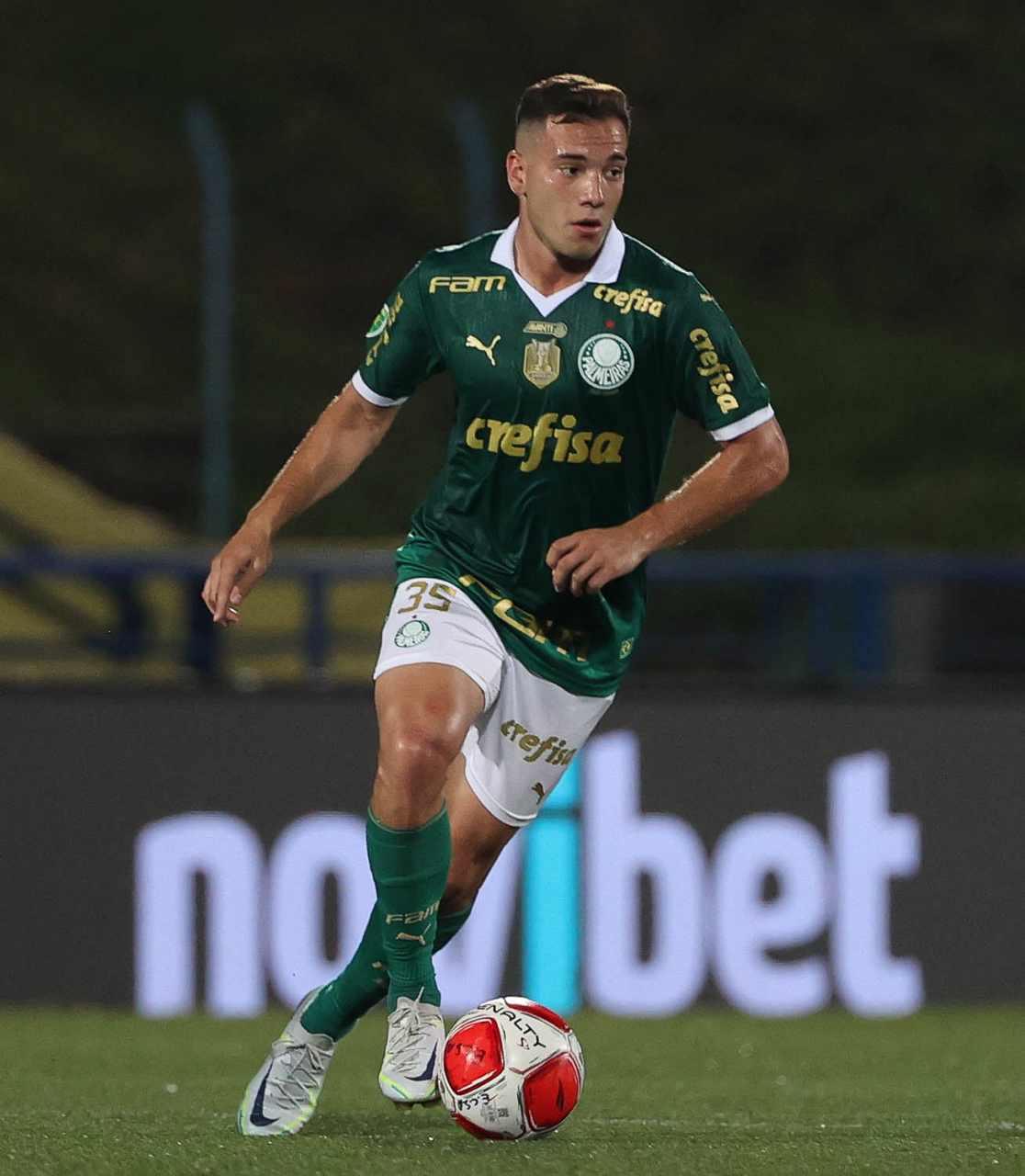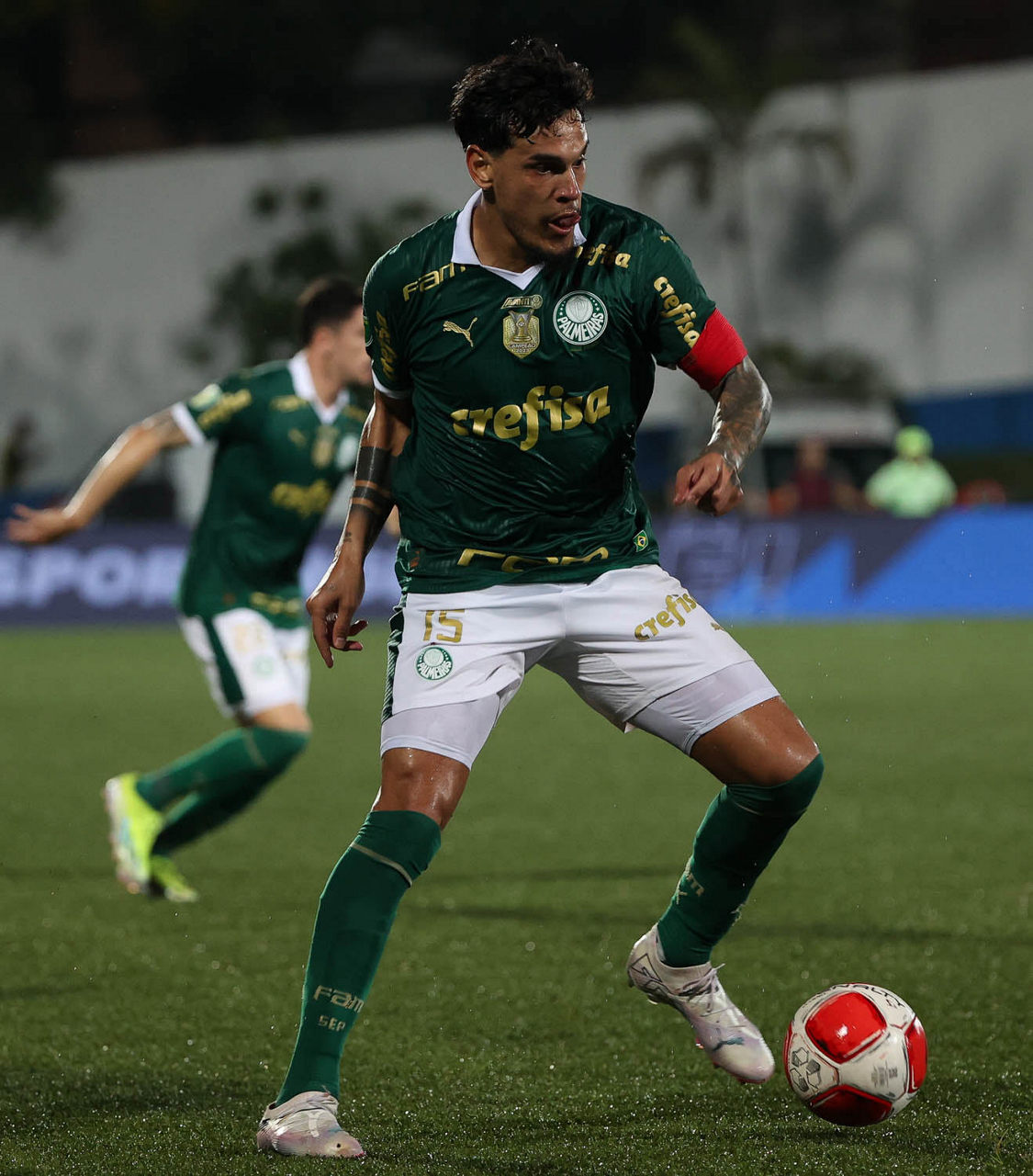 O jogador Richard Ríos, da SE Palmeiras, em jogo contra a equipe do EC Santo André, durante partida válida pela quinta rodada, do Campeonato Paulista, Série A1, no Estádio Bruno José Daniel. (Foto: Cesar Greco/Palmeiras/by Canon)