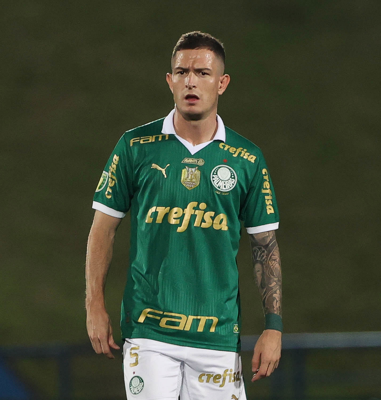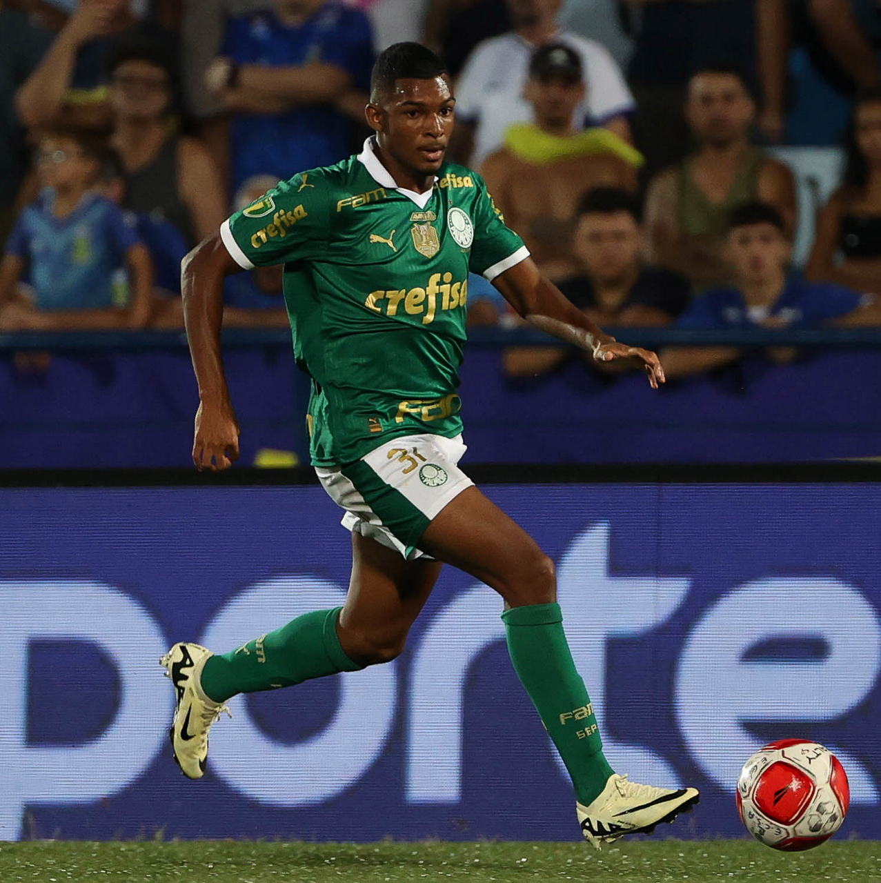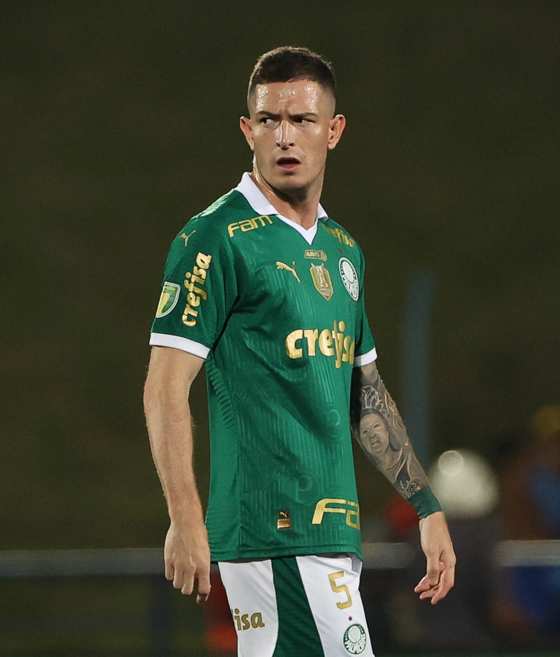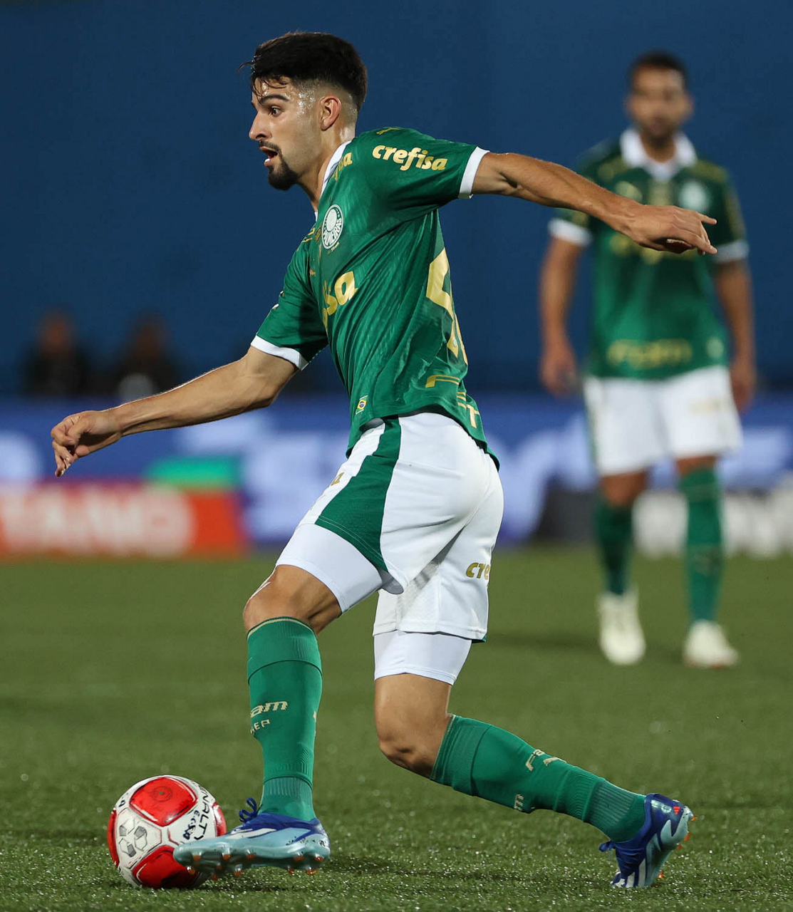 O jogador Richard Ríos, da SE Palmeiras, em jogo contra a equipe do EC Santo André, durante partida válida pela quinta rodada, do Campeonato Paulista, Série A1, no Estádio Bruno José Daniel. (Foto: Cesar Greco/Palmeiras/by Canon)