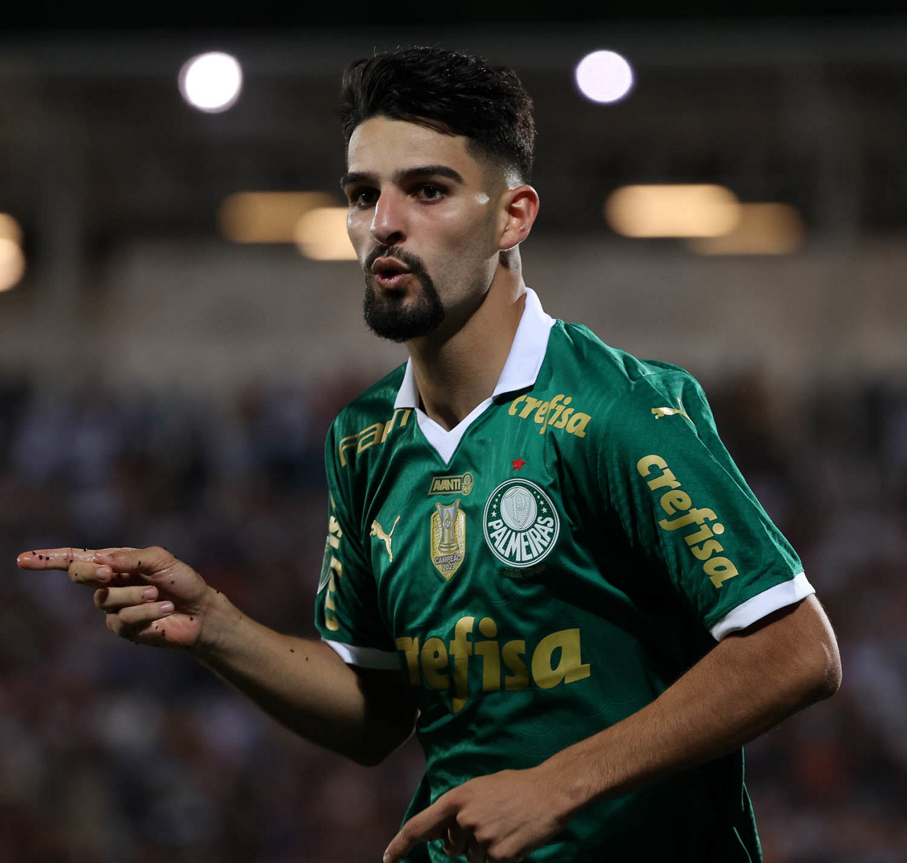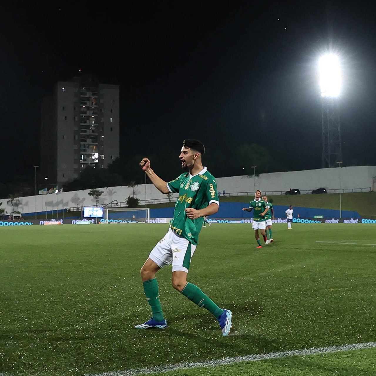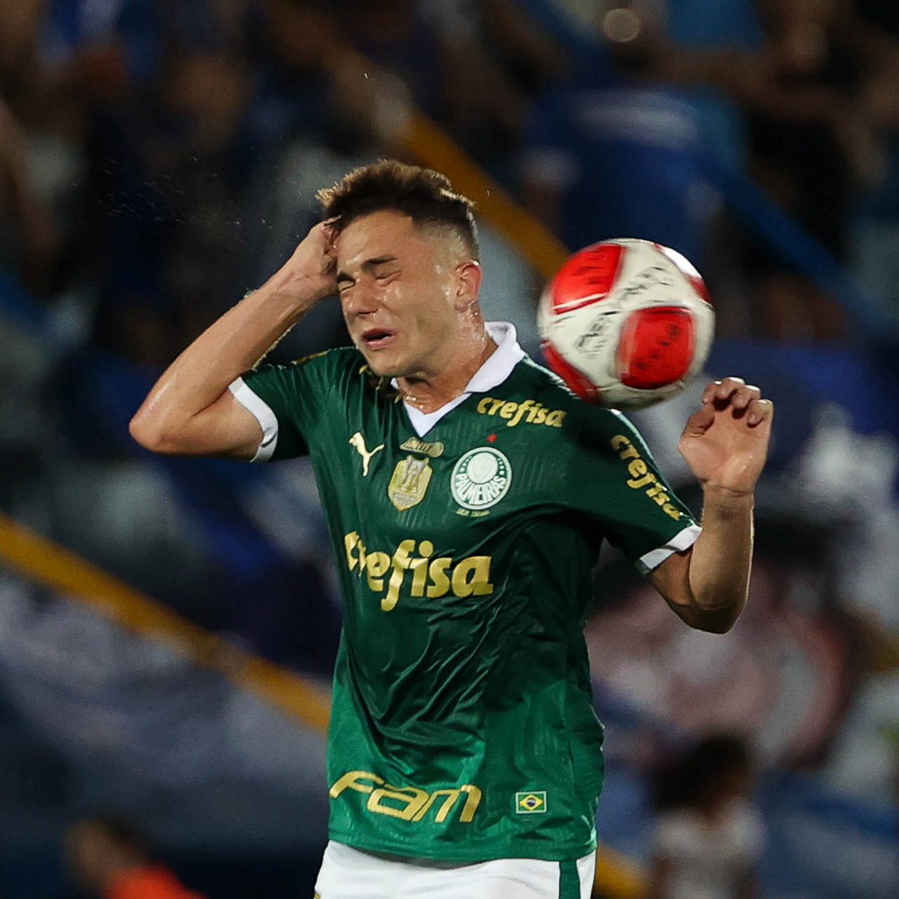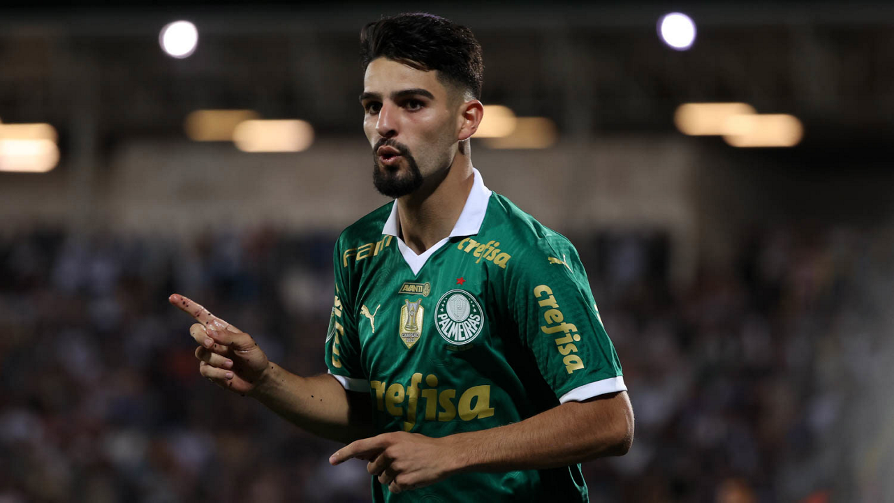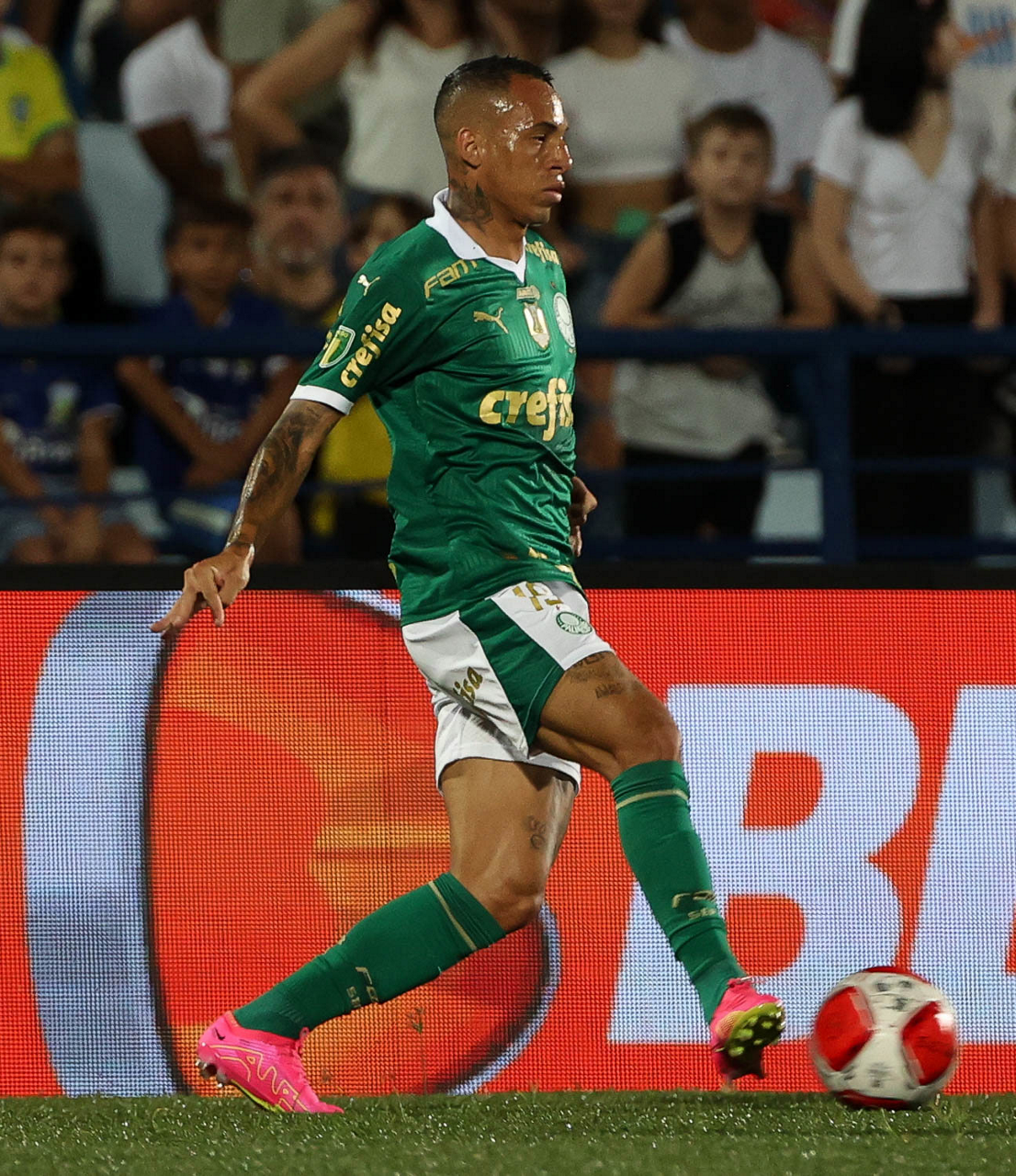 O jogador Richard Ríos, da SE Palmeiras, em jogo contra a equipe do EC Santo André, durante partida válida pela quinta rodada, do Campeonato Paulista, Série A1, no Estádio Bruno José Daniel. (Foto: Cesar Greco/Palmeiras/by Canon)
