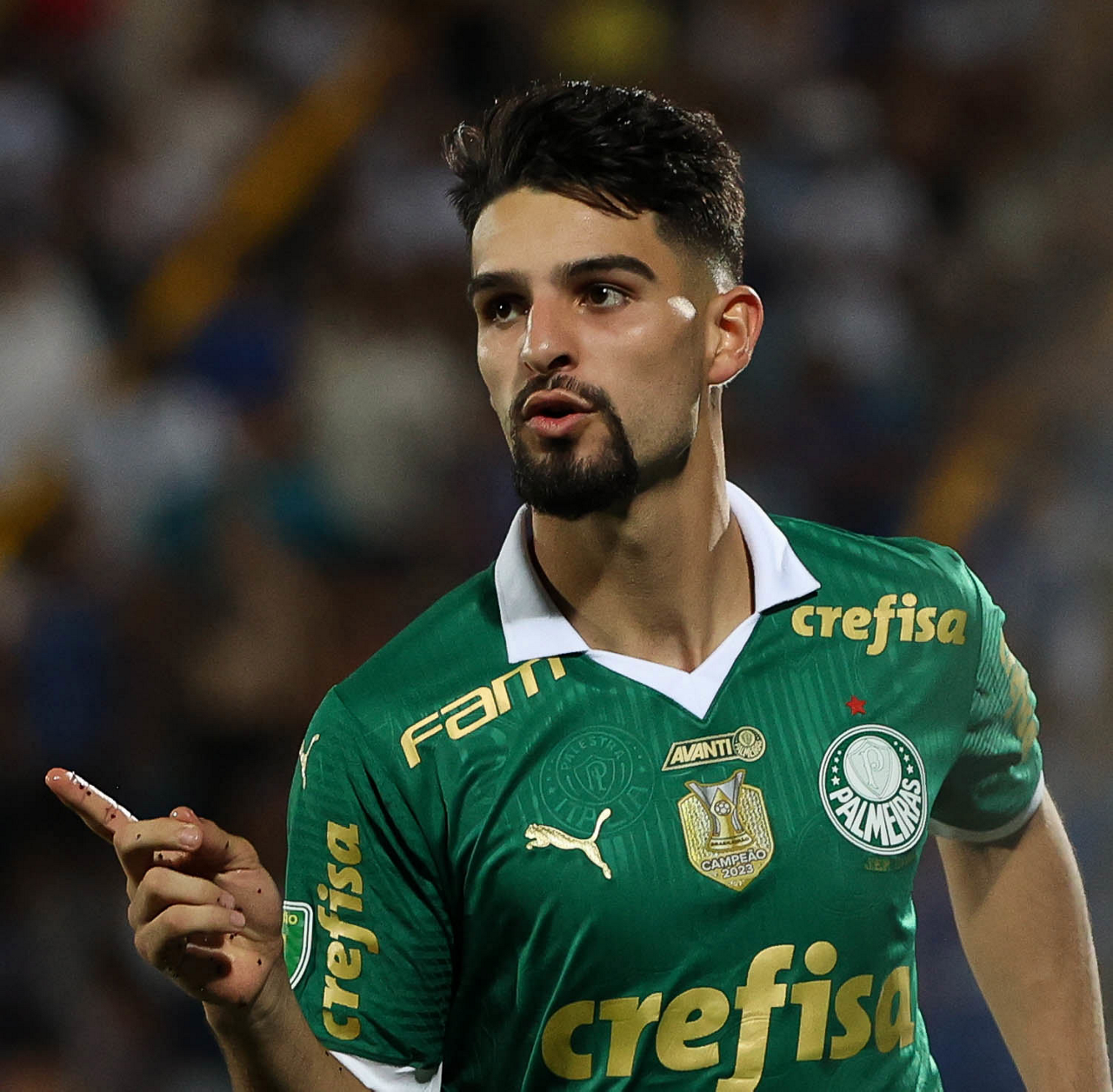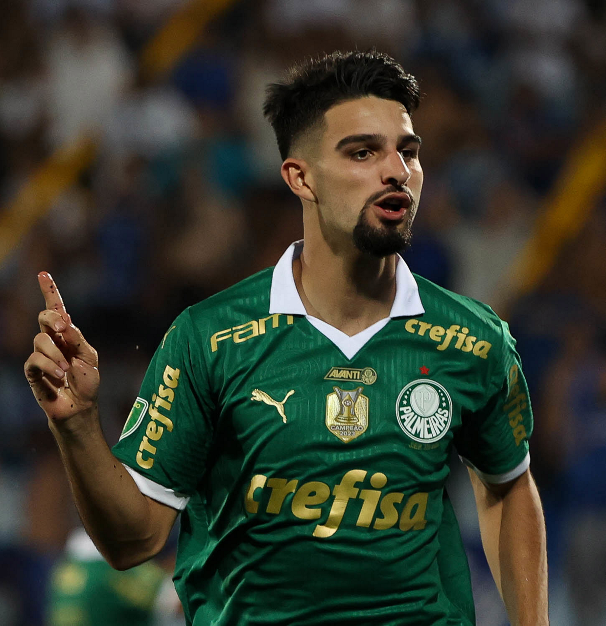 O jogador Luan, da SE Palmeiras, em jogo contra a equipe do EC Santo André, durante partida válida pela quinta rodada, do Campeonato Paulista, Série A1, no Estádio Bruno José Daniel. (Foto: Cesar Greco/Palmeiras/by Canon)