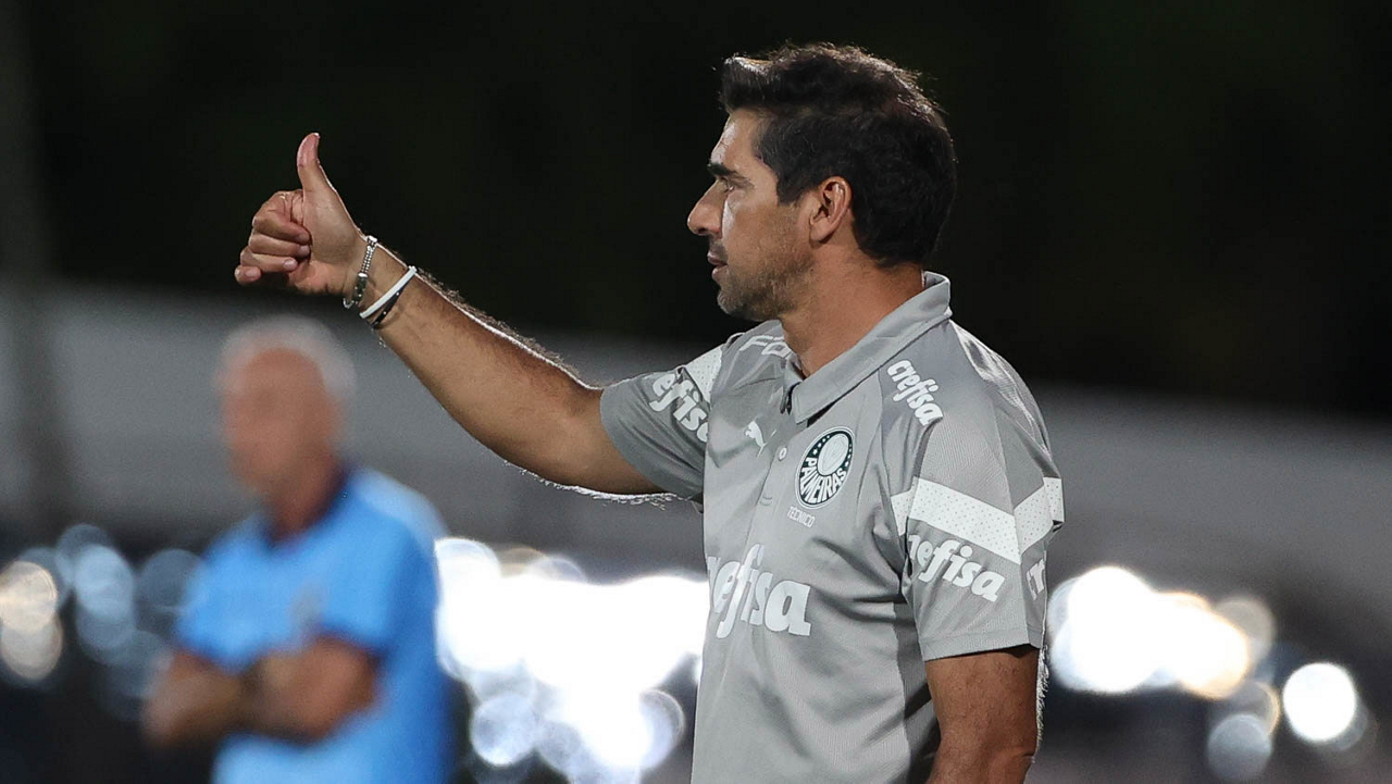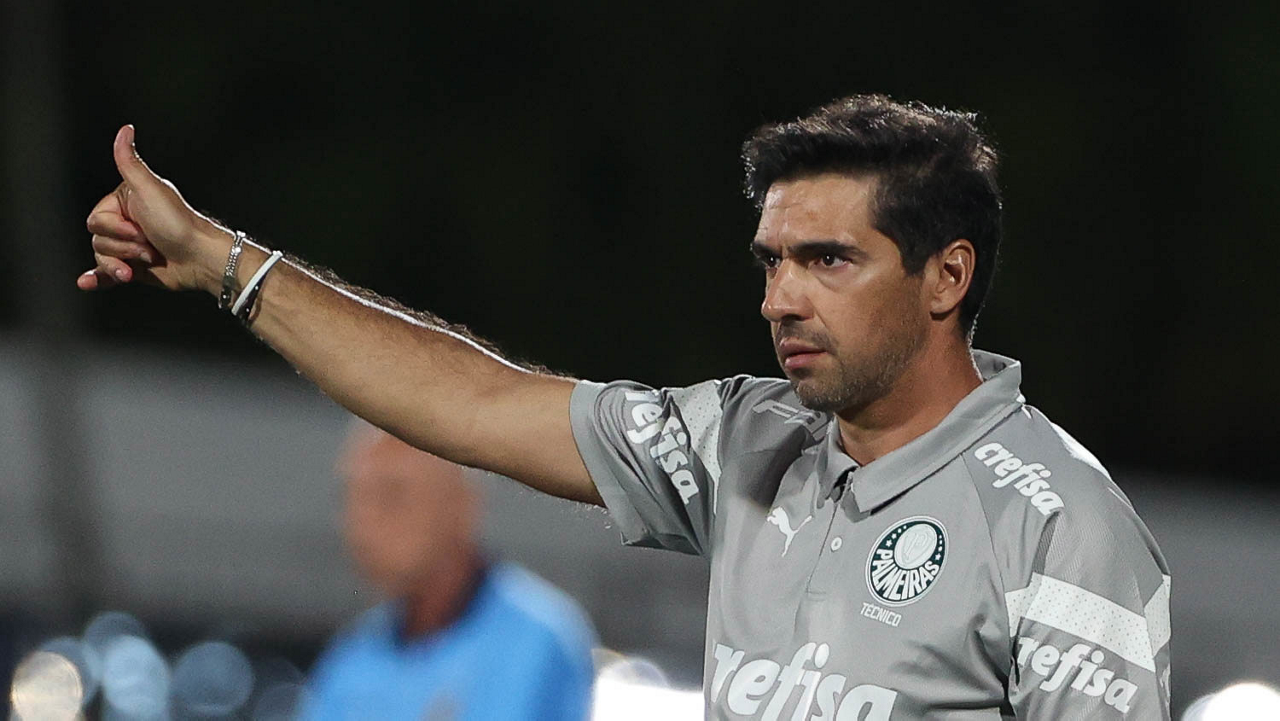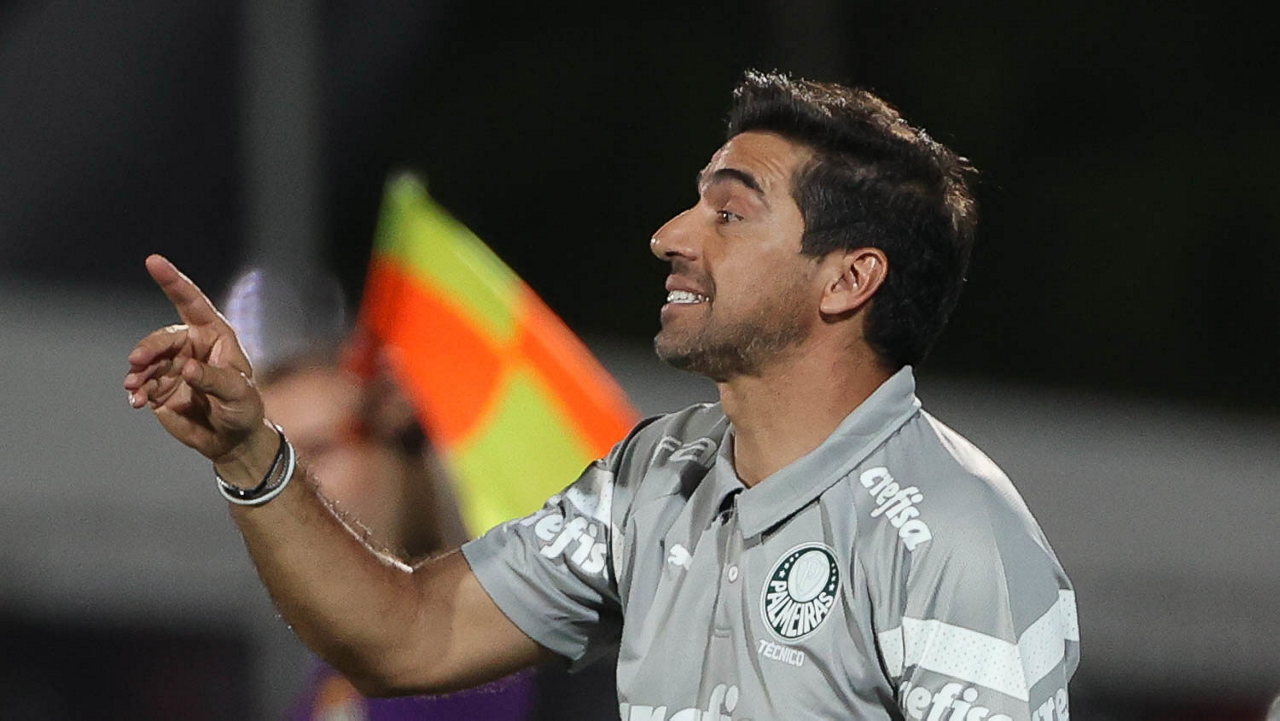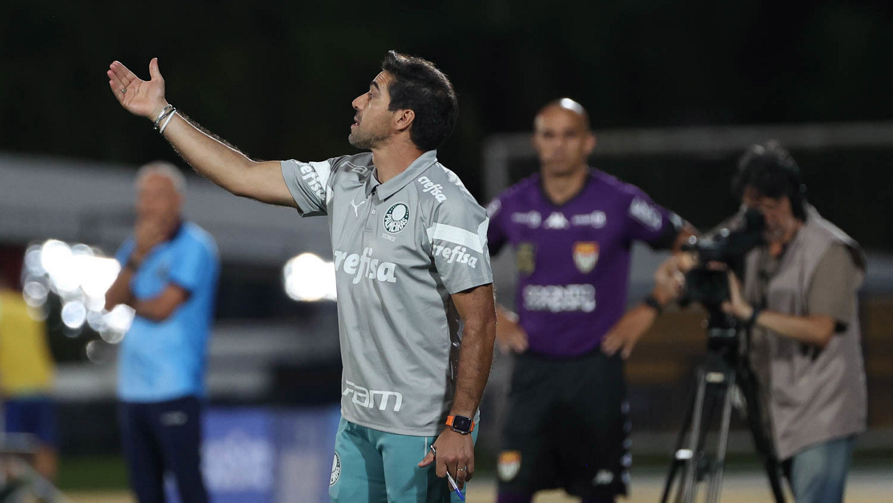 O técnico Abel Ferreira, da SE Palmeiras, em jogo contra a equipe do EC Santo André, durante partida válida pela quinta rodada, do Campeonato Paulista, Série A1, no Estádio Bruno José Daniel. (Foto: Cesar Greco/Palmeiras/by Canon)