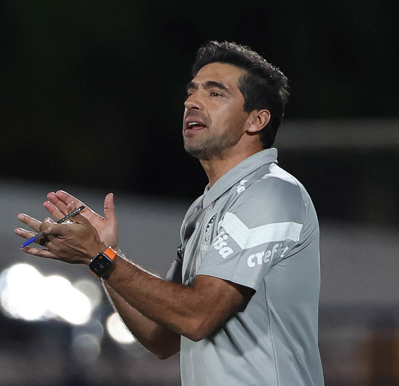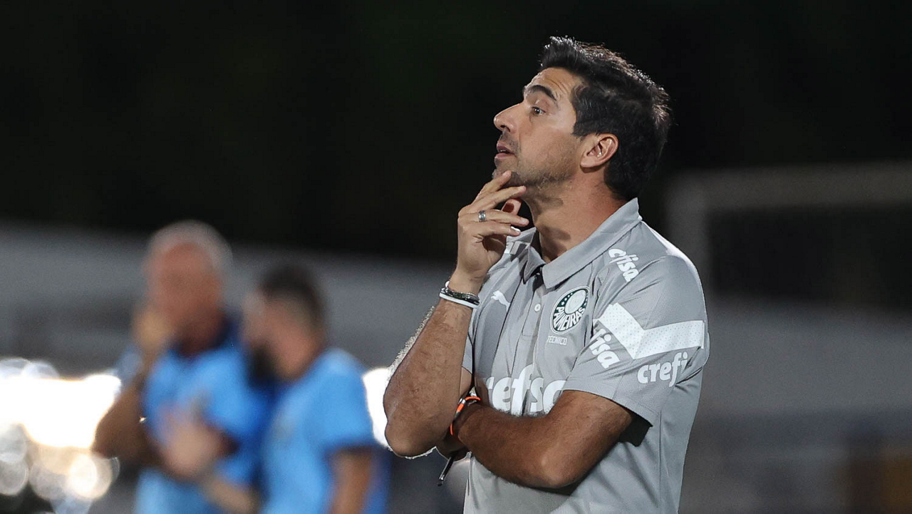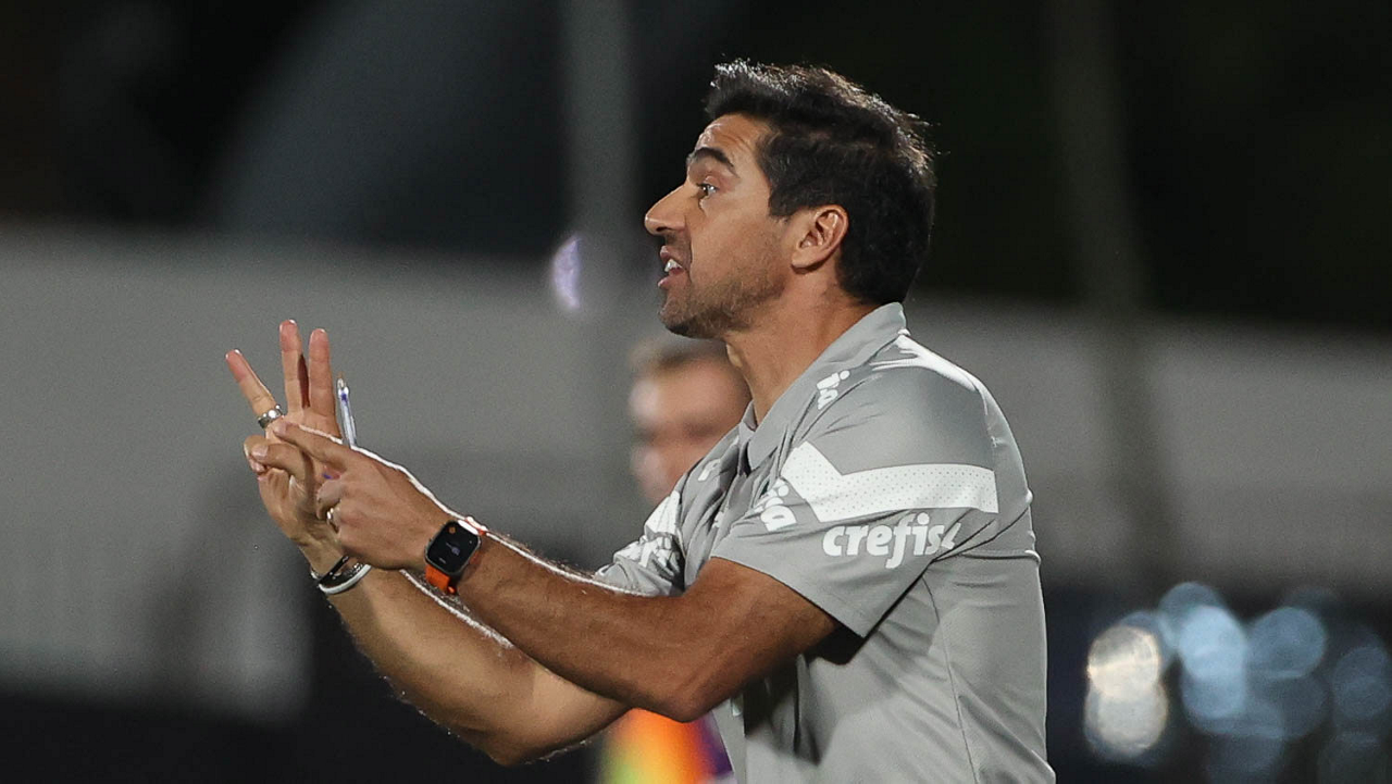 O técnico Abel Ferreira, da SE Palmeiras, em jogo contra a equipe do EC Santo André, durante partida válida pela quinta rodada, do Campeonato Paulista, Série A1, no Estádio Bruno José Daniel. (Foto: Cesar Greco/Palmeiras/by Canon)